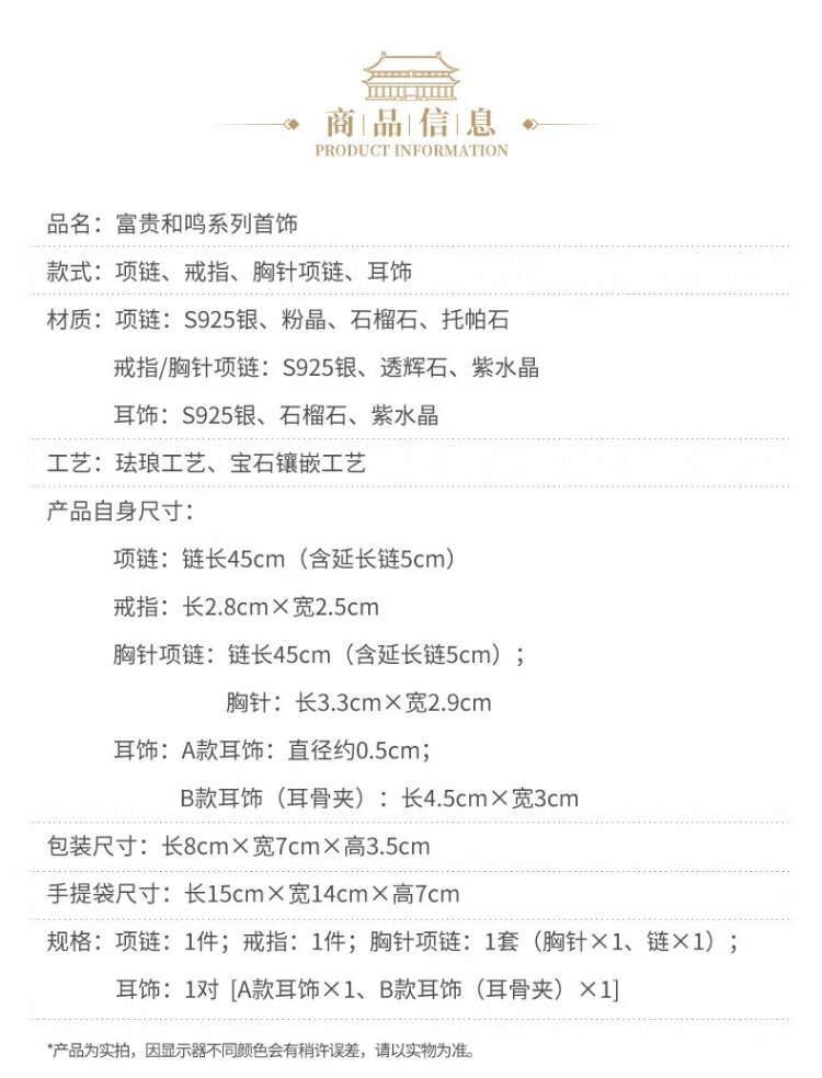 Forbidden City Culture Wealthy Harmony Series Jewelry Necklace Ring Brooch Necklace Earrings Gift For Girlfriend Forbidden City Cultural Creative Gift Brooch Necklace With Certificate