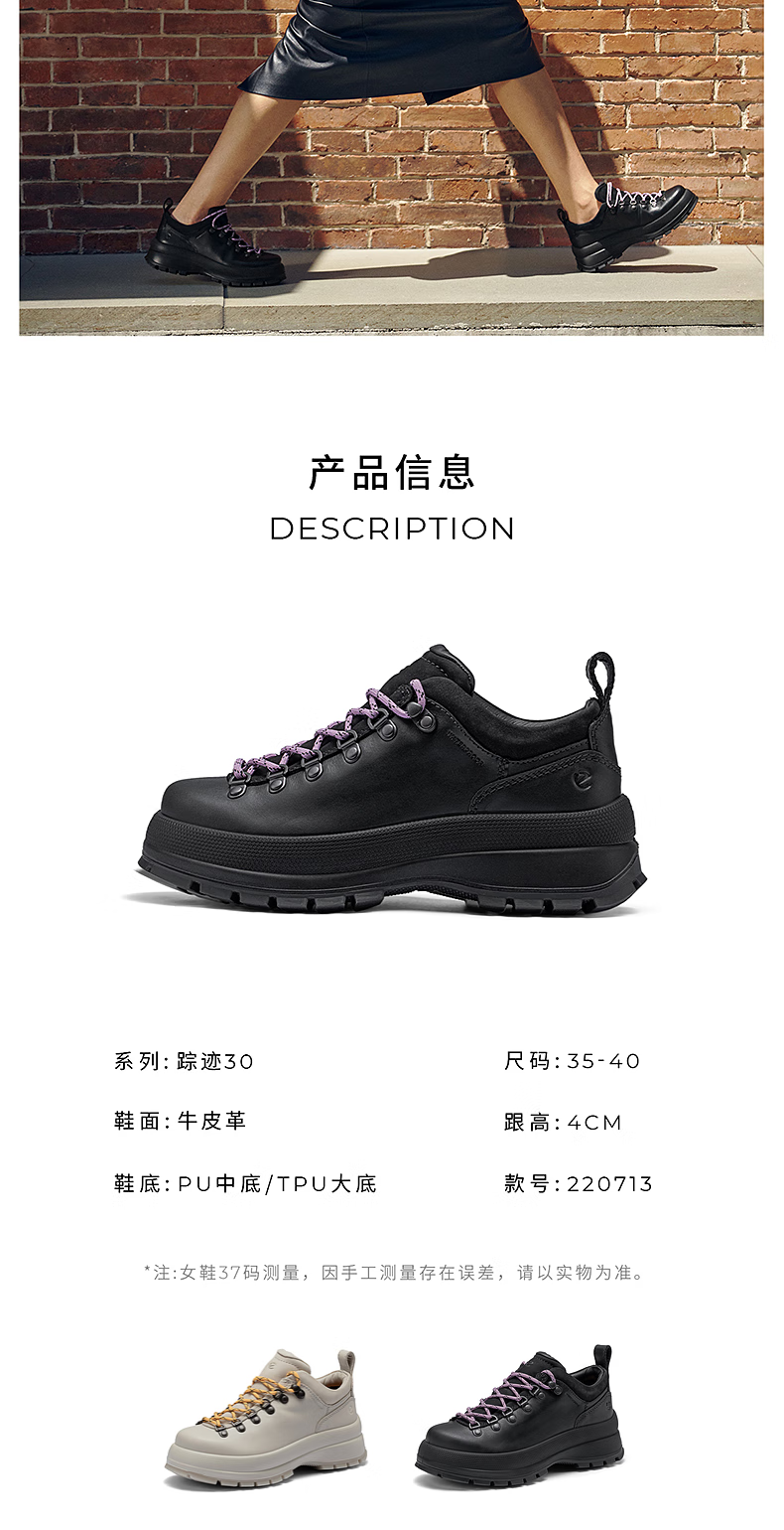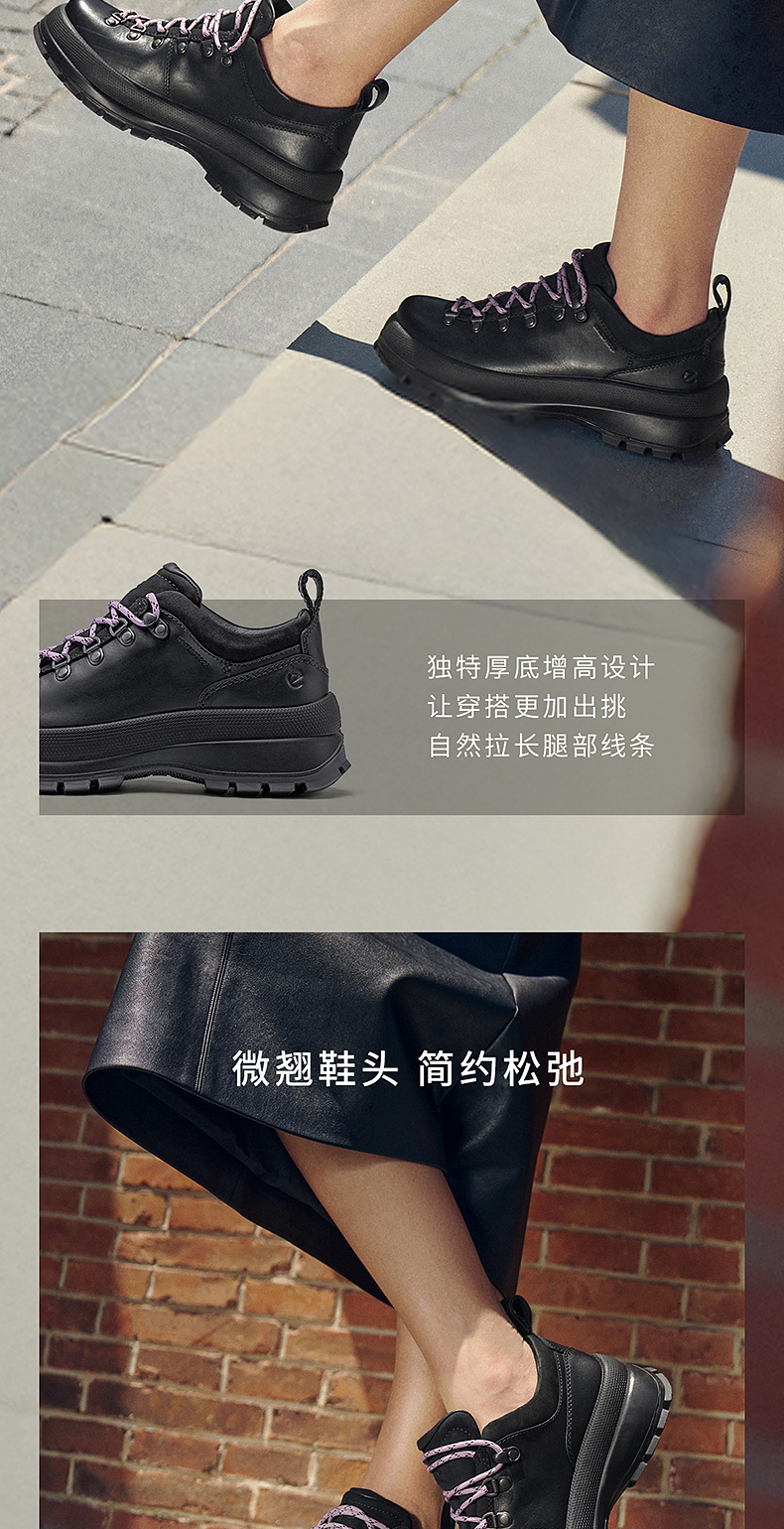 ECCO* Casual Shoes for Women Thick-soled Leather Casual Sports Shoes for Women Trace 220713 HL Black 22071351052 36