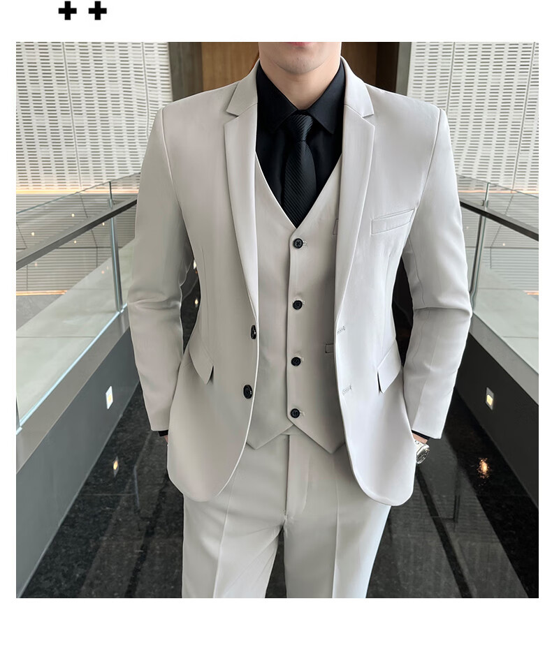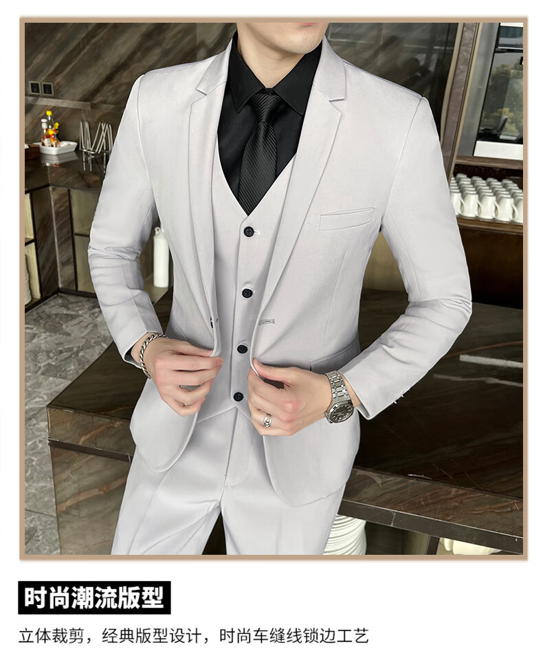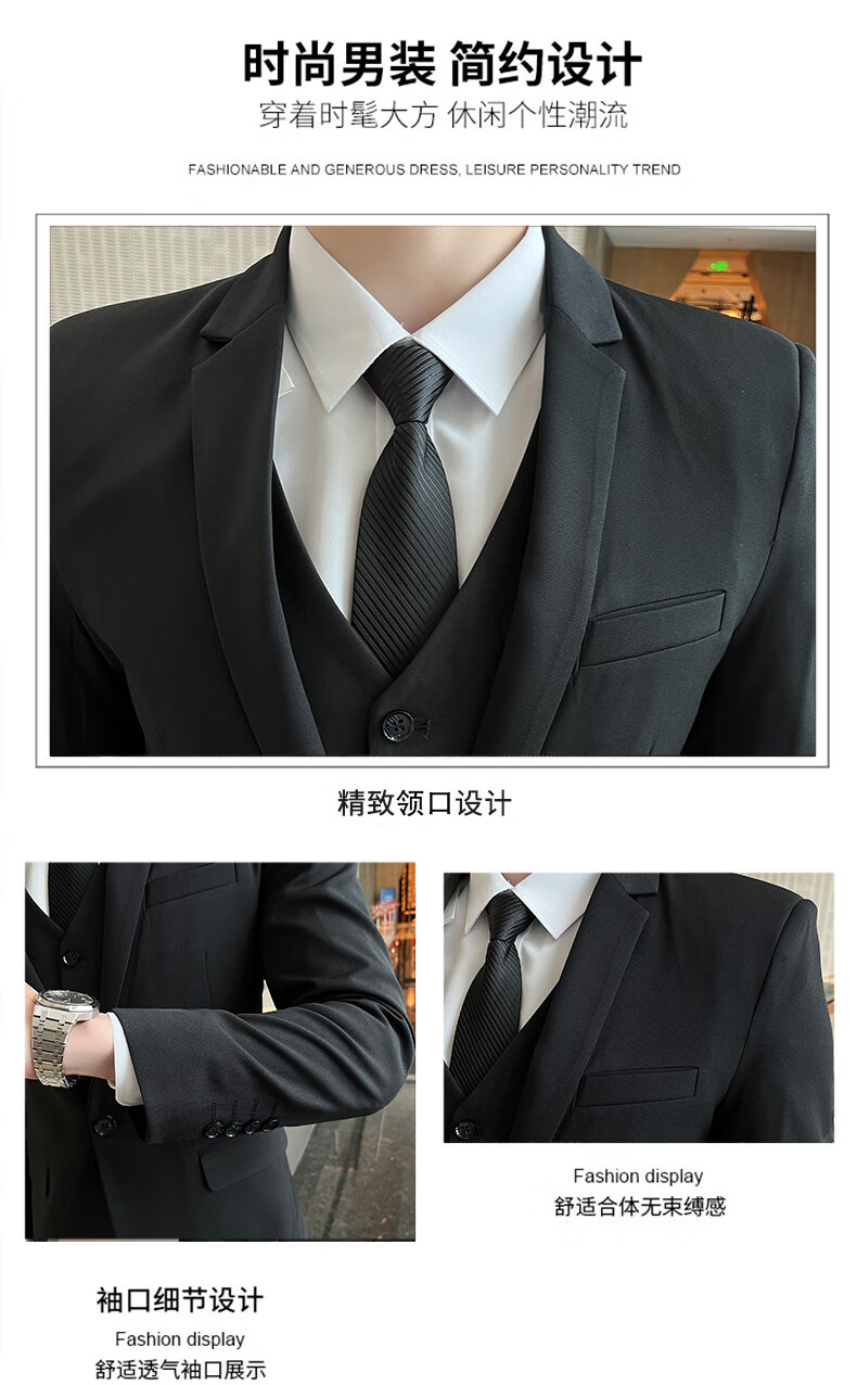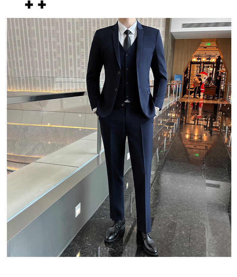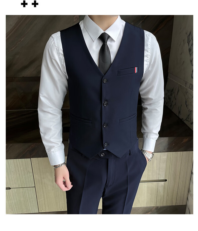 Pierre Cardin Casual Suit Men's Slim Business Professional Formal Korean Groomsmen's Dress Groom's Host Suit Jacket One Button Navy Suit + Vest + Pants Belt 3XL