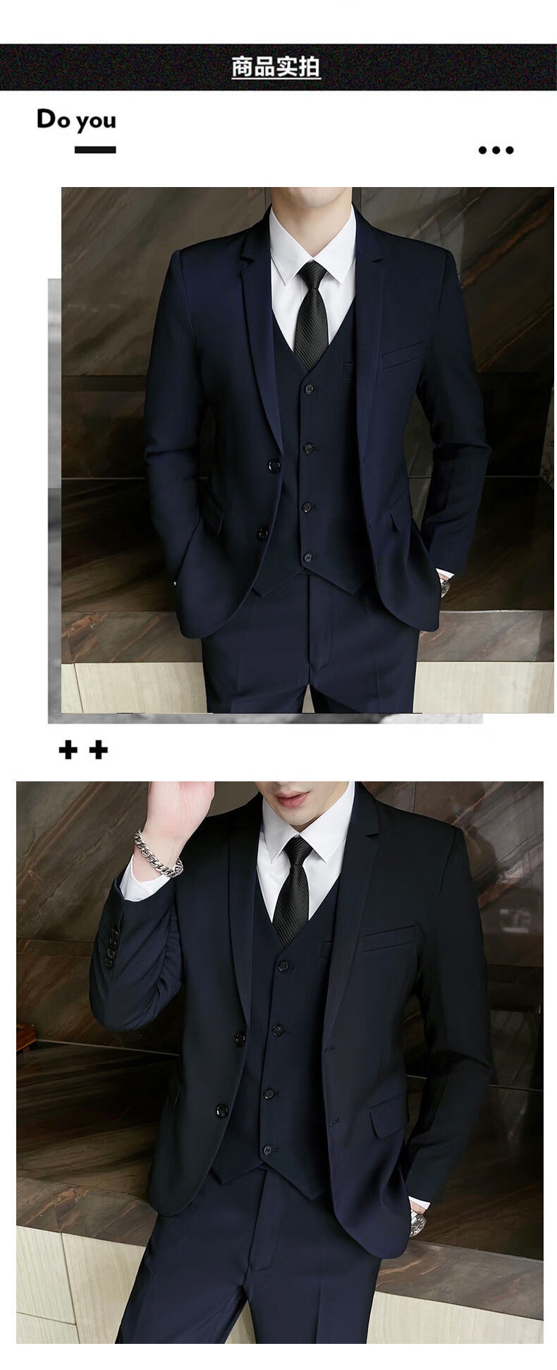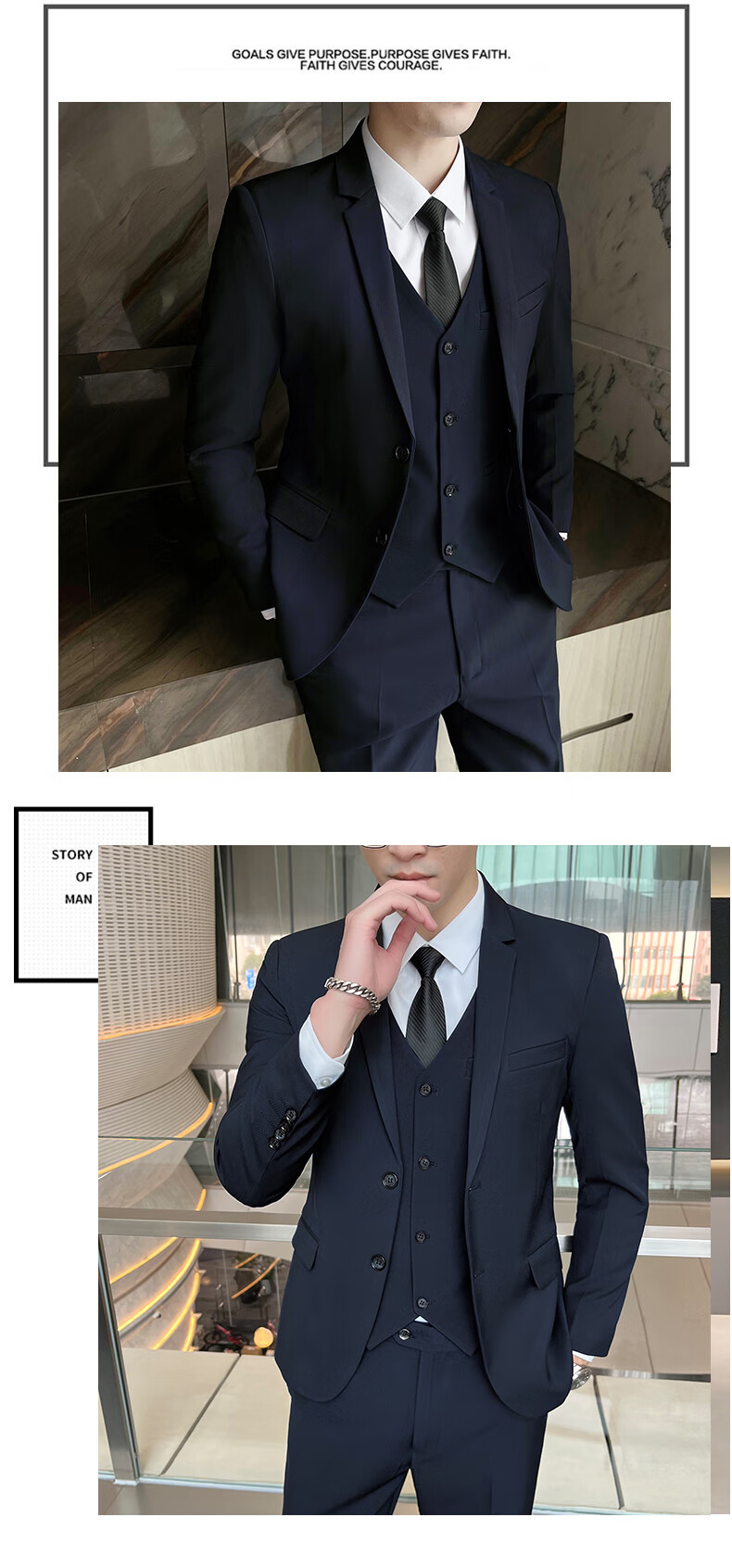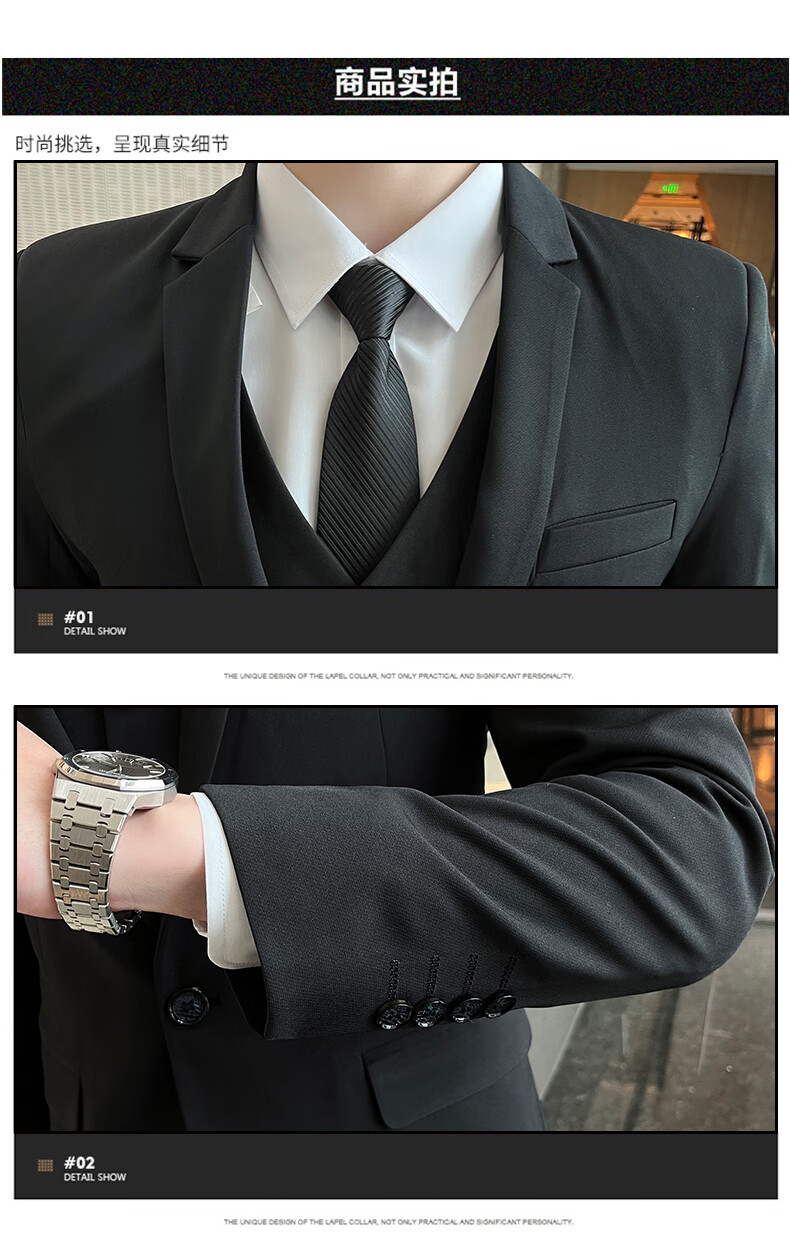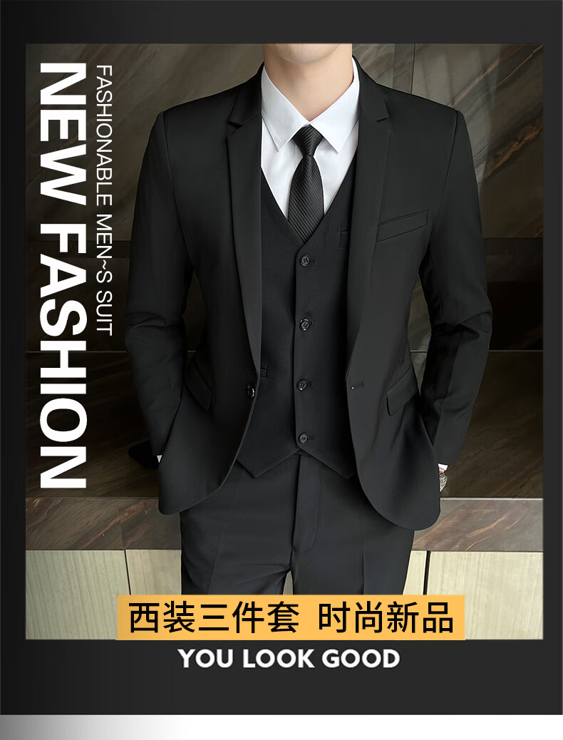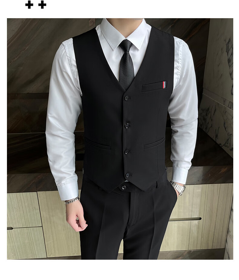 Pierre Cardin Casual Suit Men's Slim Business Professional Formal Korean Groomsmen's Dress Groom's Host Suit Jacket One Button Navy Suit + Vest + Pants Belt 3XL