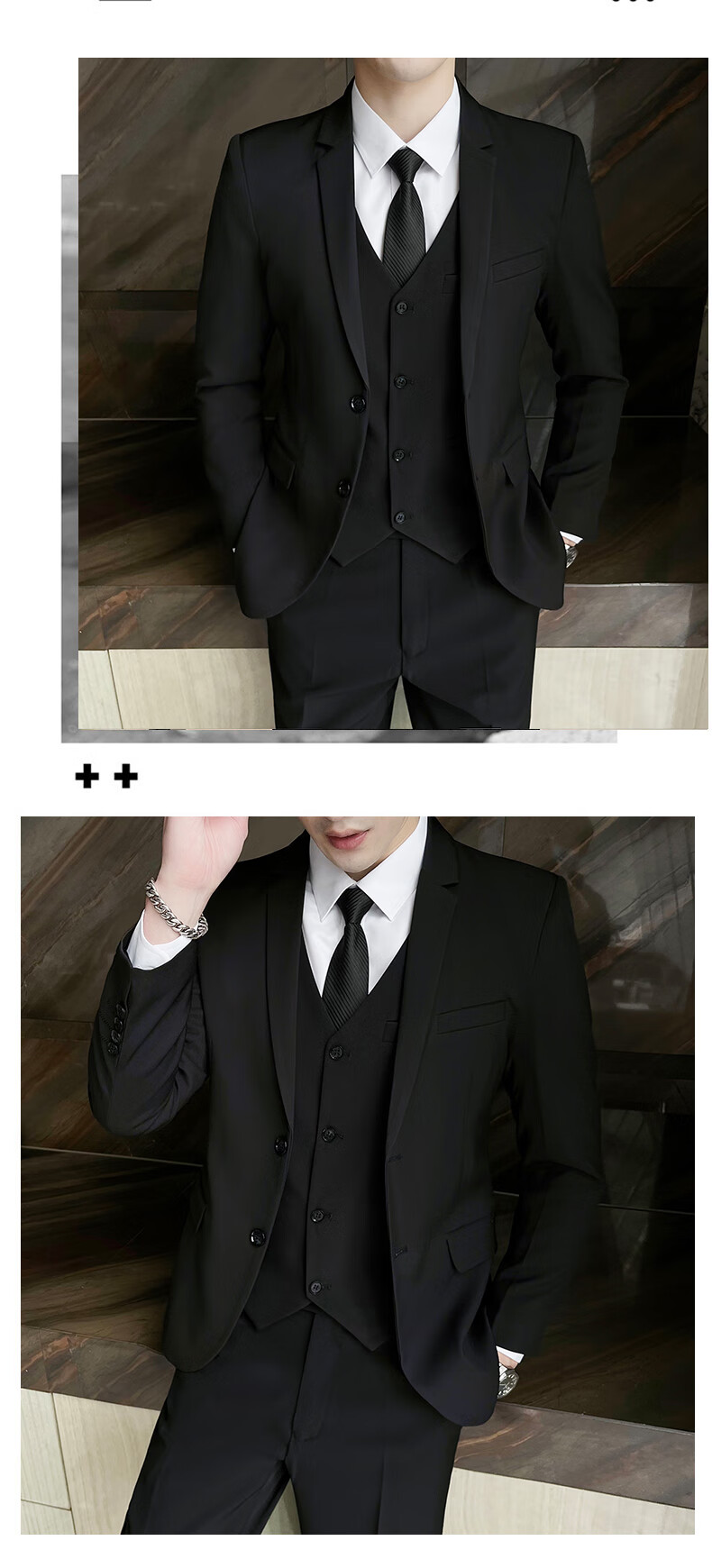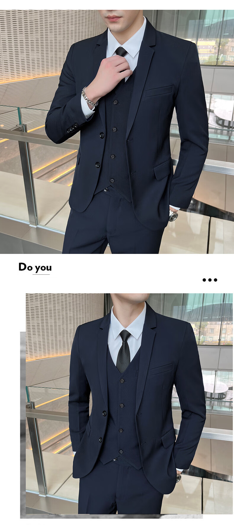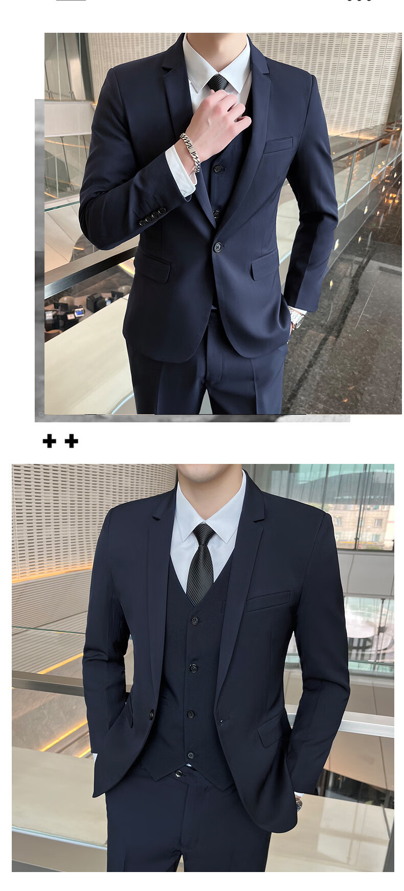 Pierre Cardin Casual Suit Men's Slim Business Professional Formal Korean Groomsmen's Dress Groom's Host Suit Jacket One Button Navy Suit + Vest + Pants Belt 3XL