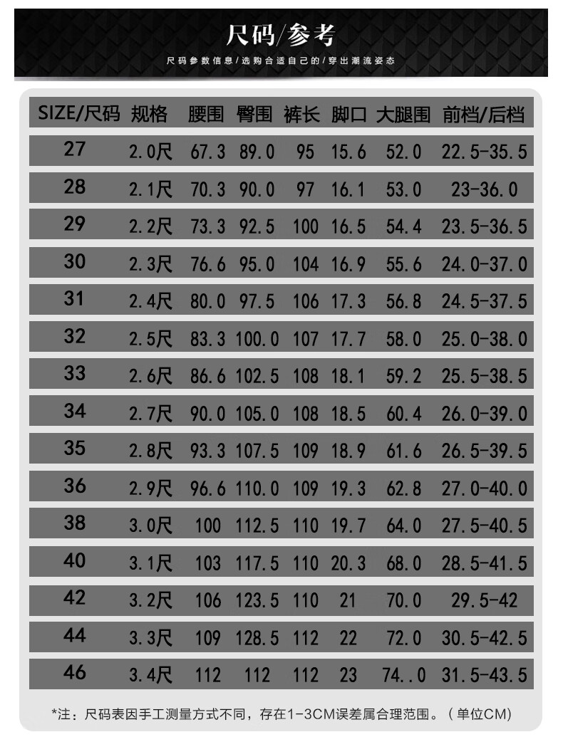 USA(inch) 28-30 30-32 32-34 34-38 38-42