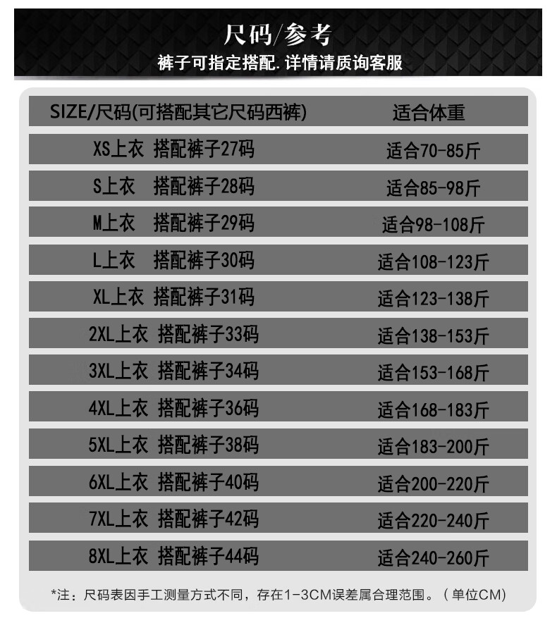 China (cm) 165 / 88-90 170 / 96-98 175 / 108-110 180 / 118-122 185 / 126-130