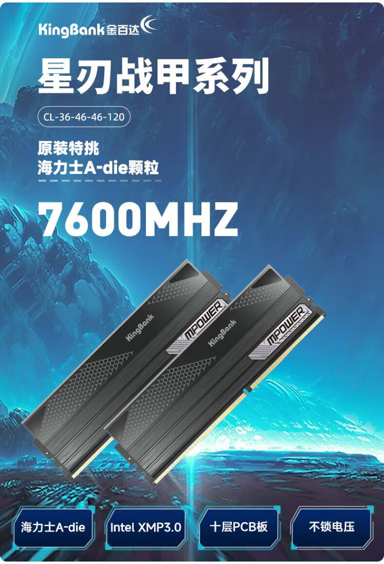 KINGBANK Star Blade 6000c28 ddr5 memory stick 6400 Star Blade 32g16gx2 6800 48g desktop memory stick 7200 gaming e-sports high frequency vest strip 64g Star Blade Black 32G (16Gx2) 6000 C28 A generation
