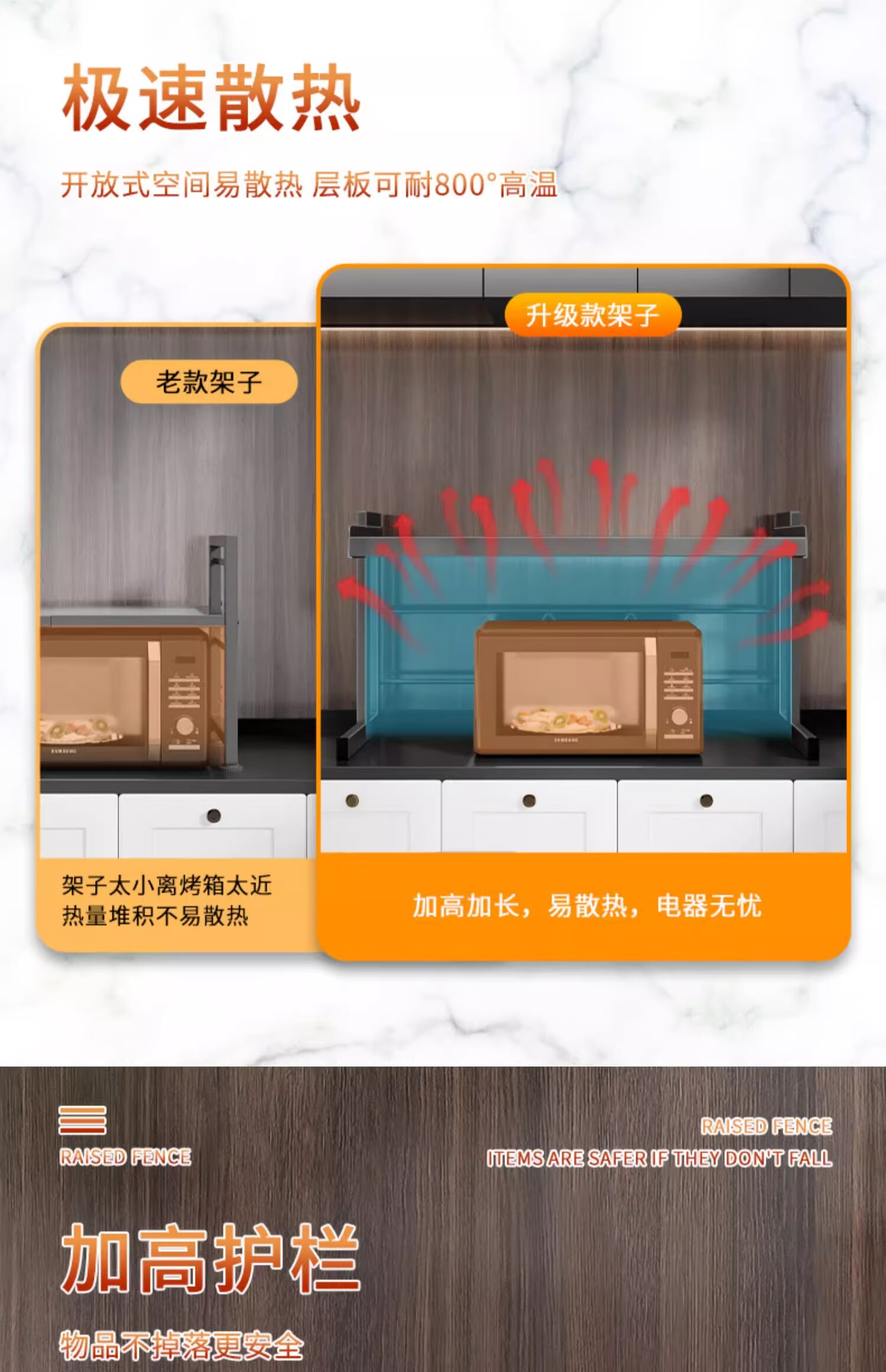Mrs. Kitchen Microwave Rice Cooker Storage Rack Countertop Microwave Rack Telescopic Oven Storage Rack Electrical Storage Rack *Welfare Model 80cm Main Rack