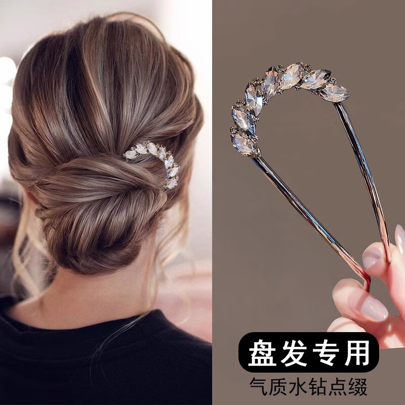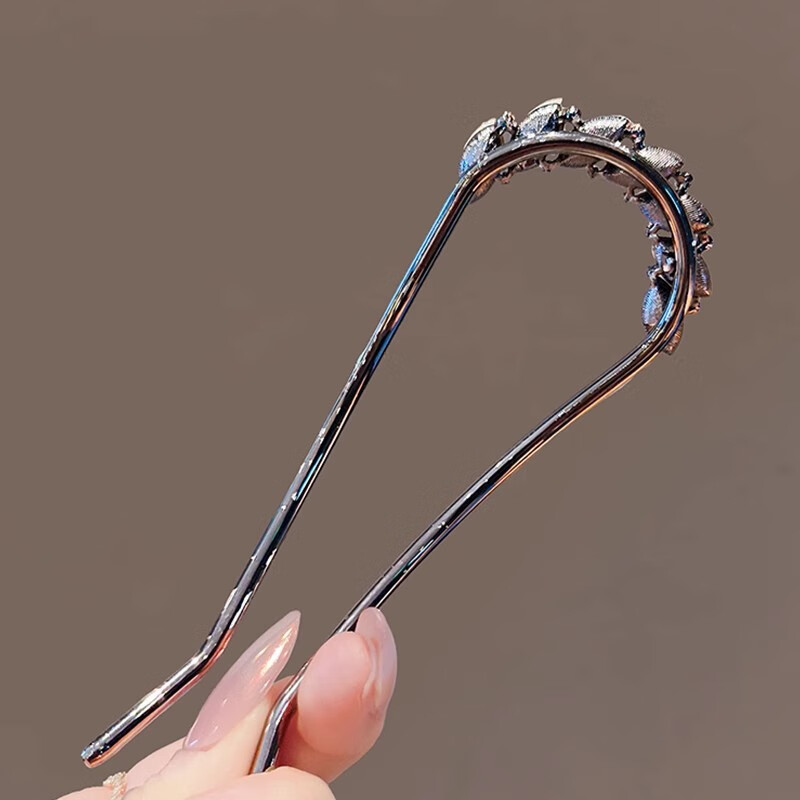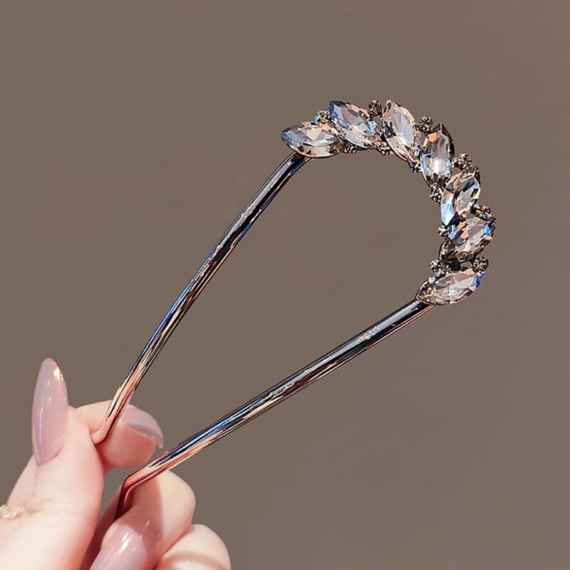 Case makeup Qixi U-shaped hairpin for women, leaf crystal temperament hairpin, metal hairpin, hairpin, simple hairpin comb, leaf type U-shaped hairpin