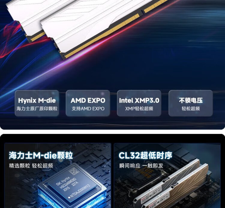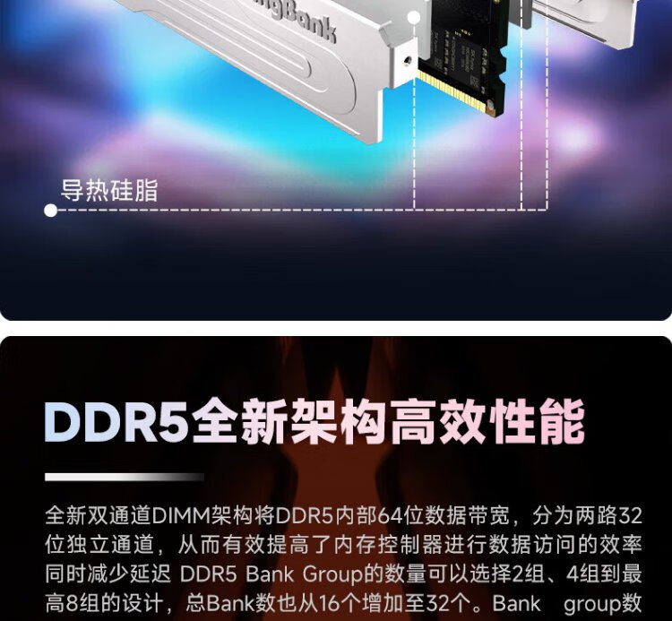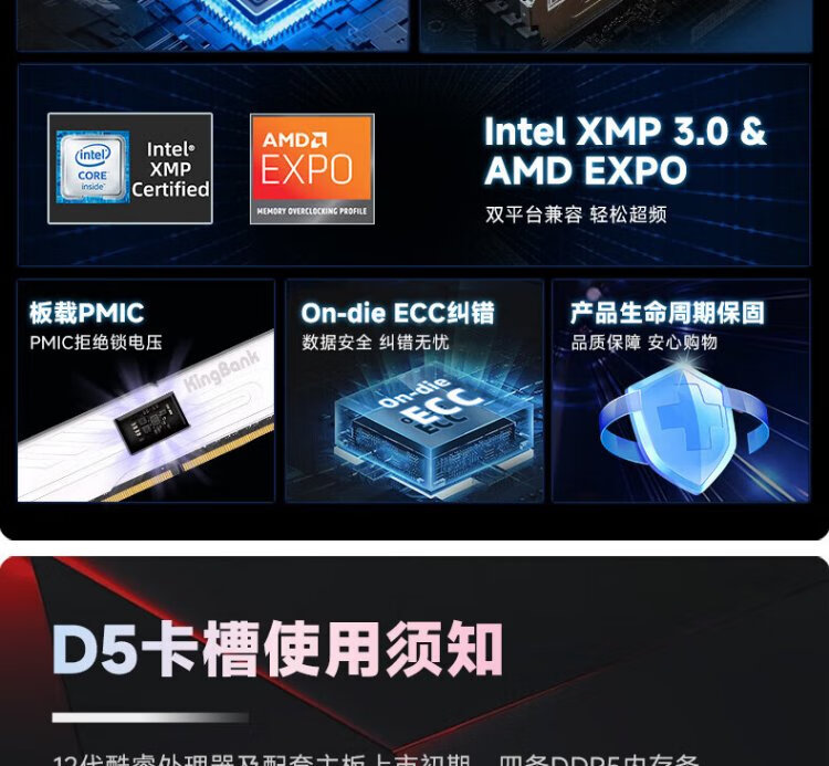 KINGBANK Yinjue ddr5 6000c30 black blade ddr5 memory stick 16gx2 desktop memory 680032g memory stick 7200 game e-sports vest strip 6400 domestic particles Yinjue 32G (16Gx2) 6000 C30 M generation