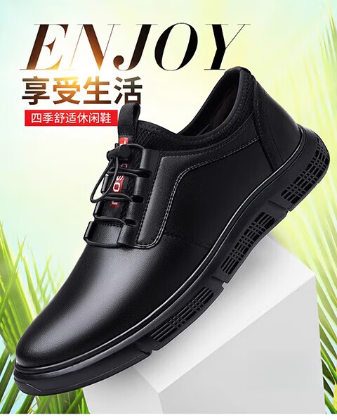 CARTELO Men's Shoes 2025 Spring and Autumn New Genuine Leather Trendy Soft Sole Business Casual Sports Leather Shoes Men's Internal Heightening Orgasm Shoes 0199 Black Heightening 41