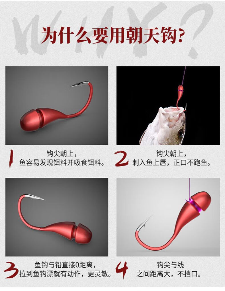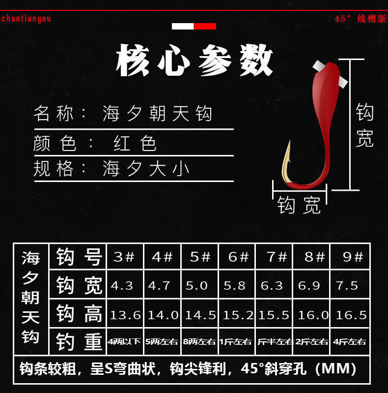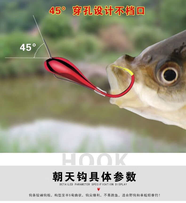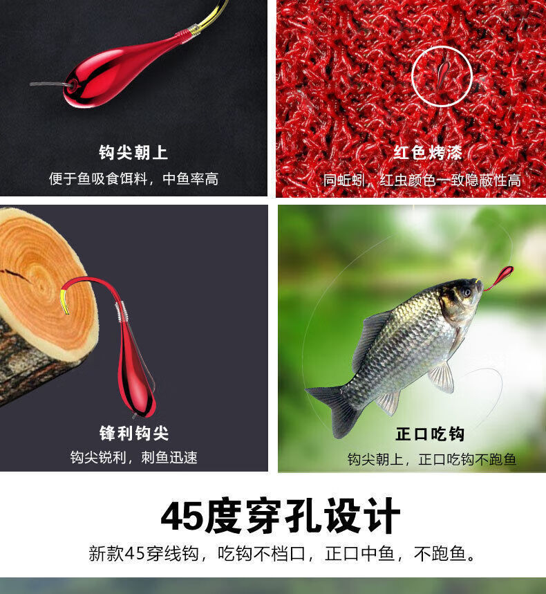 Meipai Haixi sky-facing hook traditional seven-star floating wild fishing 45-degree oblique heart-hanging red worm lead-head hook crucian carp small white strips 45-degree sky-facing hook Jin Haixi 10 pieces with storage No. 3
