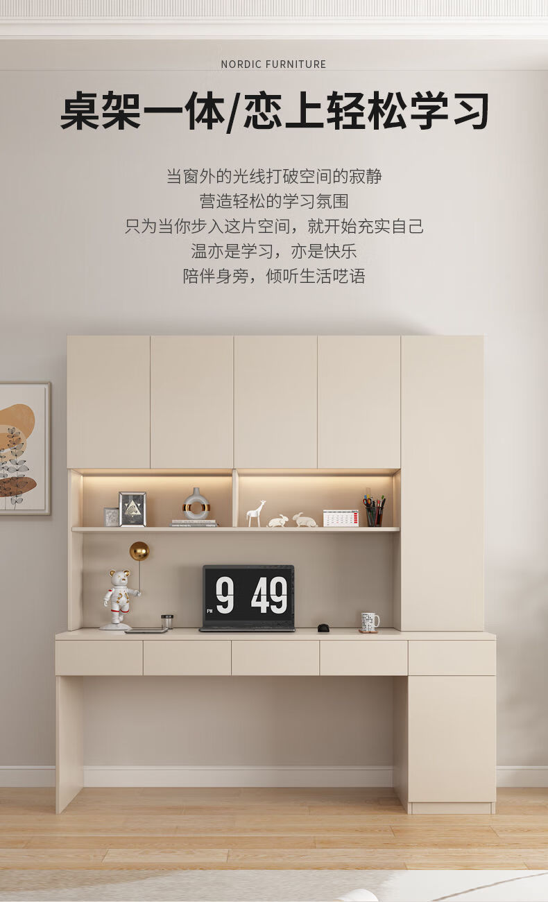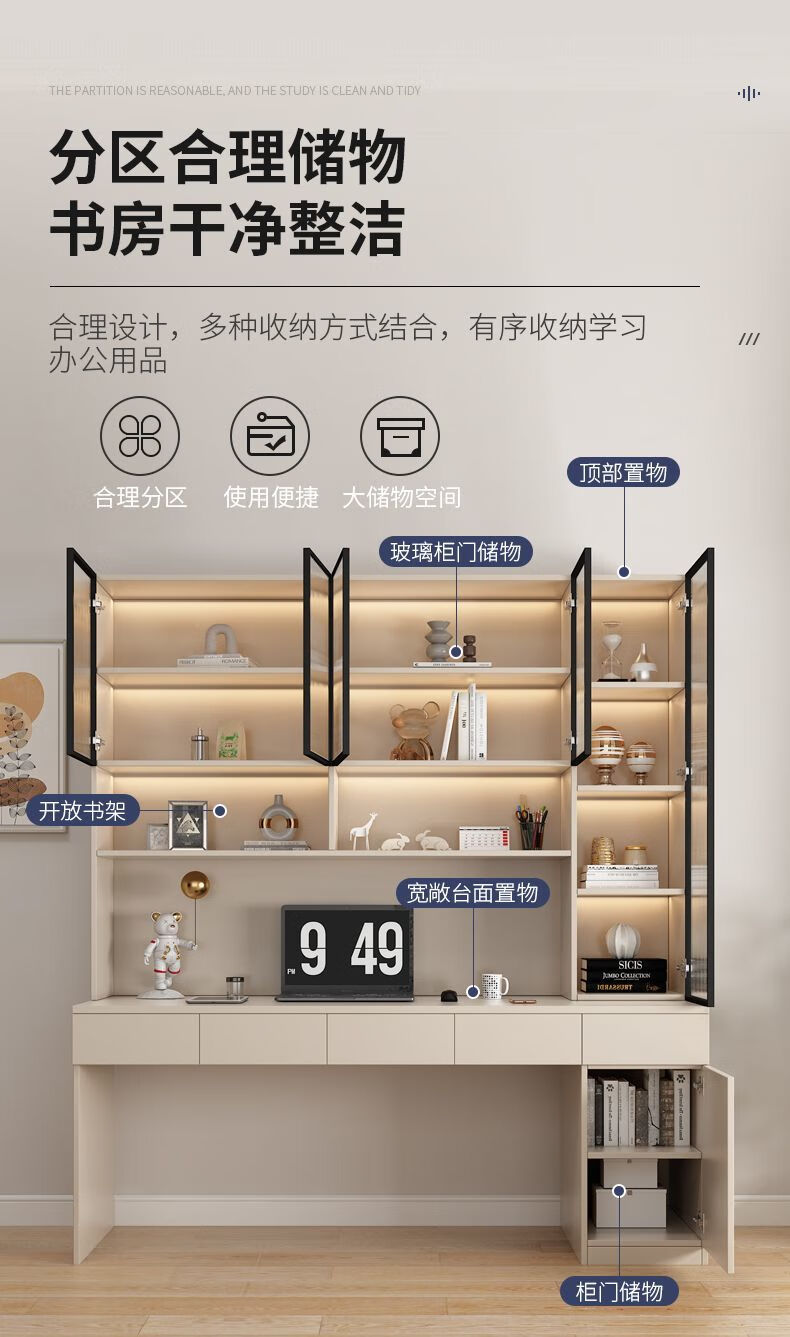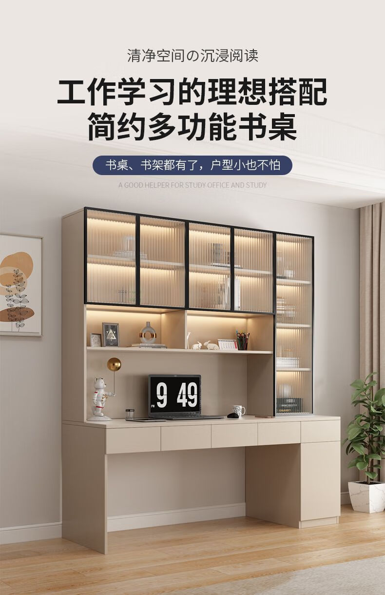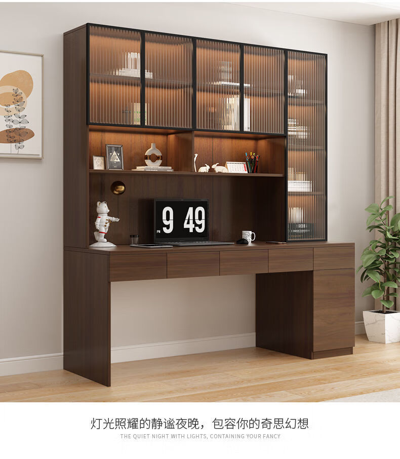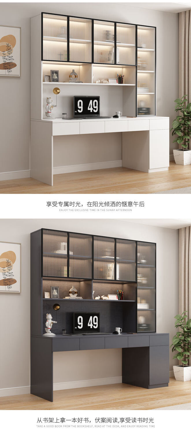 Lingjun's ingenious computer desk desktop home with bookshelf bedroom desk simple desk bookshelf combination student study table wooden door length 120*height 220cm