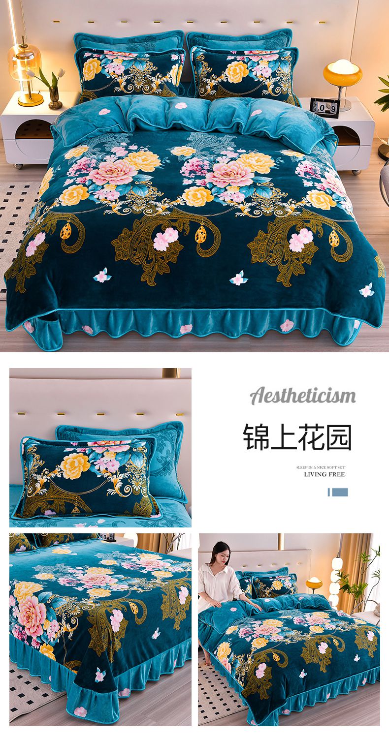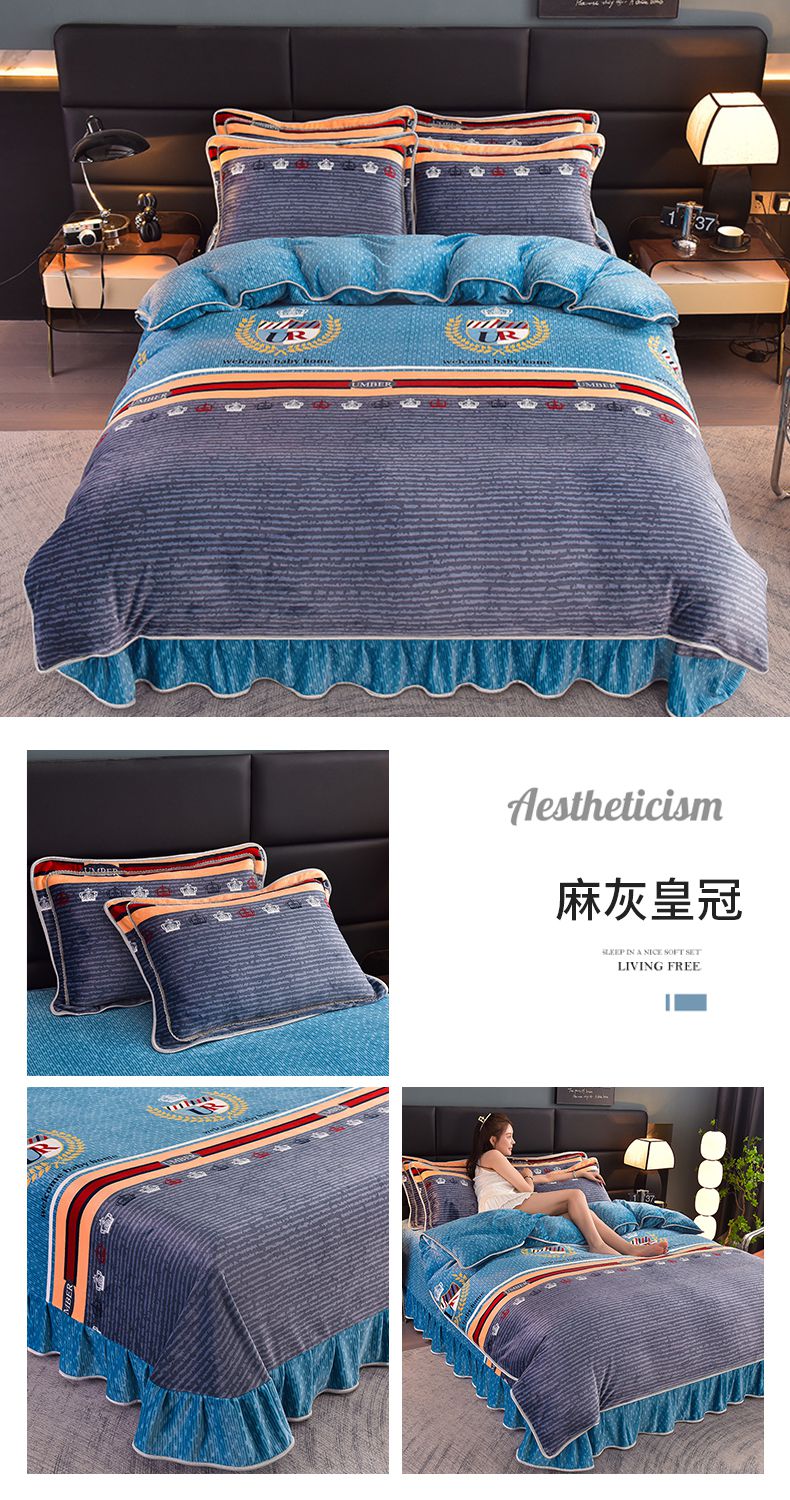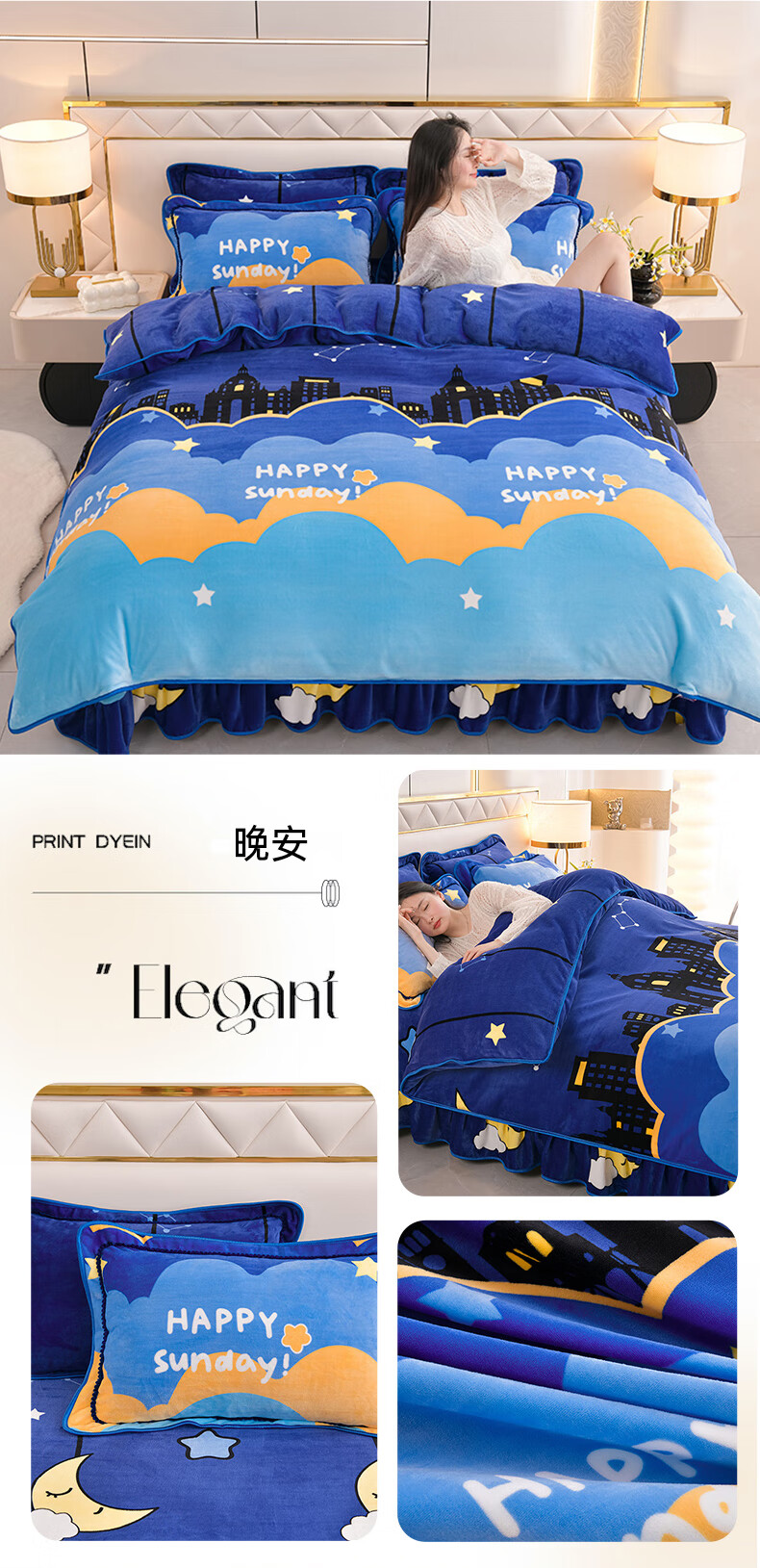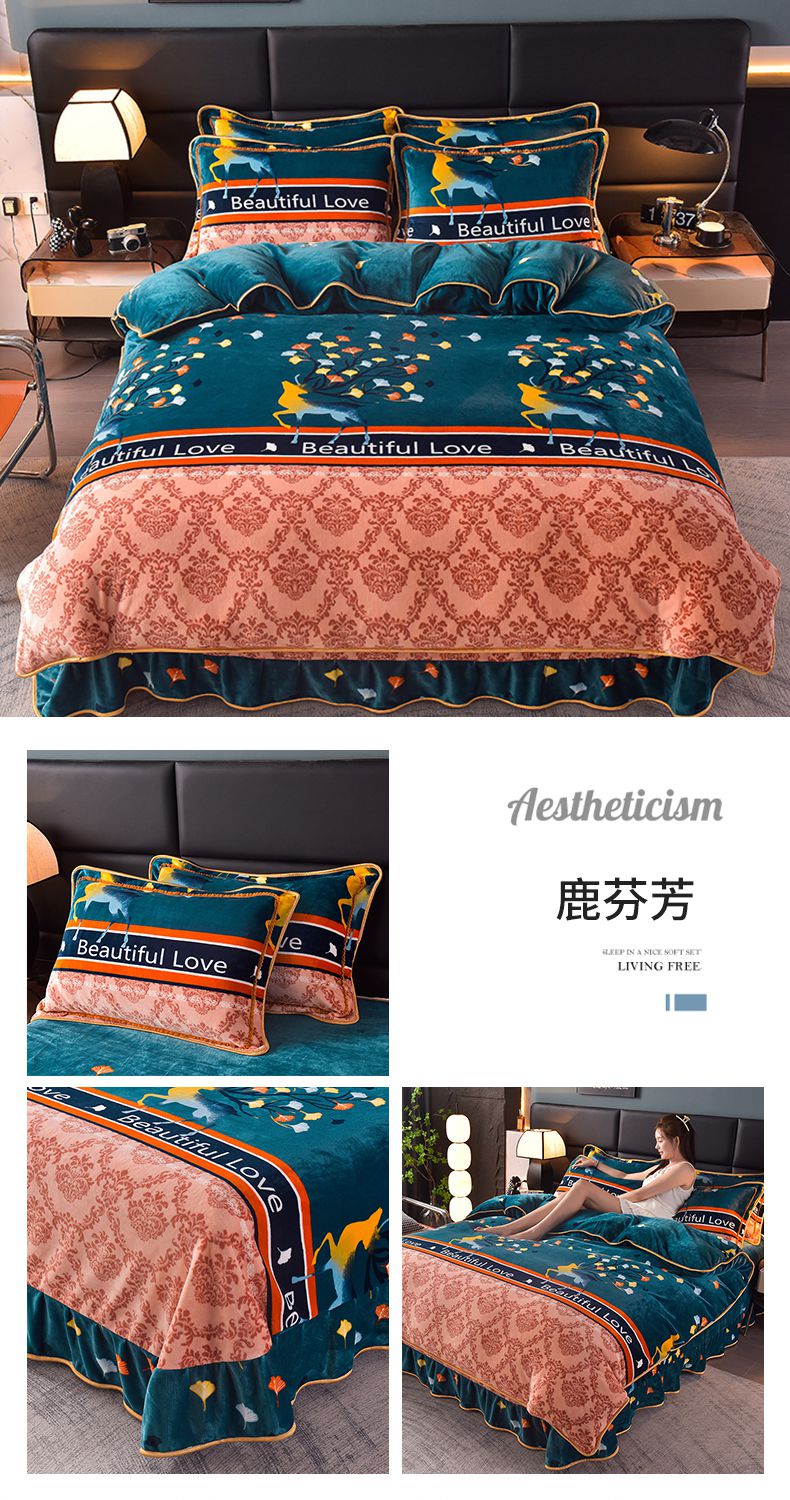 Mercury series milk velvet four-piece set for winter thickened coral velvet 2025 new double-sided flannel quilt cover bed skirt bedding pattern sentiment thickened and warm anti-static hot at the touch 1.5/1.8m bed skirt style four-piece set-quilt cover 200*230