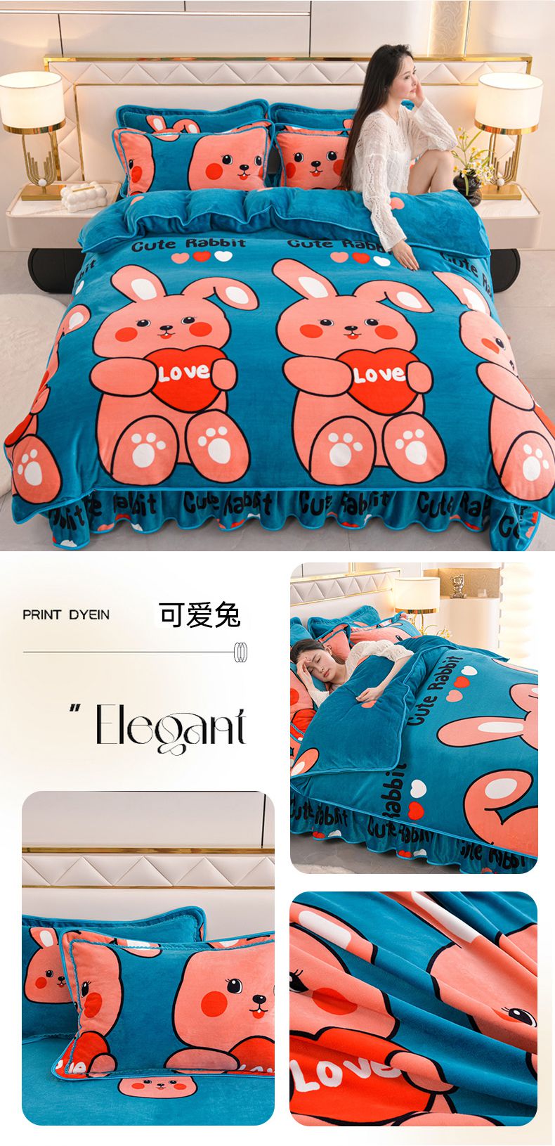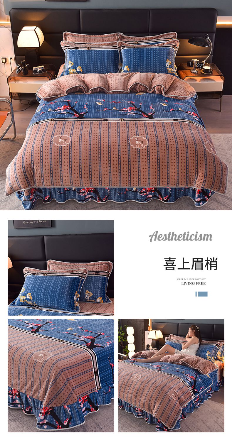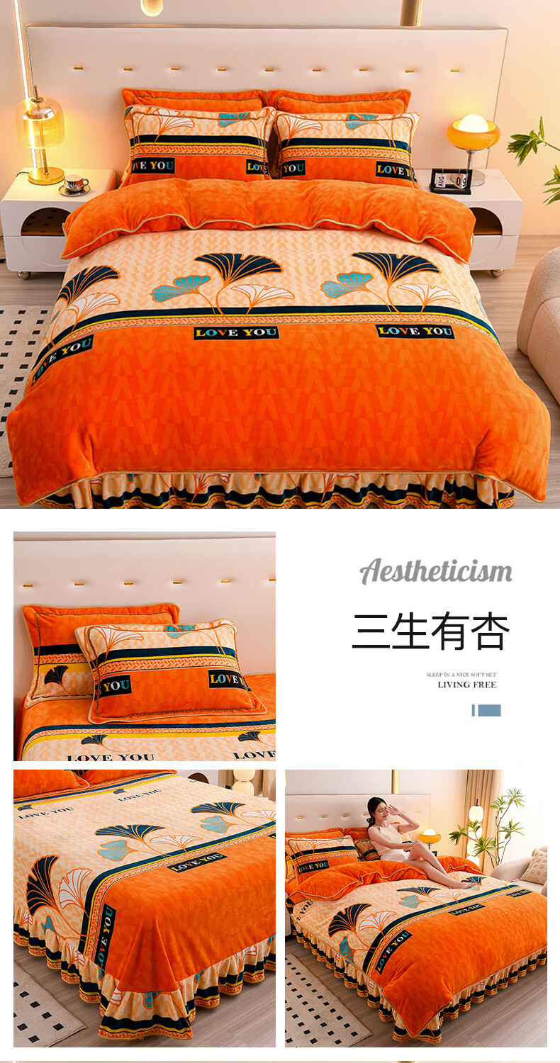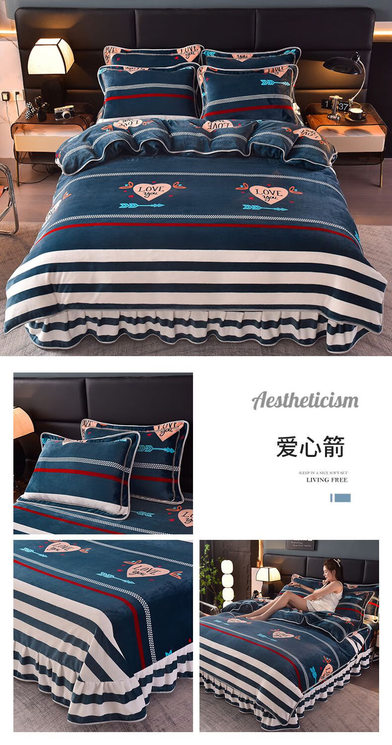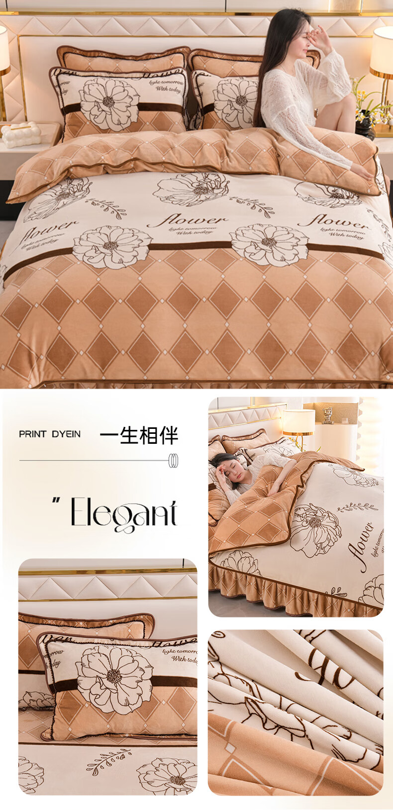Mercury series milk velvet four-piece set for winter thickened coral velvet 2025 new double-sided flannel quilt cover bed skirt bedding pattern sentiment thickened and warm anti-static hot at the touch 1.5/1.8m bed skirt style four-piece set-quilt cover 200*230