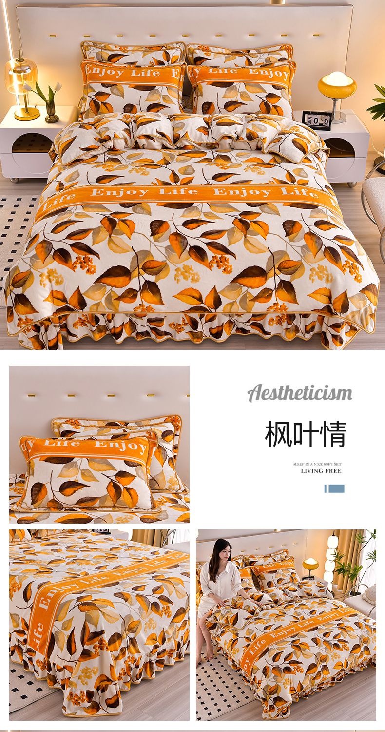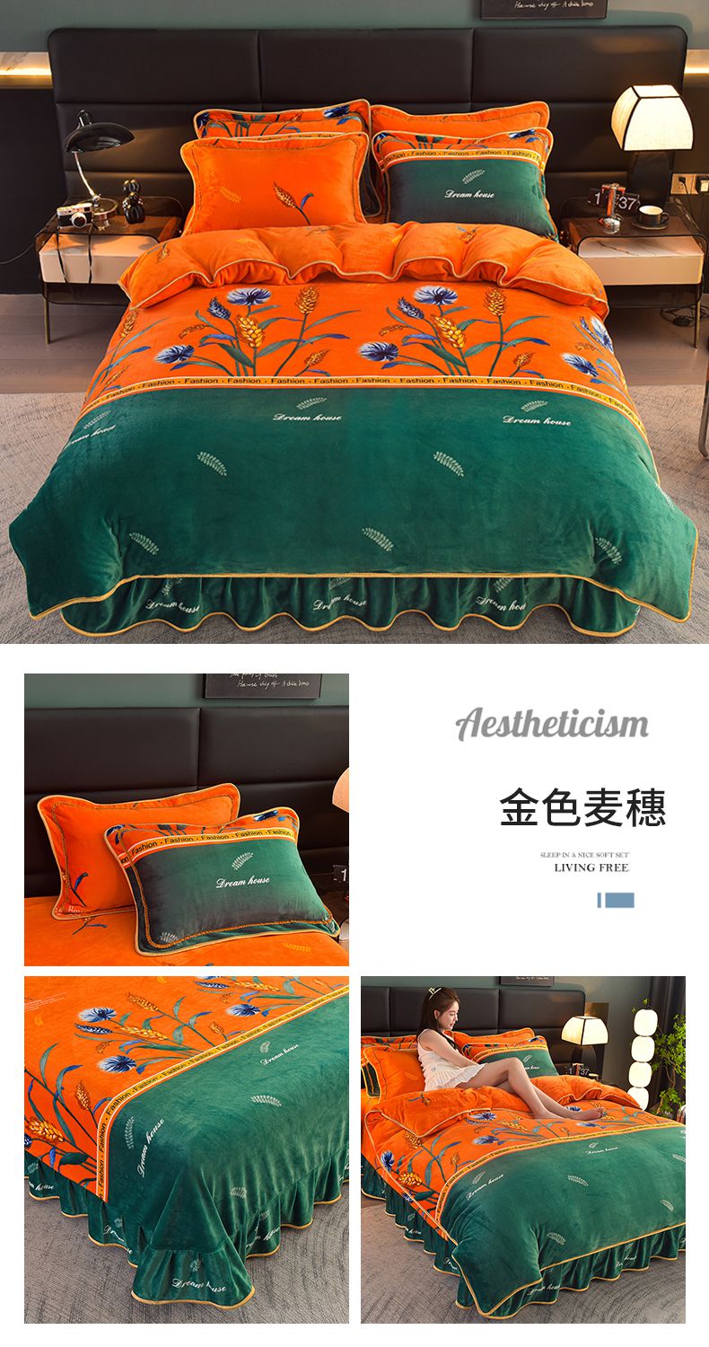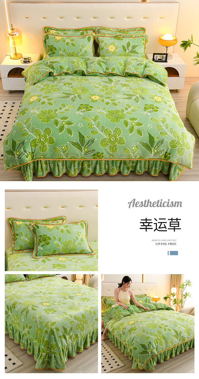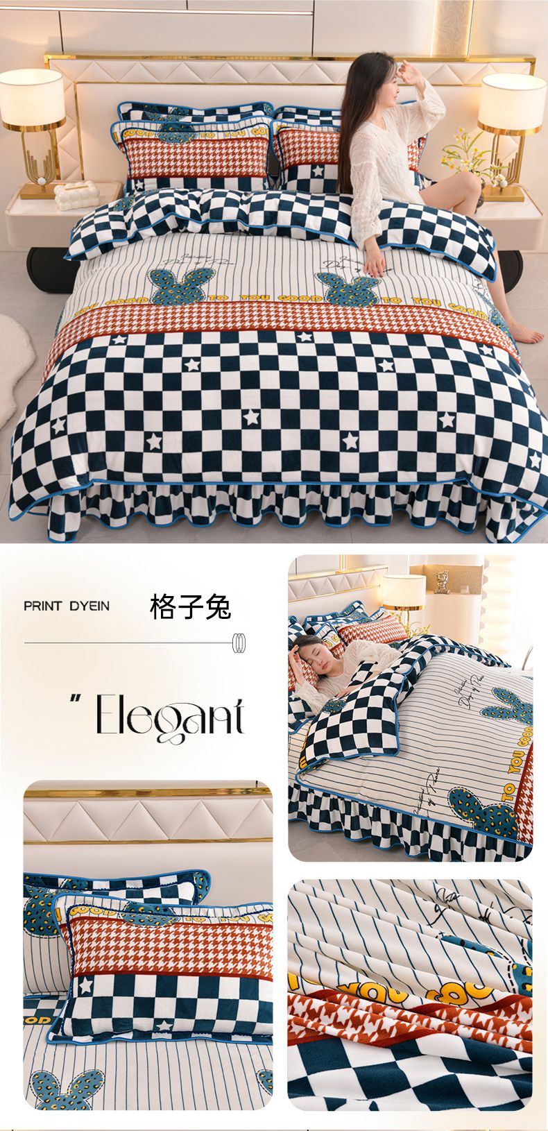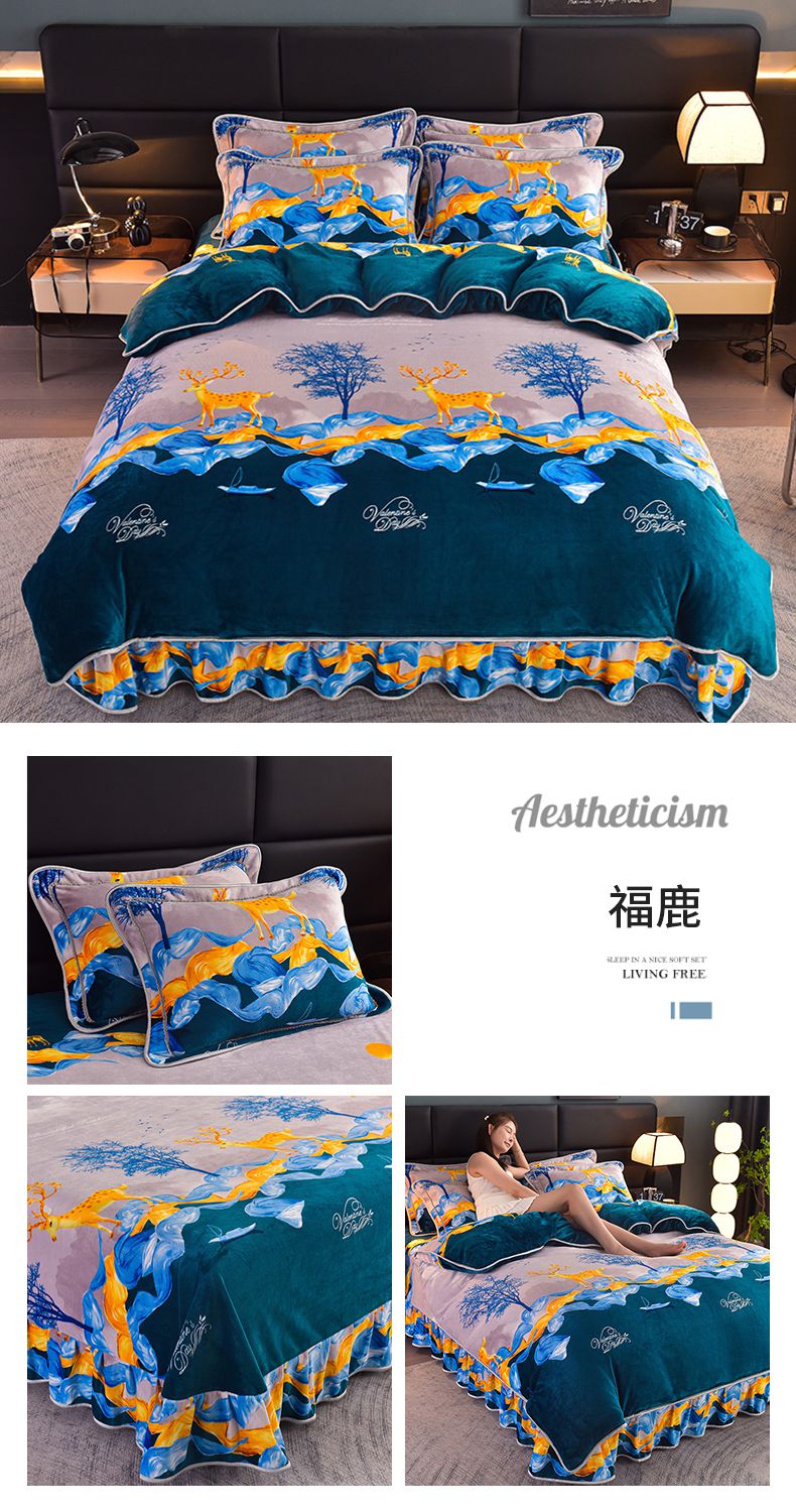 Mercury series milk velvet four-piece set for winter thickened coral velvet 2025 new double-sided flannel quilt cover bed skirt bedding pattern sentiment thickened and warm anti-static hot at the touch 1.5/1.8m bed skirt style four-piece set-quilt cover 200*230