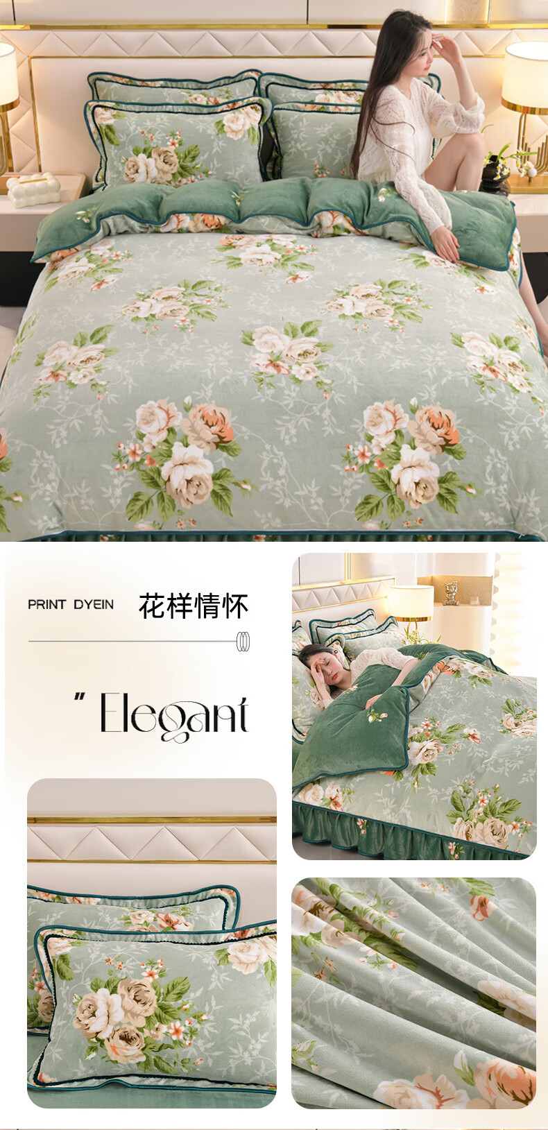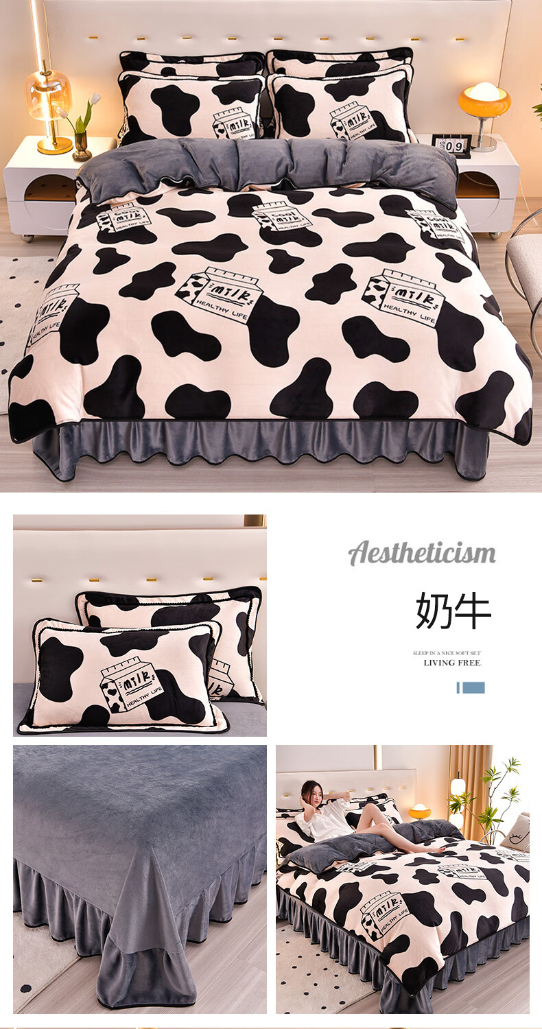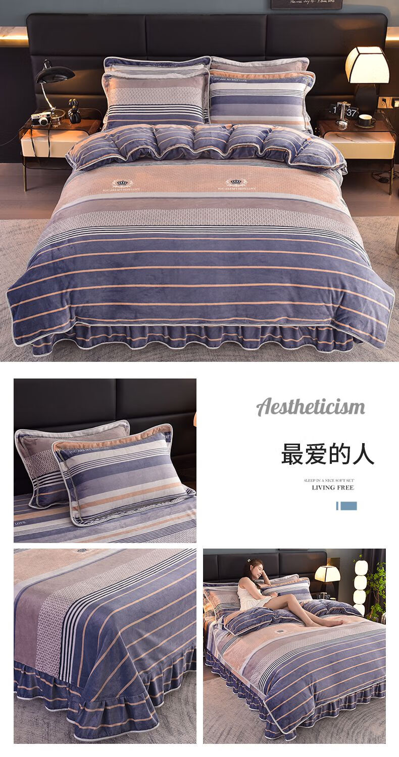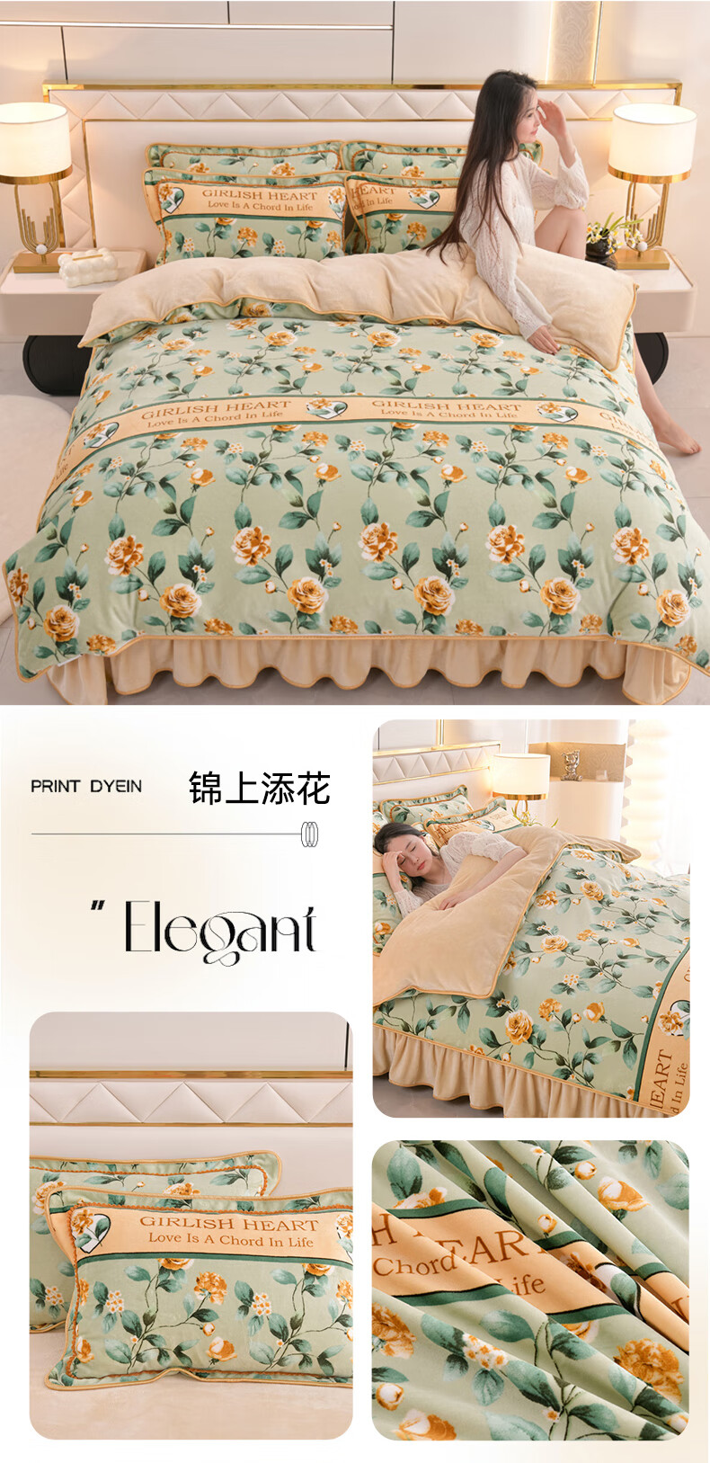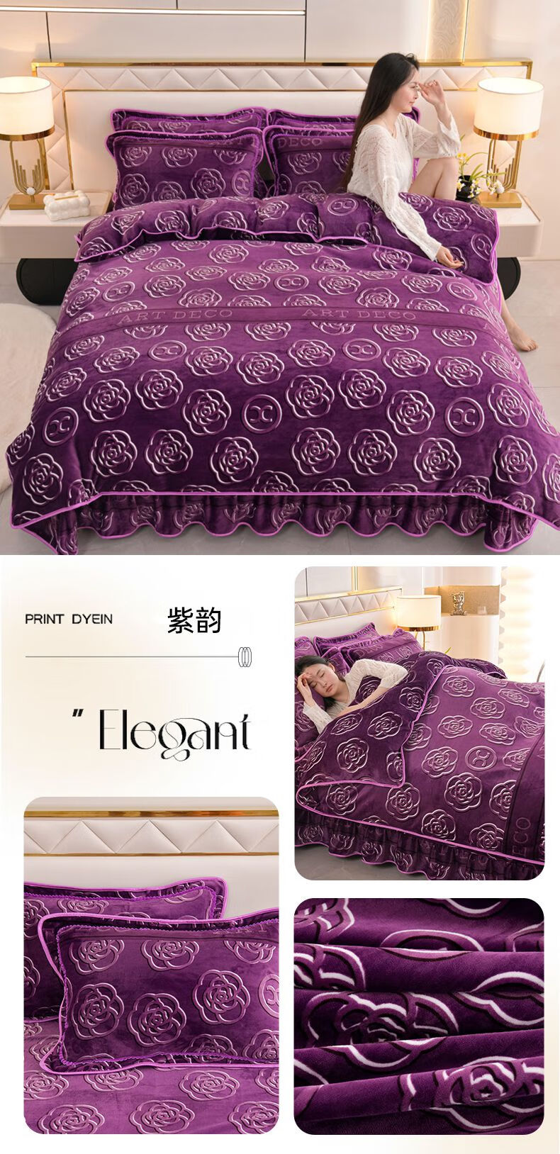 Mercury series milk velvet four-piece set for winter thickened coral velvet 2025 new double-sided flannel quilt cover bed skirt bedding pattern sentiment thickened and warm anti-static hot at the touch 1.5/1.8m bed skirt style four-piece set-quilt cover 200*230