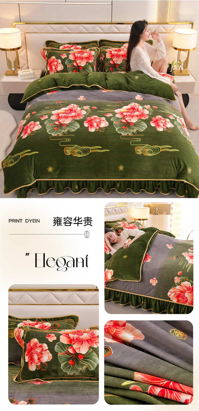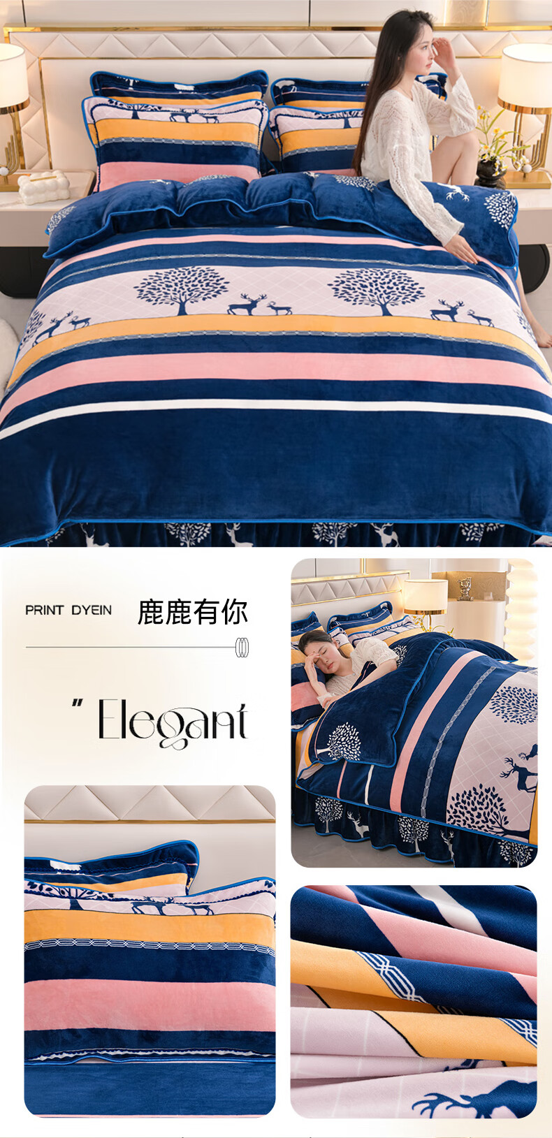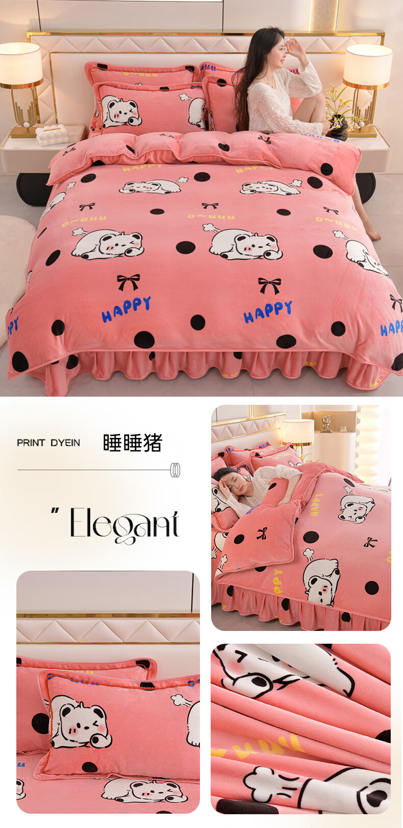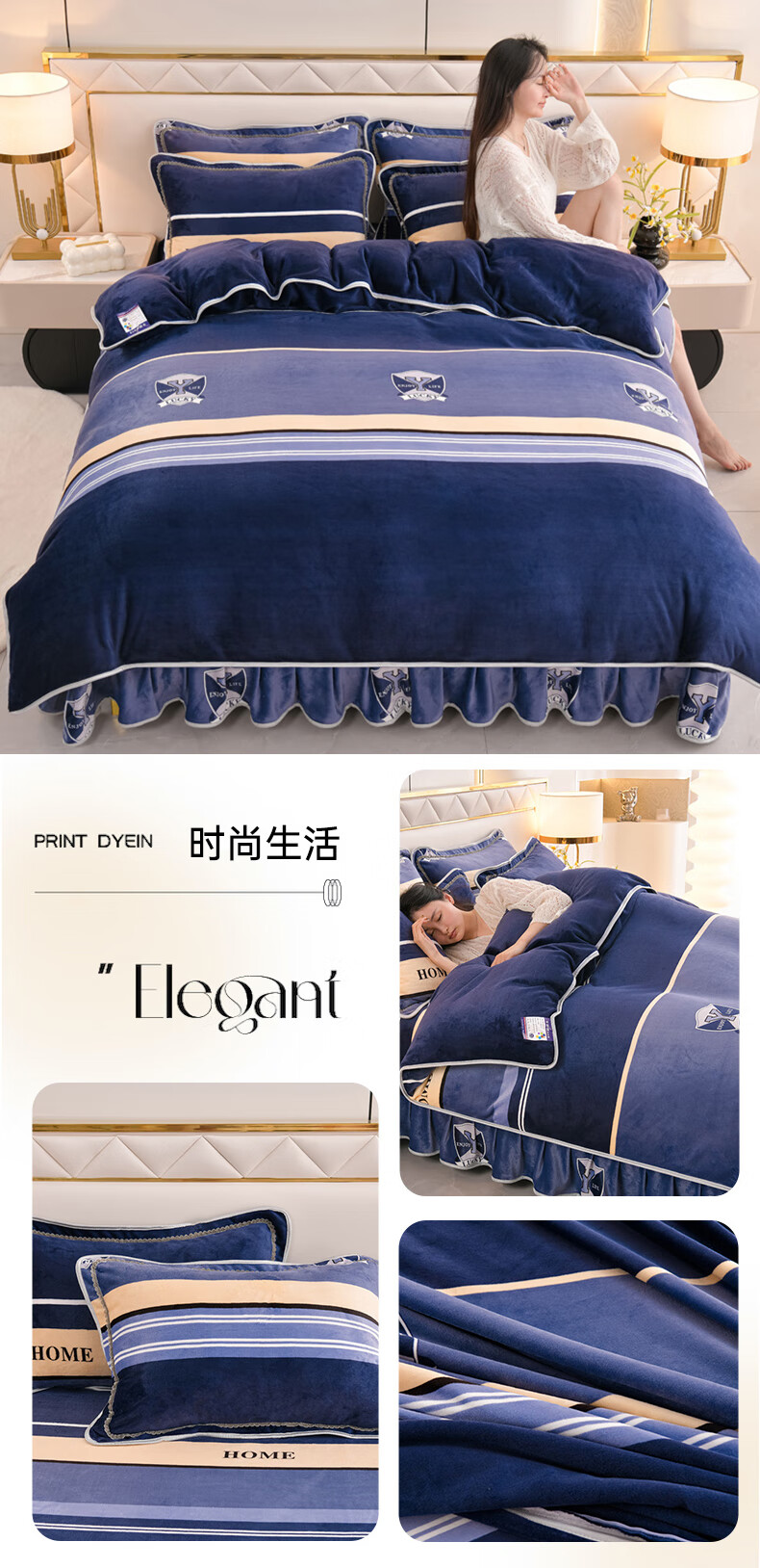 Mercury series milk velvet four-piece set for winter thickened coral velvet 2025 new double-sided flannel quilt cover bed skirt bedding pattern sentiment thickened and warm anti-static hot at the touch 1.5/1.8m bed skirt style four-piece set-quilt cover 200*230