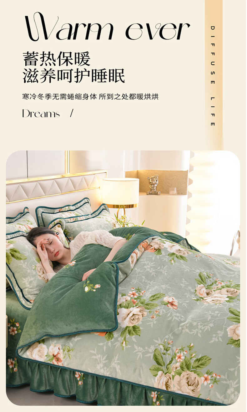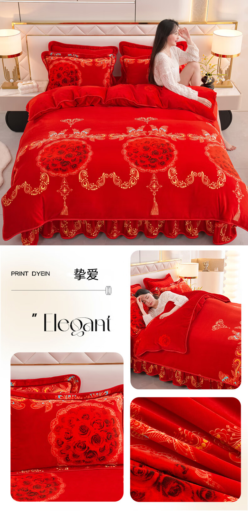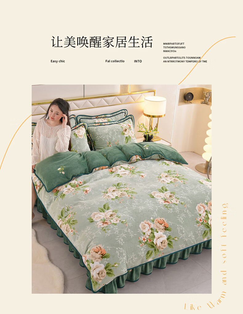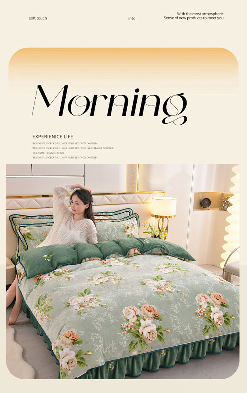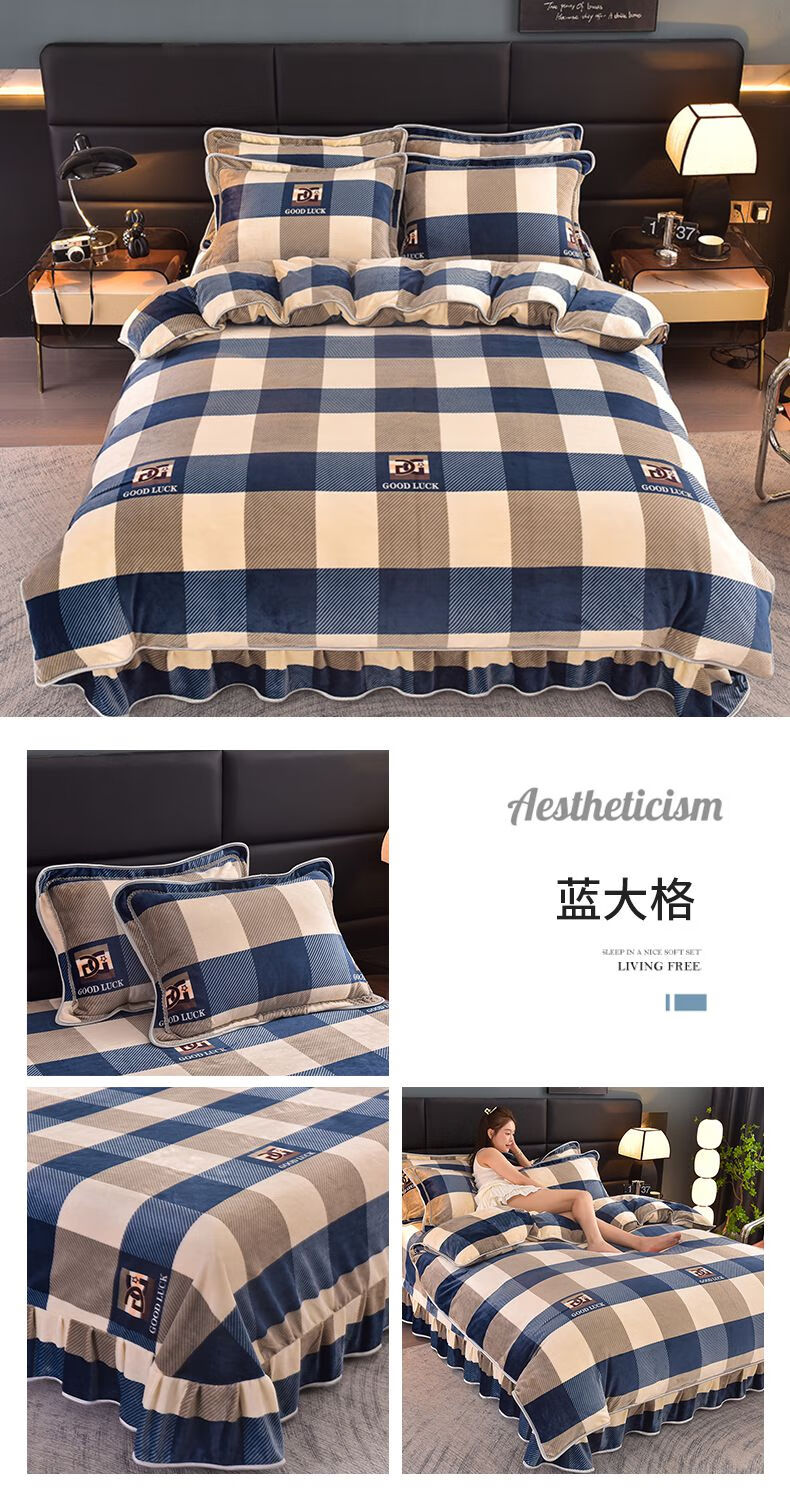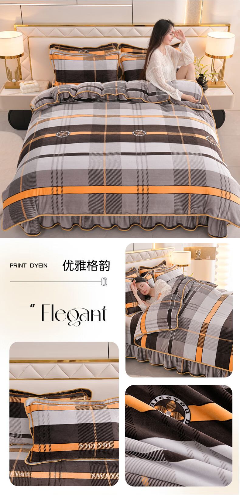 Mercury series milk velvet four-piece set for winter thickened coral velvet 2025 new double-sided flannel quilt cover bed skirt bedding pattern sentiment thickened and warm anti-static hot at the touch 1.5/1.8m bed skirt style four-piece set-quilt cover 200*230