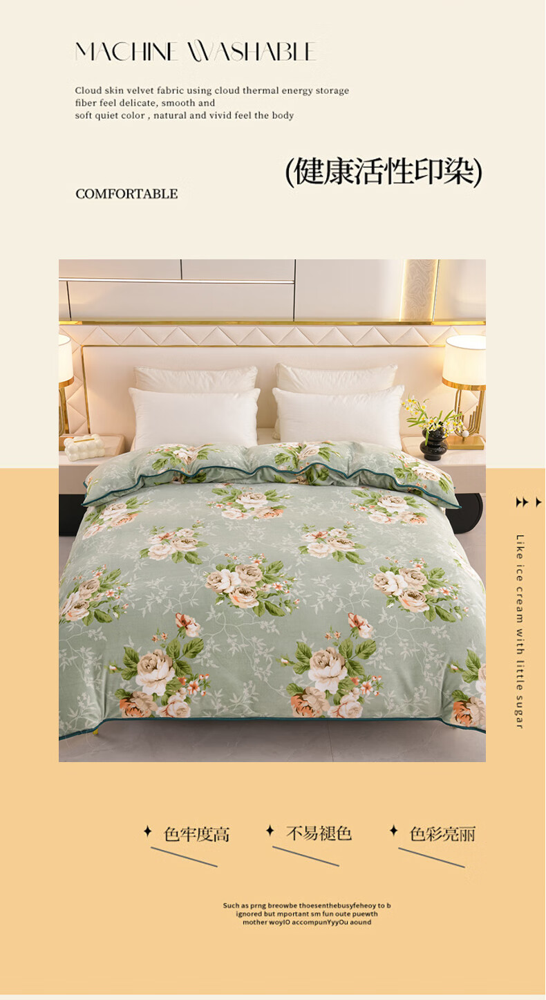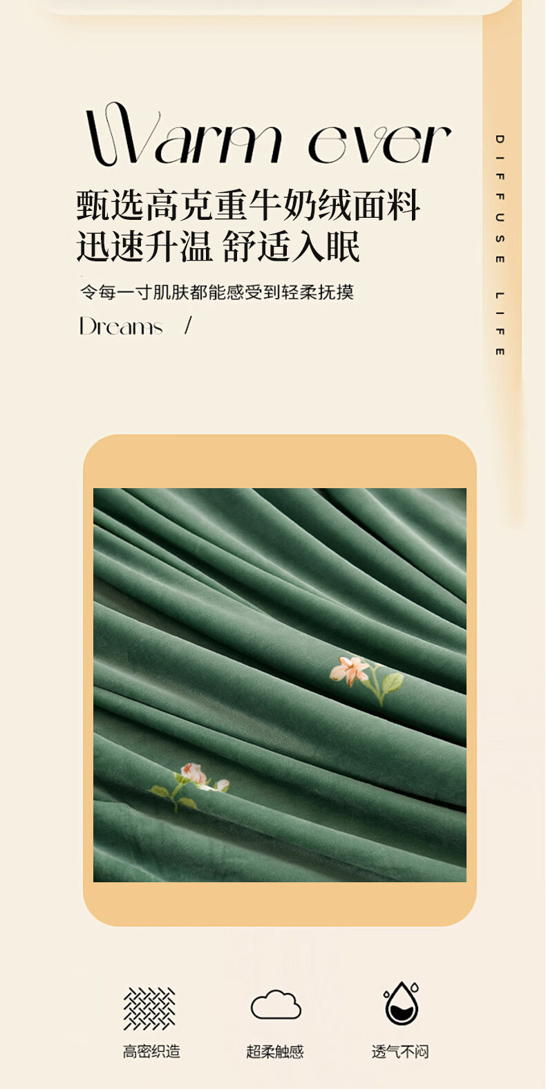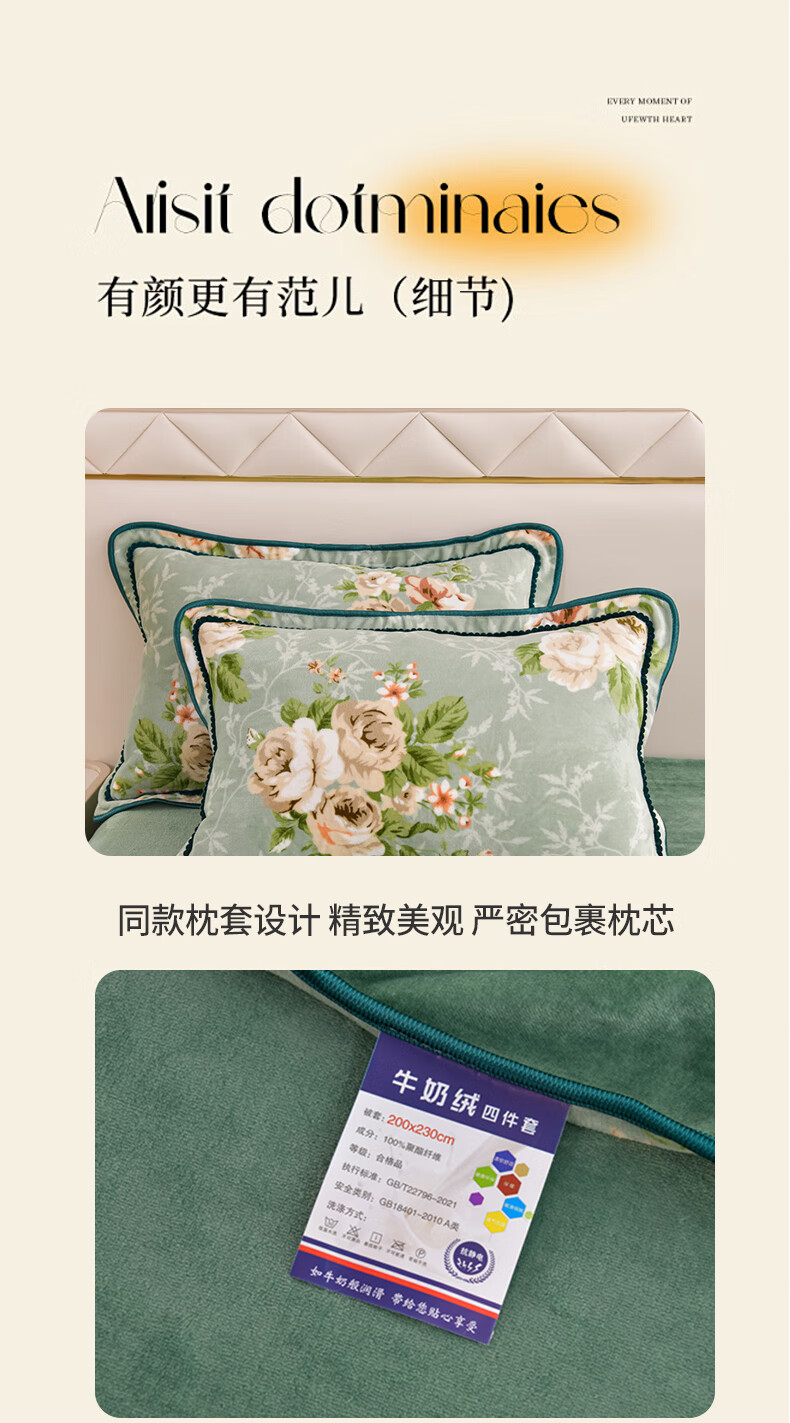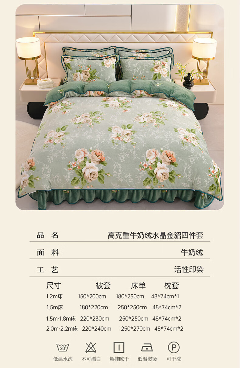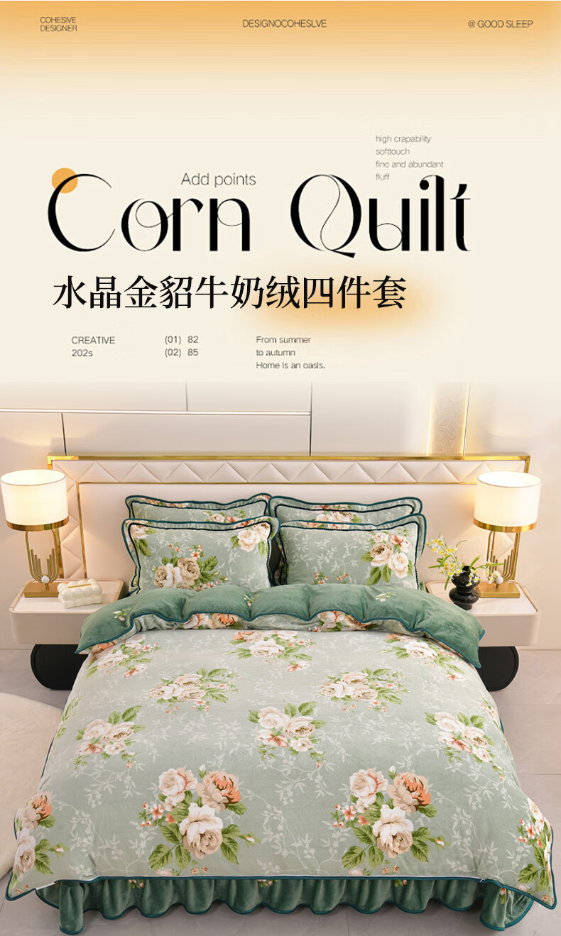 Mercury series milk velvet four-piece set for winter thickened coral velvet 2025 new double-sided flannel quilt cover bed skirt bedding pattern sentiment thickened and warm anti-static hot at the touch 1.5/1.8m bed skirt style four-piece set-quilt cover 200*230