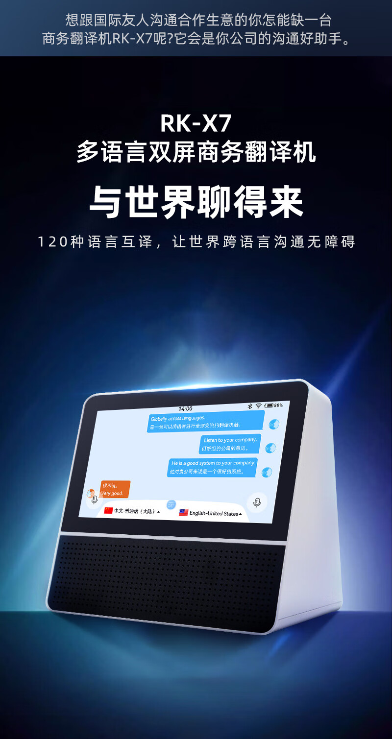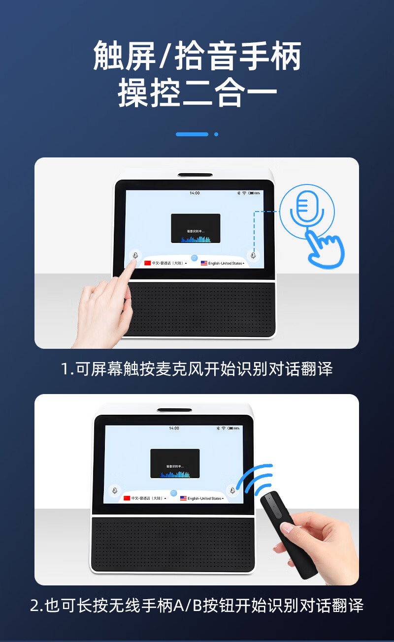 Neutral monitoring touch screen business multi-language dual-screen translator intelligent voice translator wifi wireless conference pair white