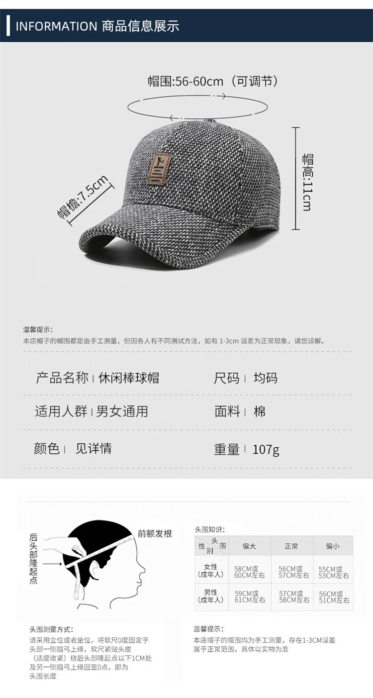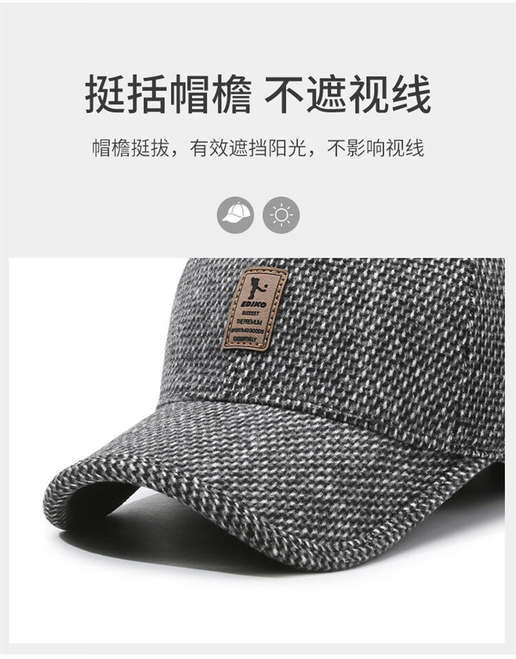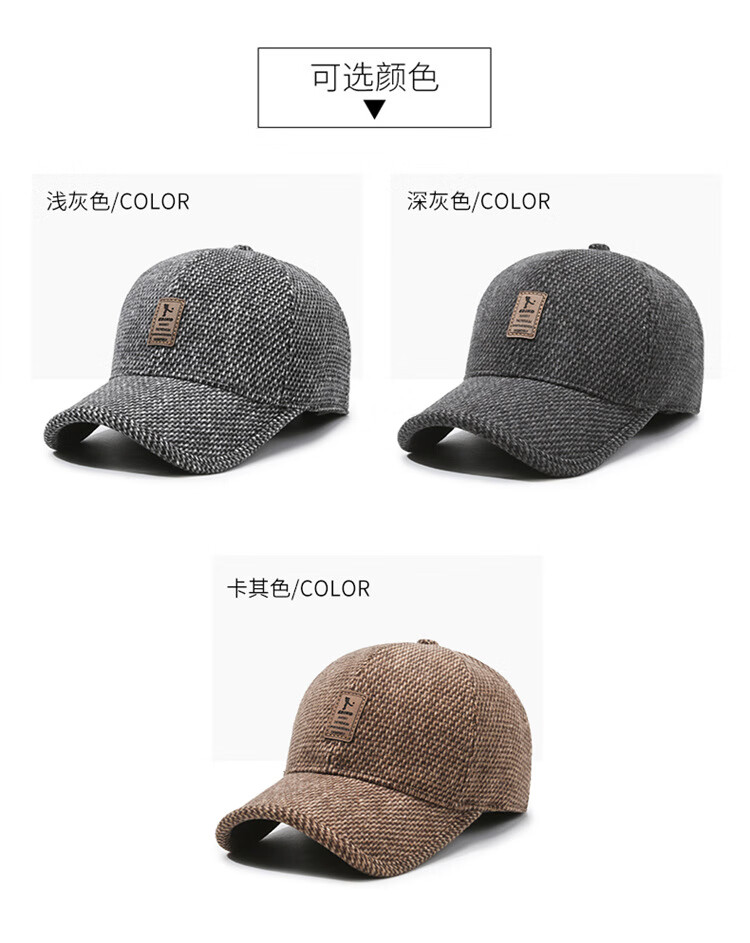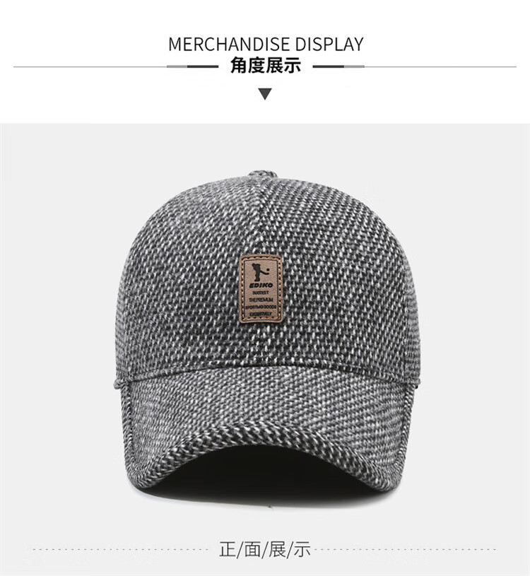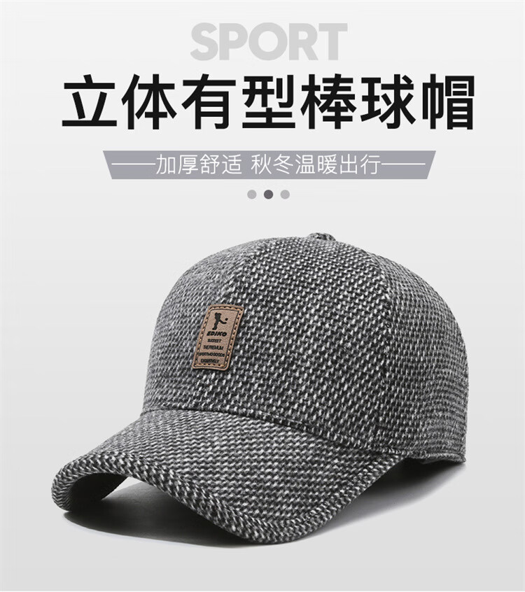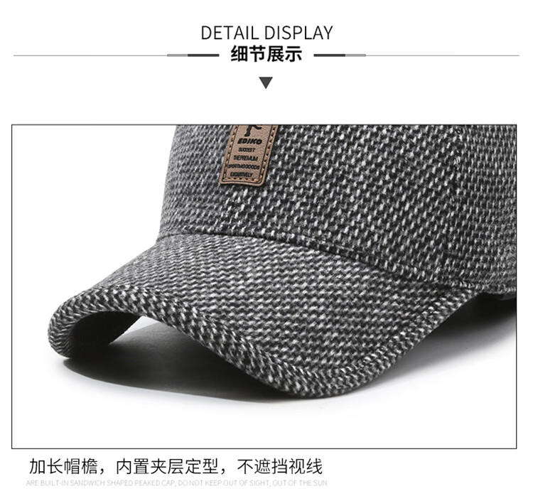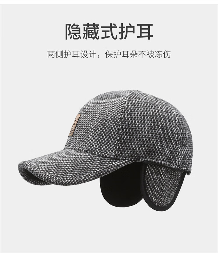 Winter leisure winning baseball cap middle-aged and elderly autumn and winter hat warm ear protection cotton hat outdoor sports peaked cap gray adjustable