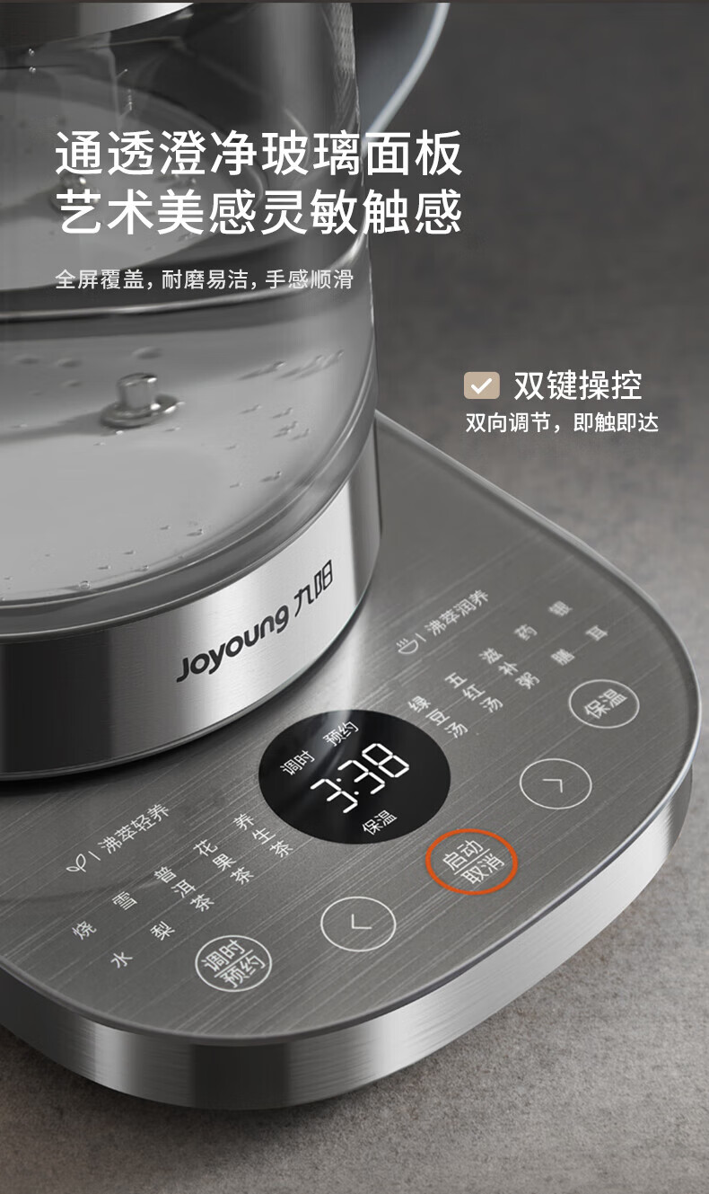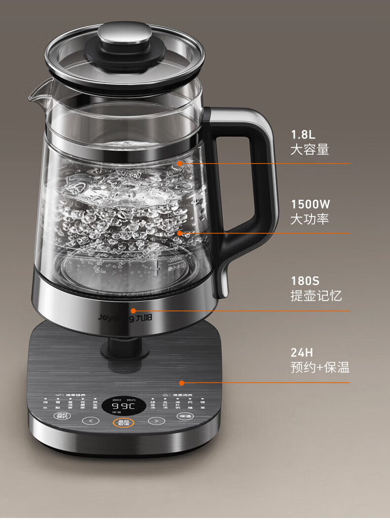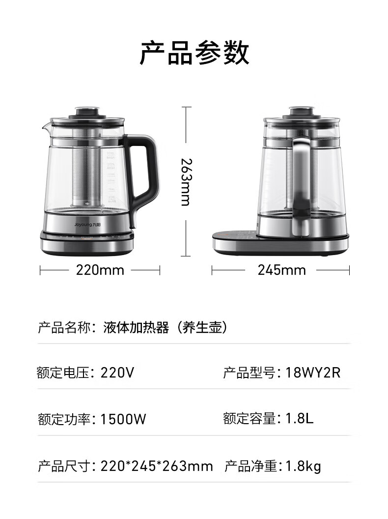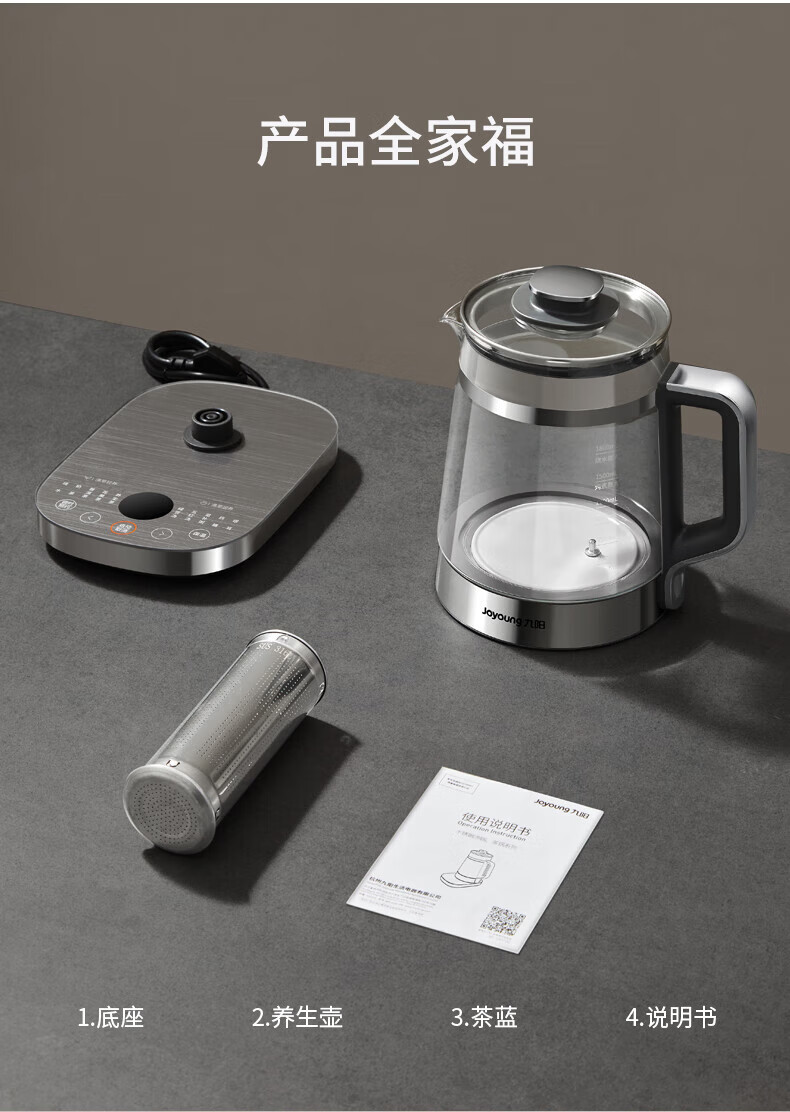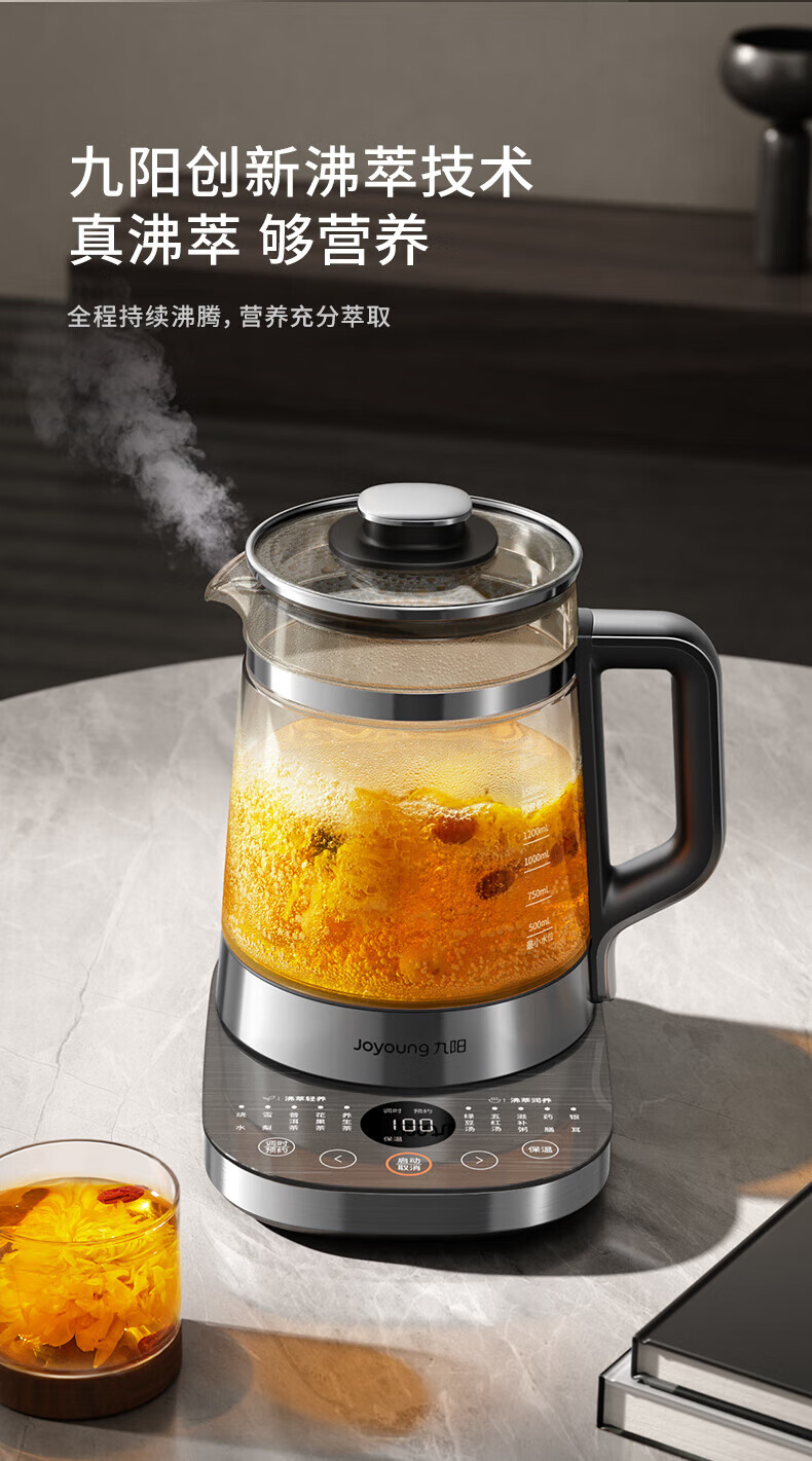 Joyoung 1.8L large-capacity boiling and boiling health-preserving kettle that does not burn the bottom and is easy to wash. Ceramic coating plate, ultra-light sound stewing, fully automatic heat preservation tea maker, multi-functional intelligent decoction electric kettle, boiling and boiling that does not burn the bottom. 1.8L 316L tea blue