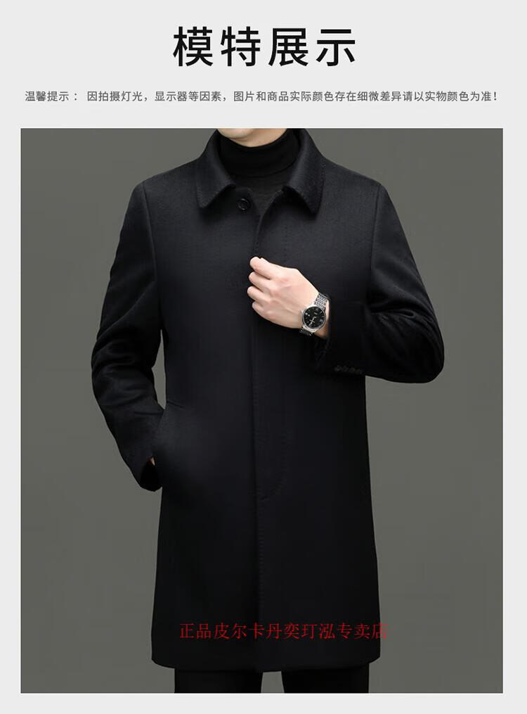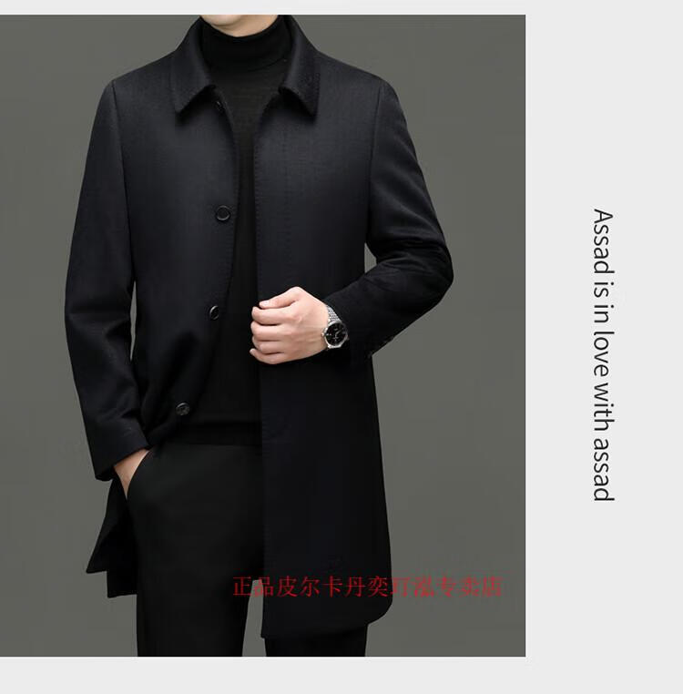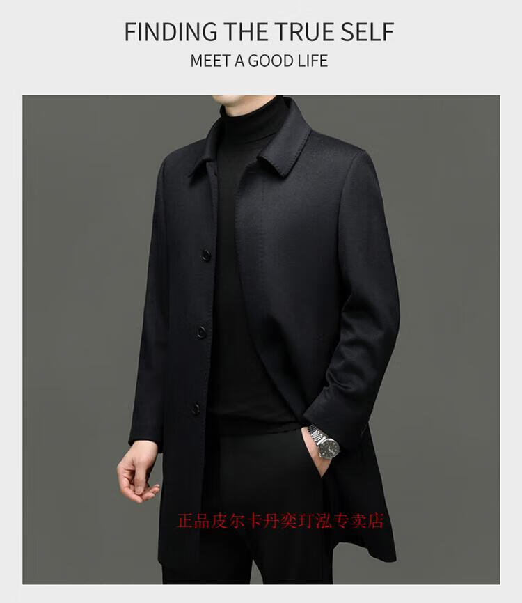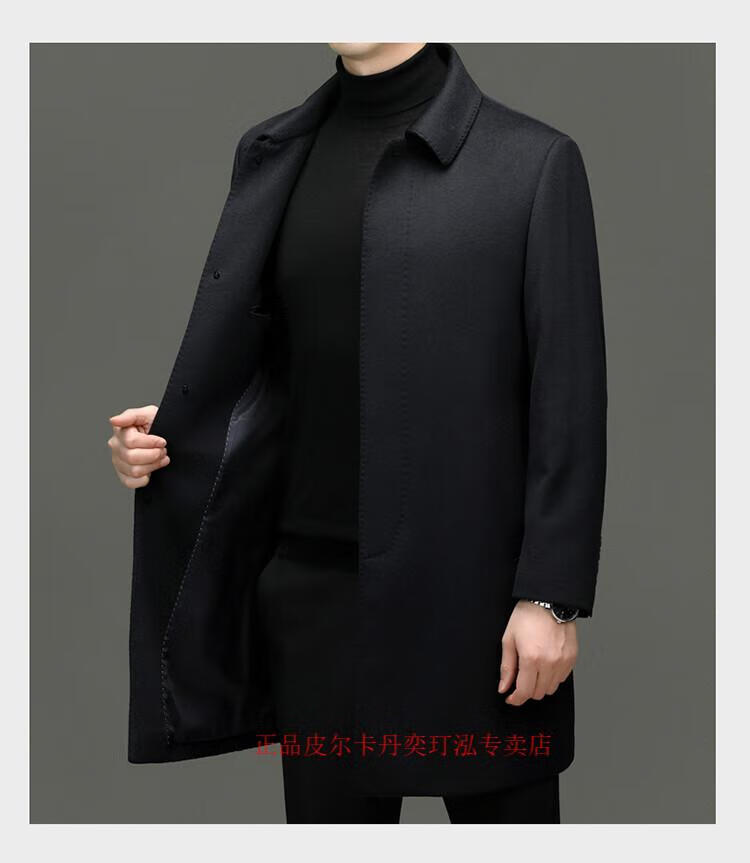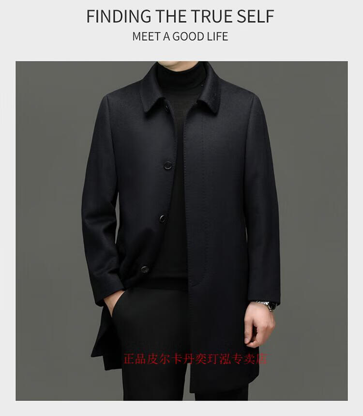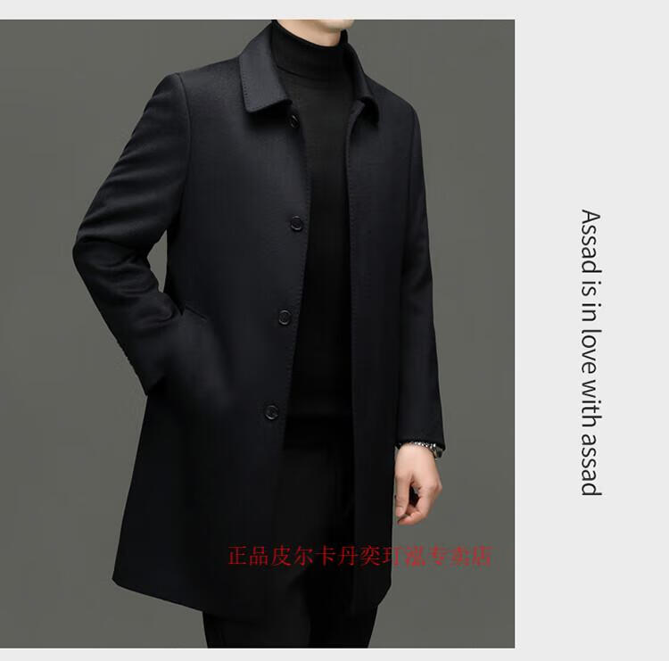 Pierre Cardin 100% pure cashmere woolen coat men's mid-length leader young and middle-aged dad's woolen windbreaker high-end coat navy blue XL 180 (recommended 140-155 Jin Jin equals 0.5 kg)