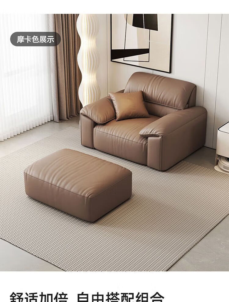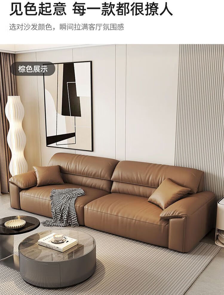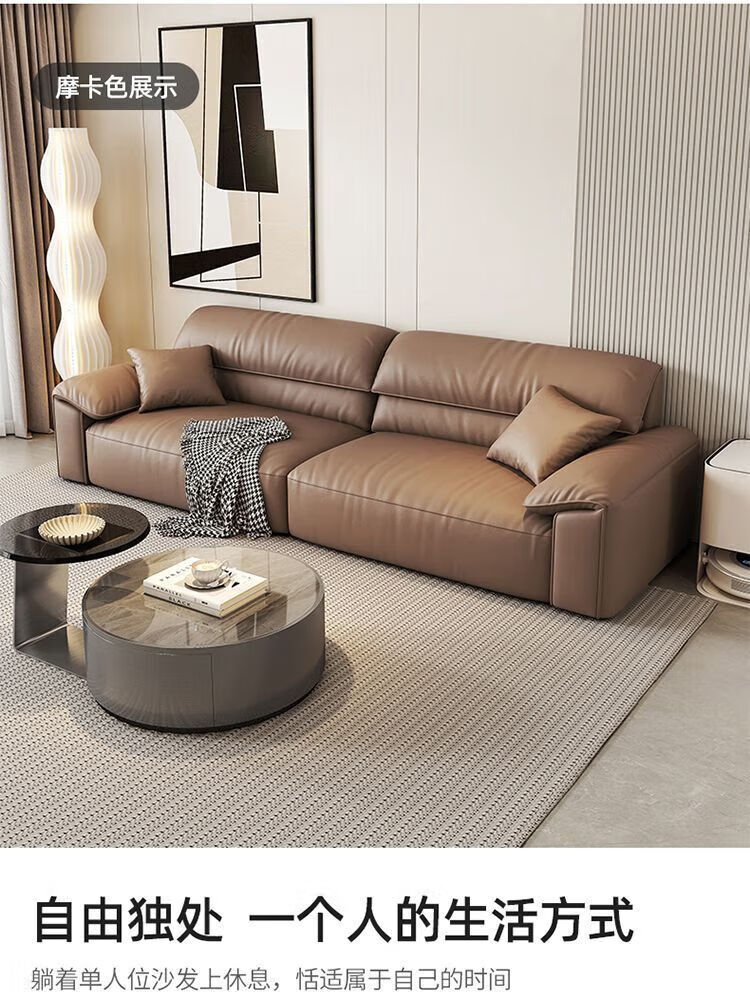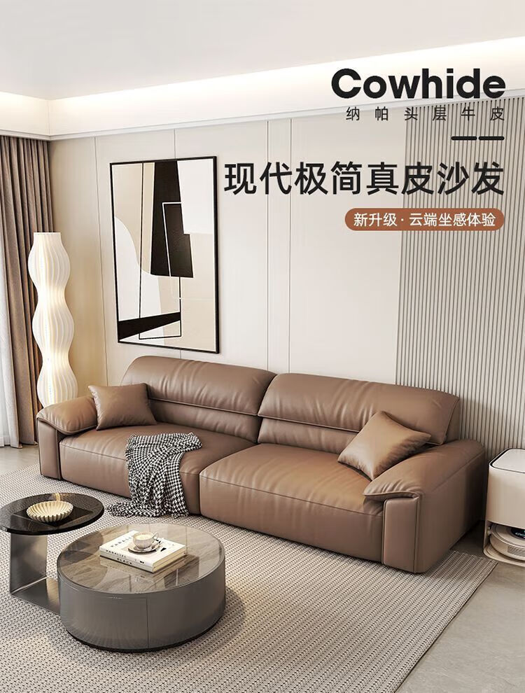 Italian minimalist cowhide sofa genuine leather home modern simple sofa large and small apartment leather art sofa living room straight row selected anti-fouling cat scratch leather 1.25m single seat multi-color optional