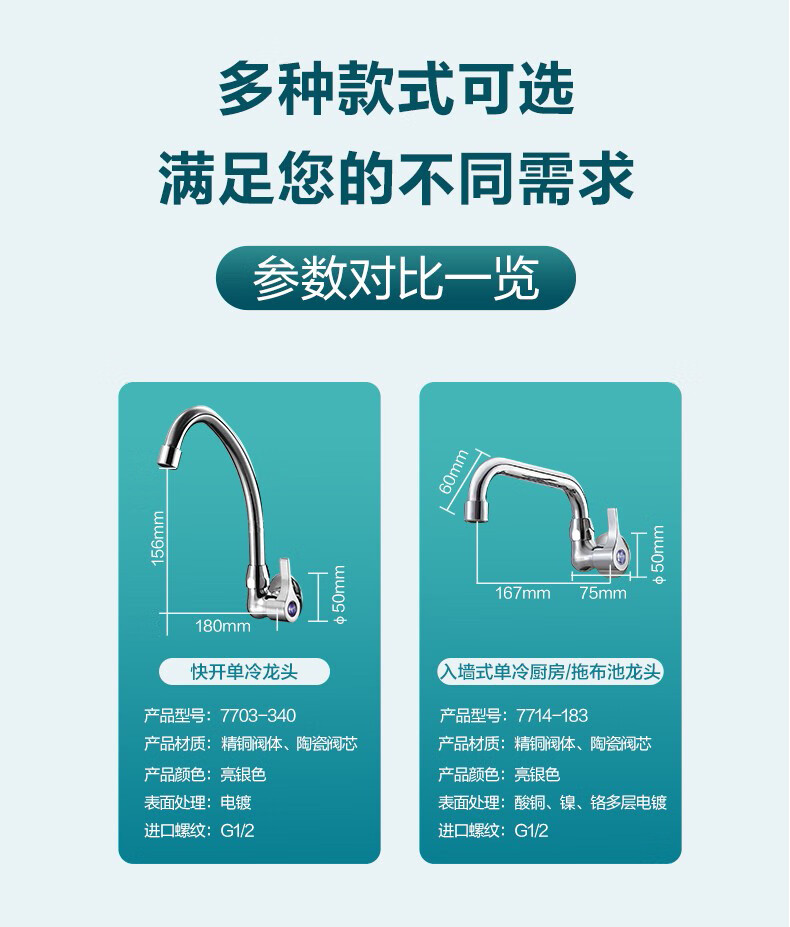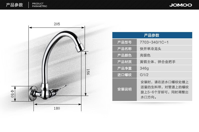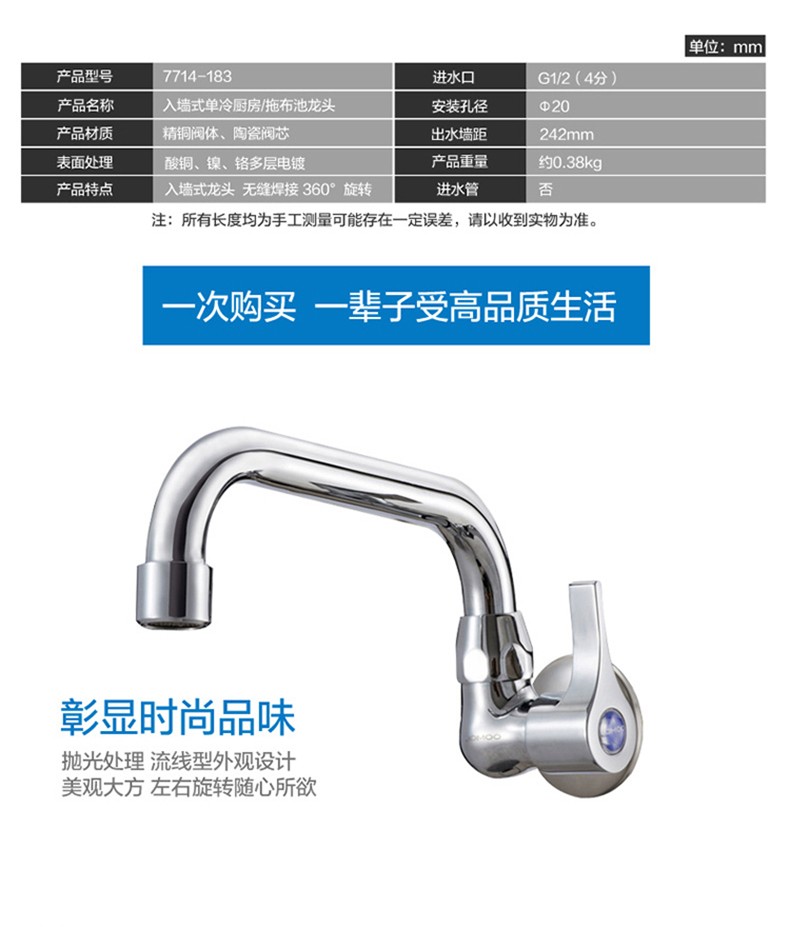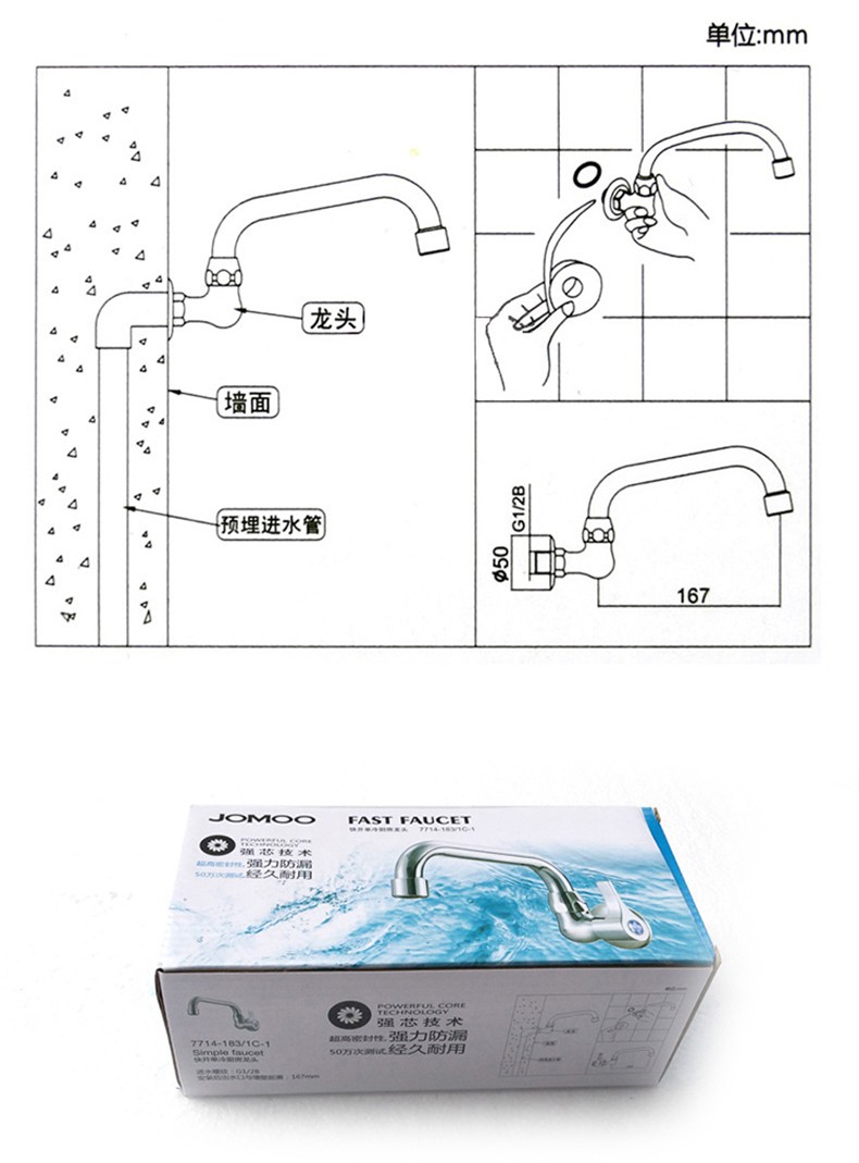 JOMOO bathroom and kitchen faucet, wall-mounted fine copper body, rotatable sink, vegetable basin, single cold water faucet, wall-mounted single cold water faucet 7703