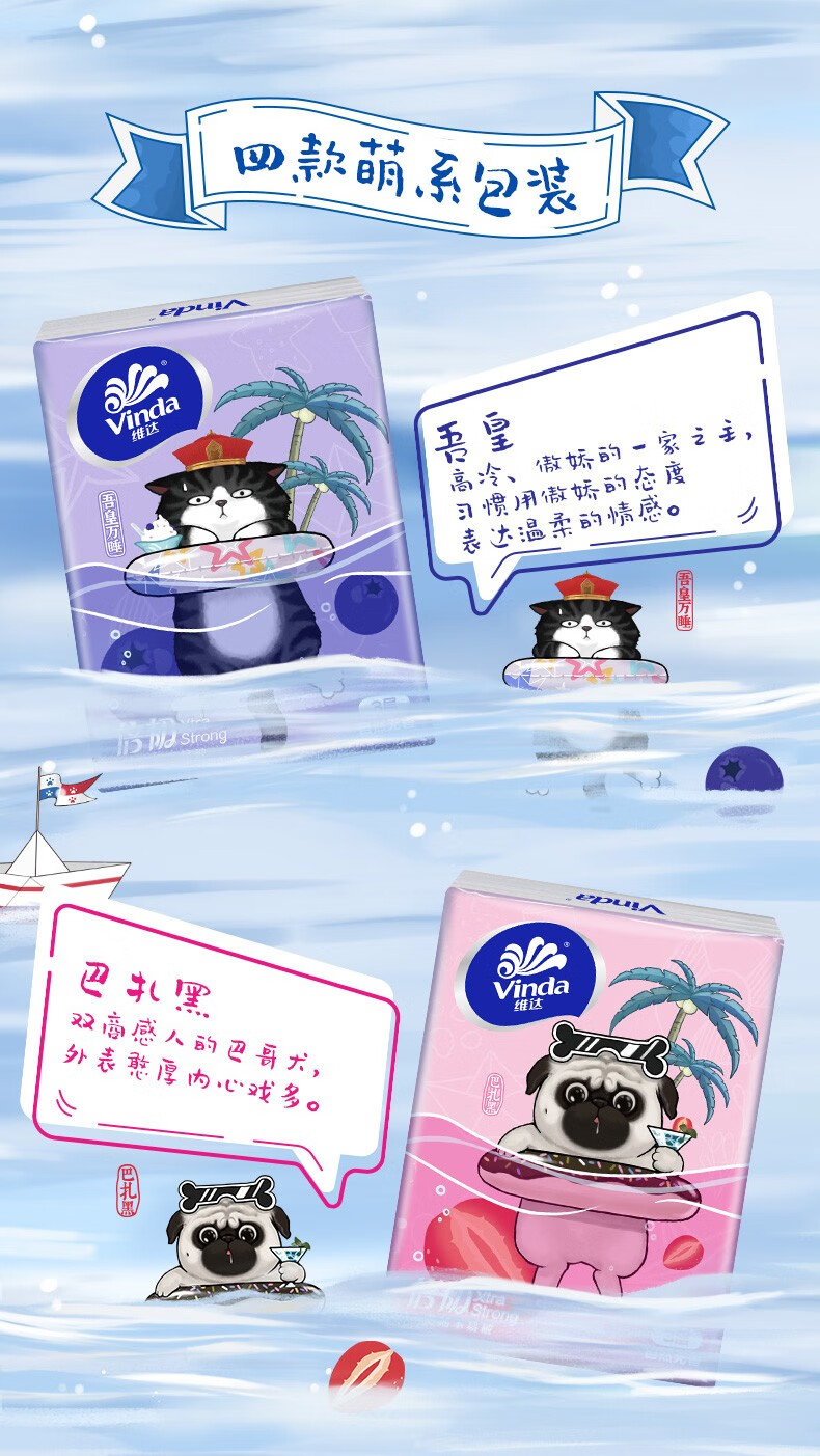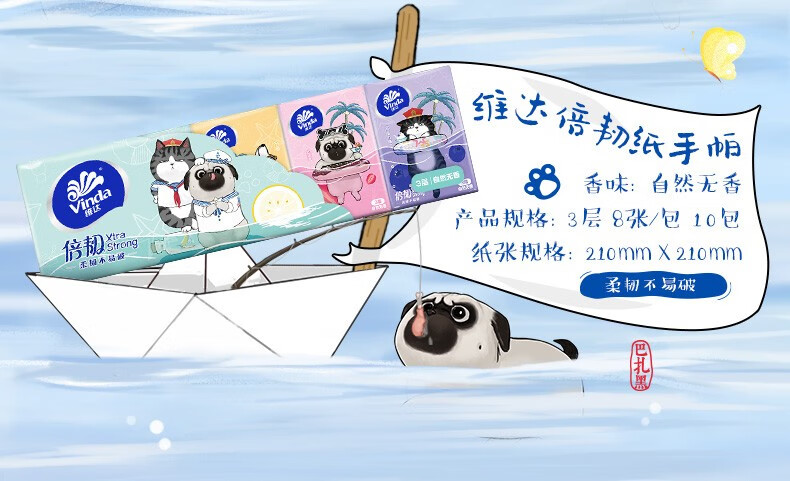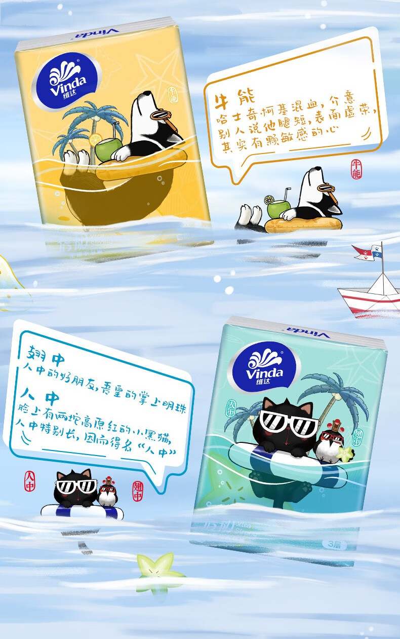 Vinda handkerchief paper 3 layers 8 sheets unscented facial tissue toilet paper napkins carry-on portable small package tissue wholesale 10 packs