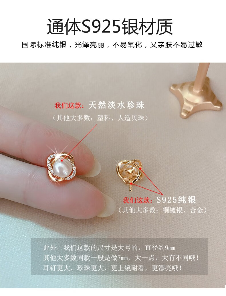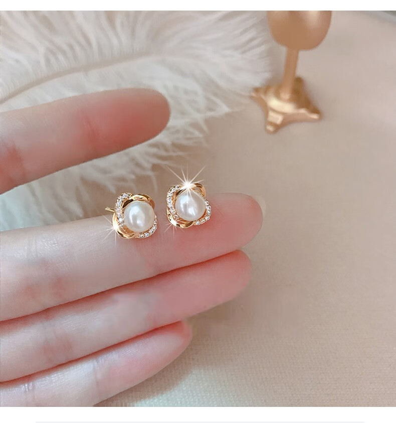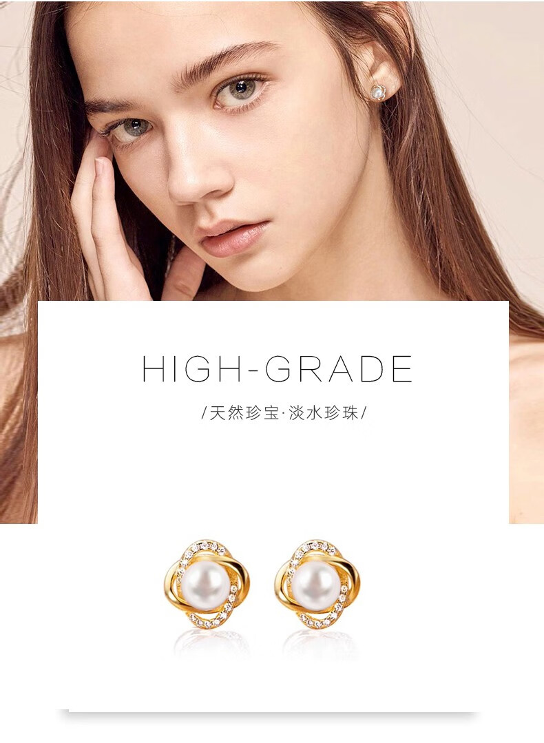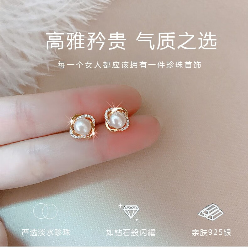 Lao Fengxiang French natural freshwater pearl earrings sterling silver female Korean earrings S925 silver elegant and elegant earrings for girlfriend Elegant natural freshwater pearl earrings + certificate + professional