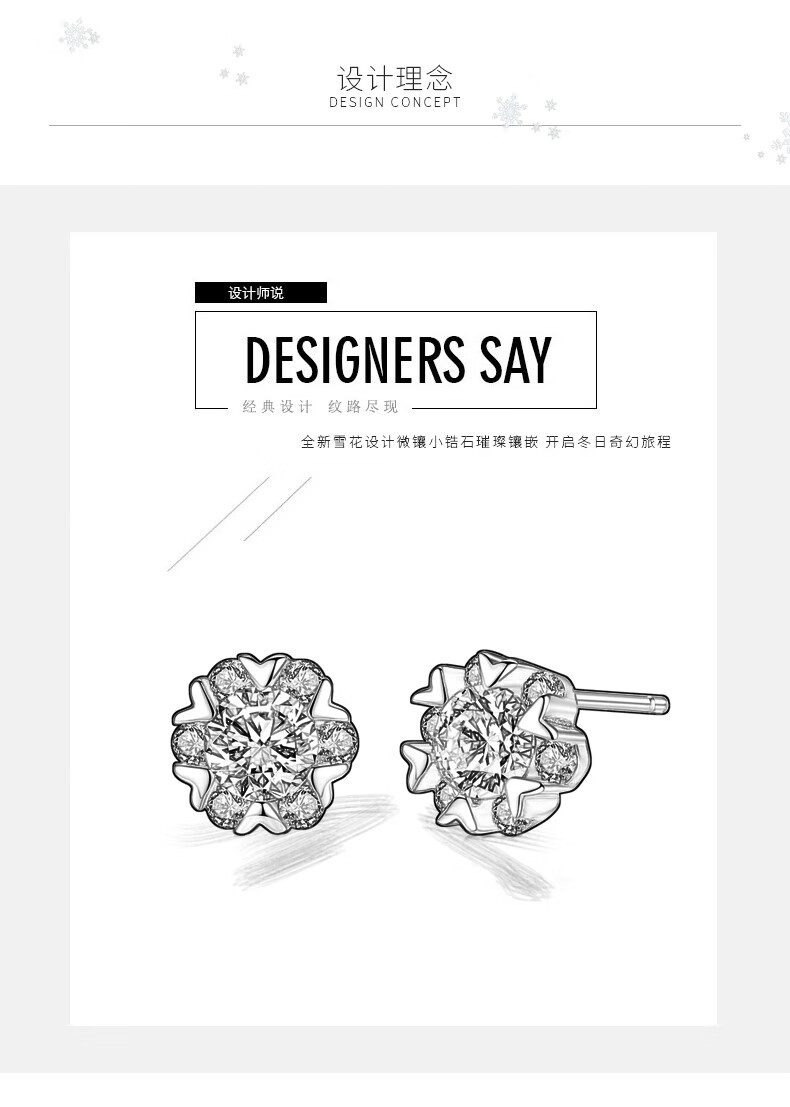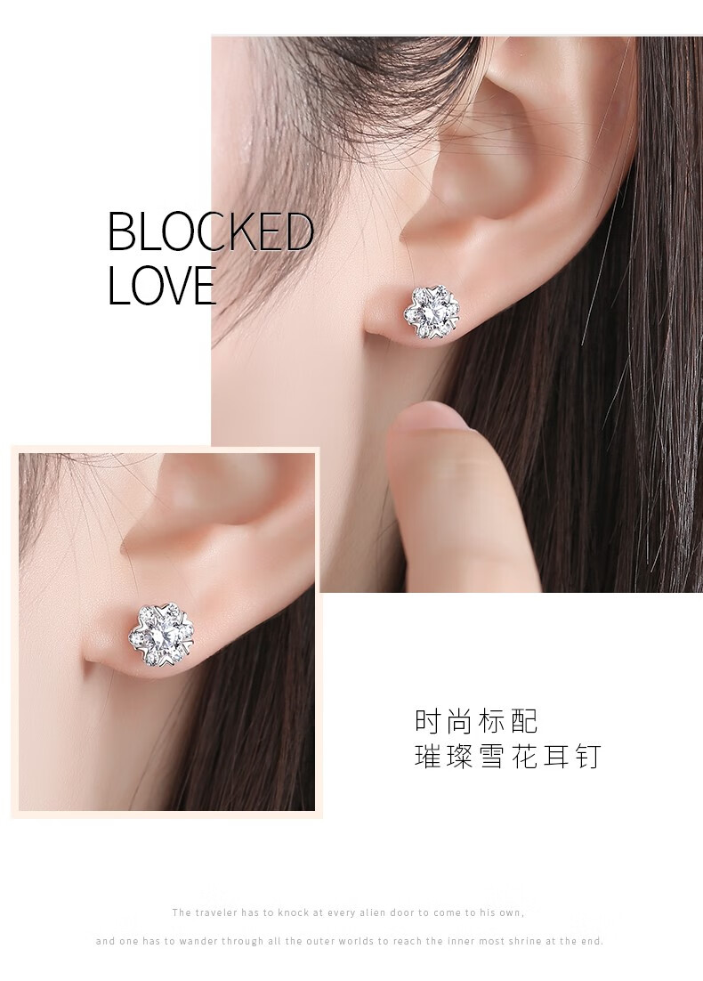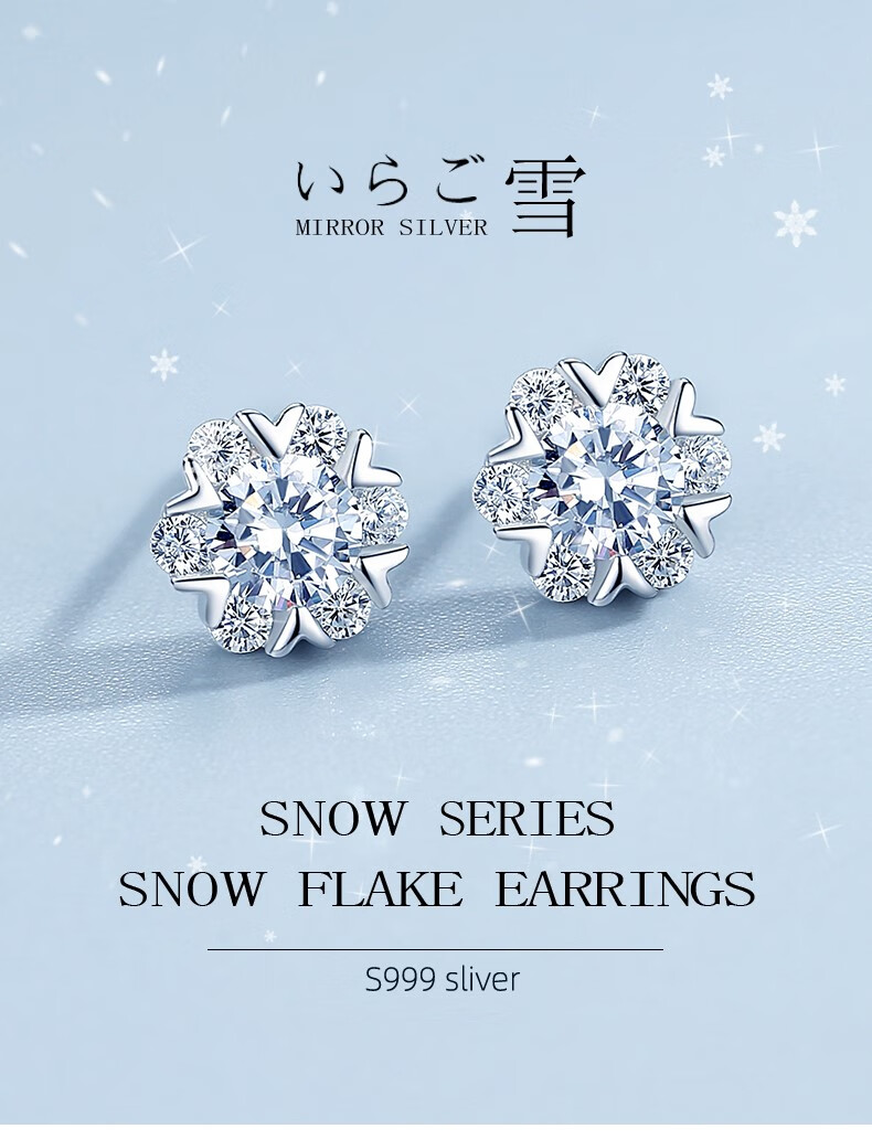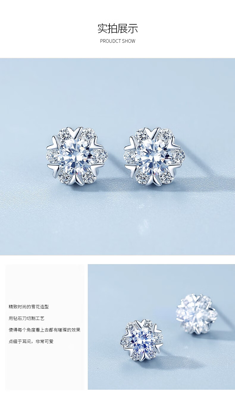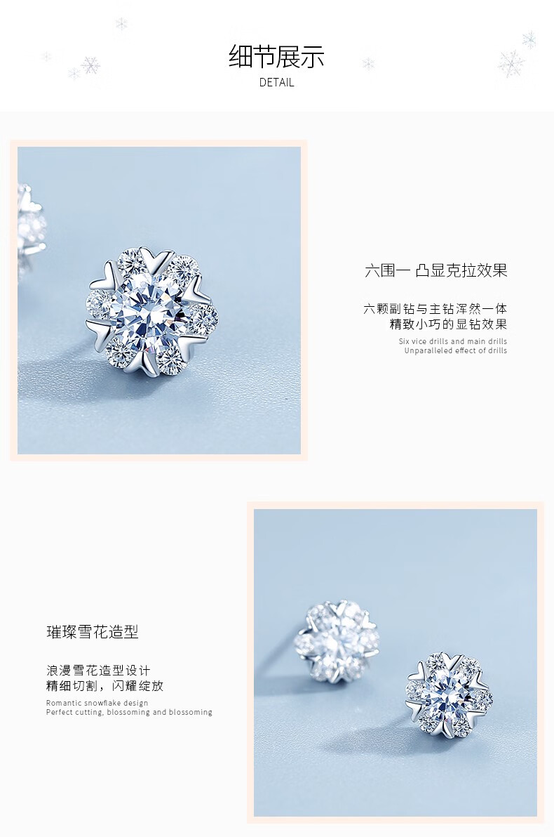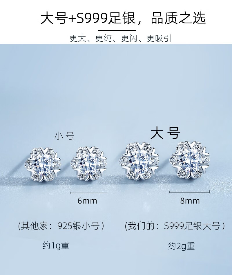 Lao Fengxiang Large Super Sparkling Star Snowflake S999 Pure Silver Earrings Women's Sterling Silver Earrings Earrings Silver Jewelry Starry Snowflake Earrings Whole Body Pure Silver + Certificate + Fine