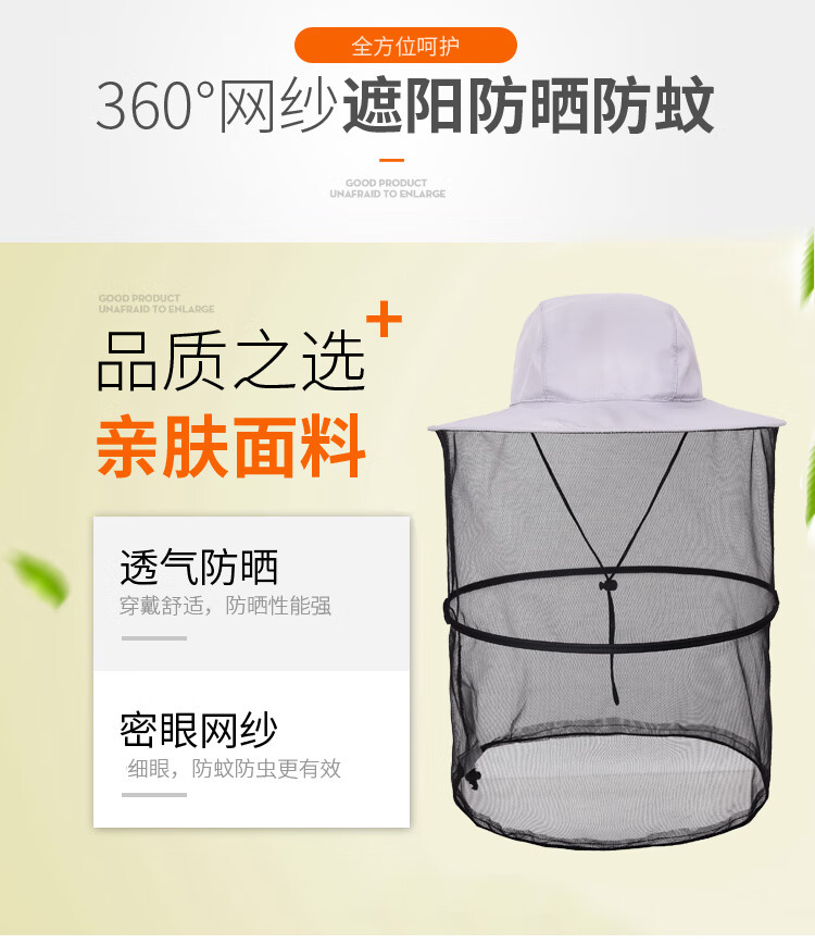 MDUG Outdoor Anti-mosquito Hat Men's Fishing Hat Covers Face Sunscreen Breathable Mesh Mask Night Fishing Anti-Insect Hat Beekeeping Anti-Bee Hat Gray Color One Size