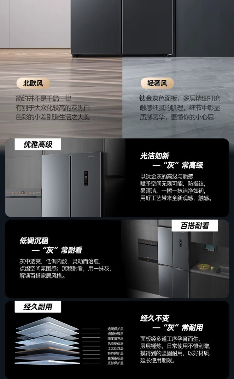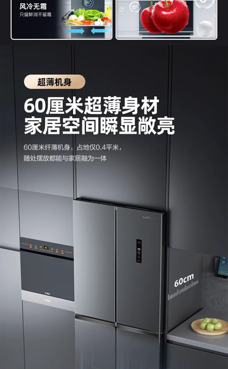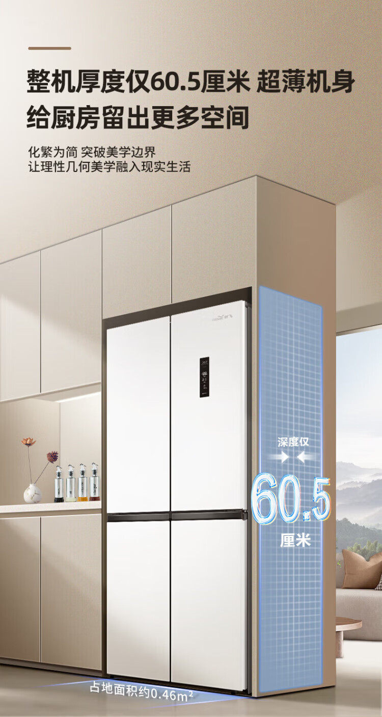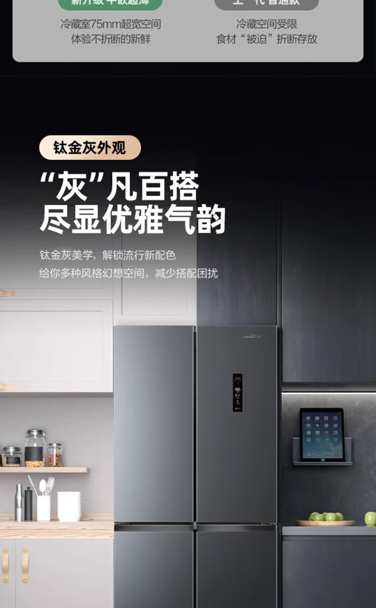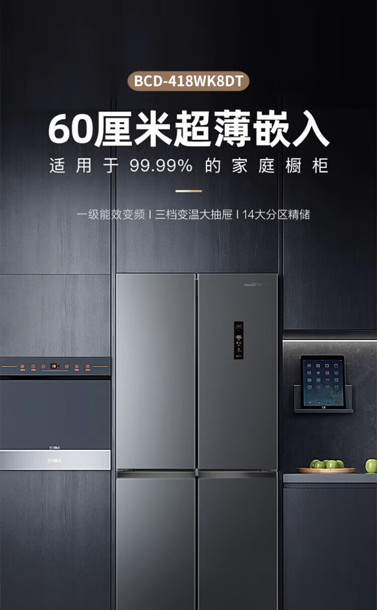 Xinfei refrigerator cross four-door 418 liter large capacity ultra-thin 60.5cm embedded inverter first-class energy efficiency energy-saving bass air-cooled frost-free LED display intelligent temperature control freshness gray | air-cooled frost-free | deodorization and odor
