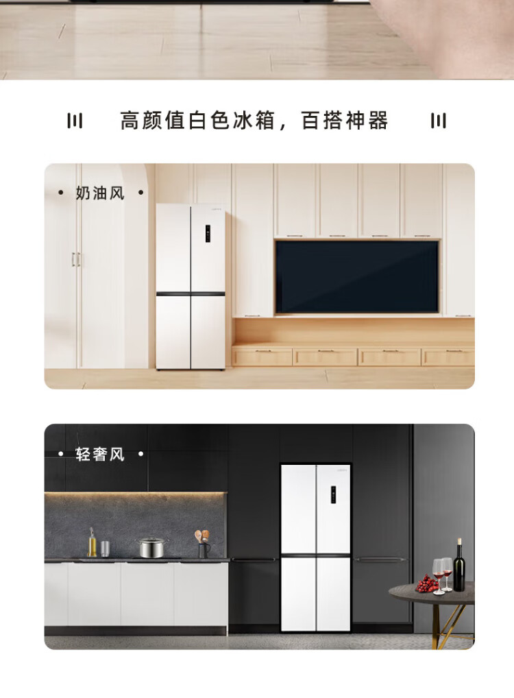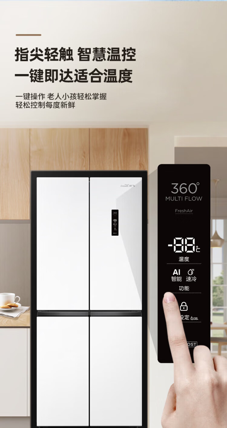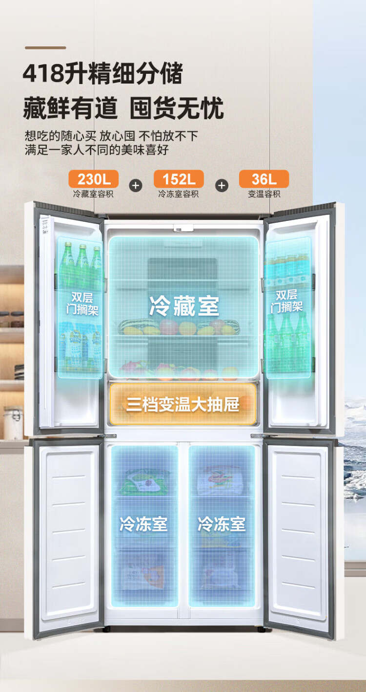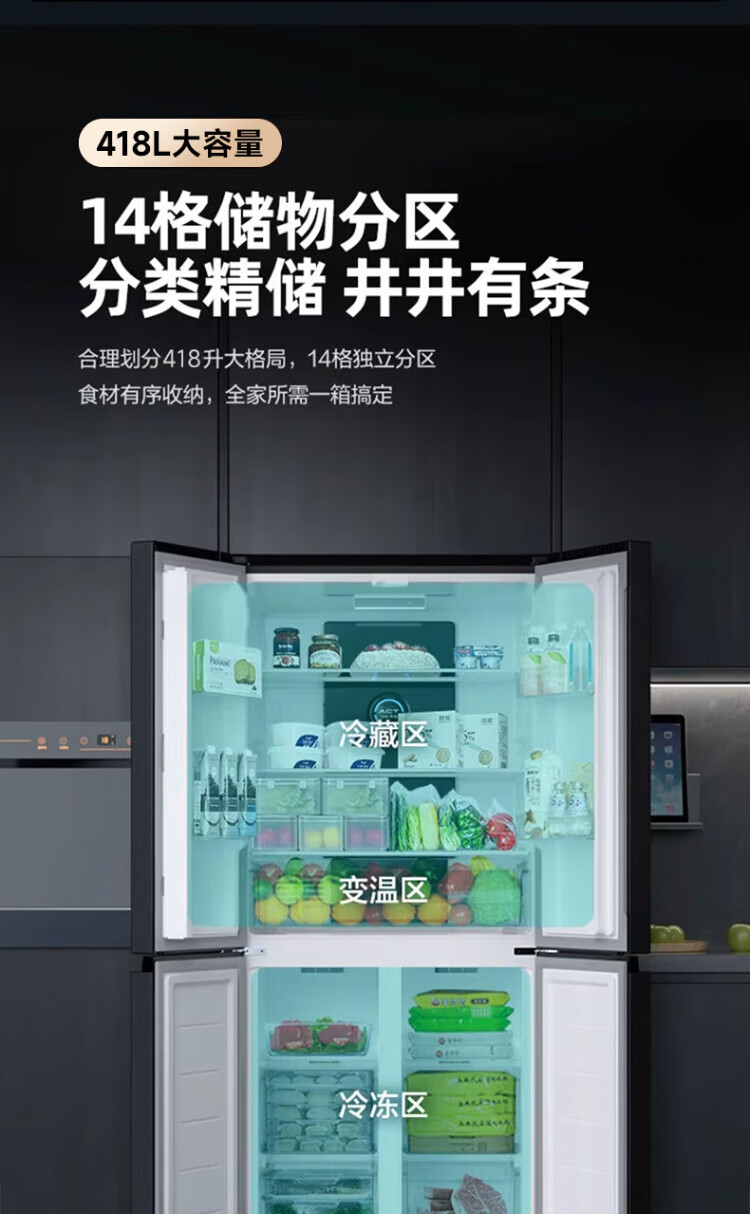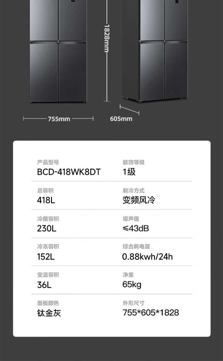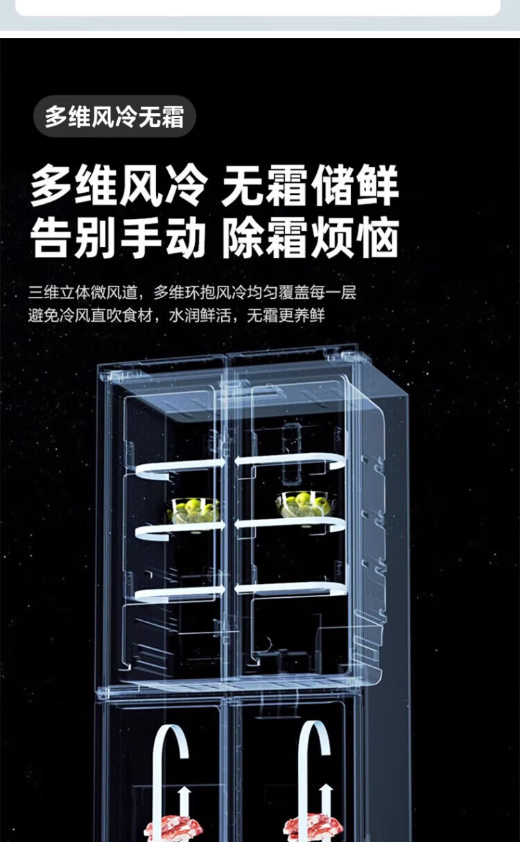 Xinfei refrigerator cross four-door 418 liter large capacity ultra-thin 60.5cm embedded inverter first-class energy efficiency energy-saving bass air-cooled frost-free LED display intelligent temperature control freshness gray | air-cooled frost-free | deodorization and odor