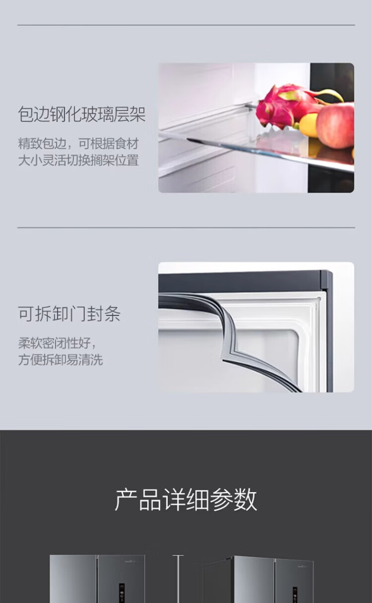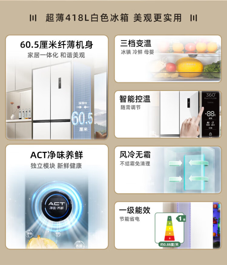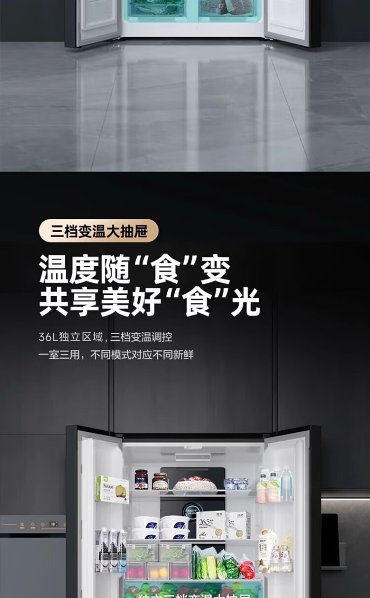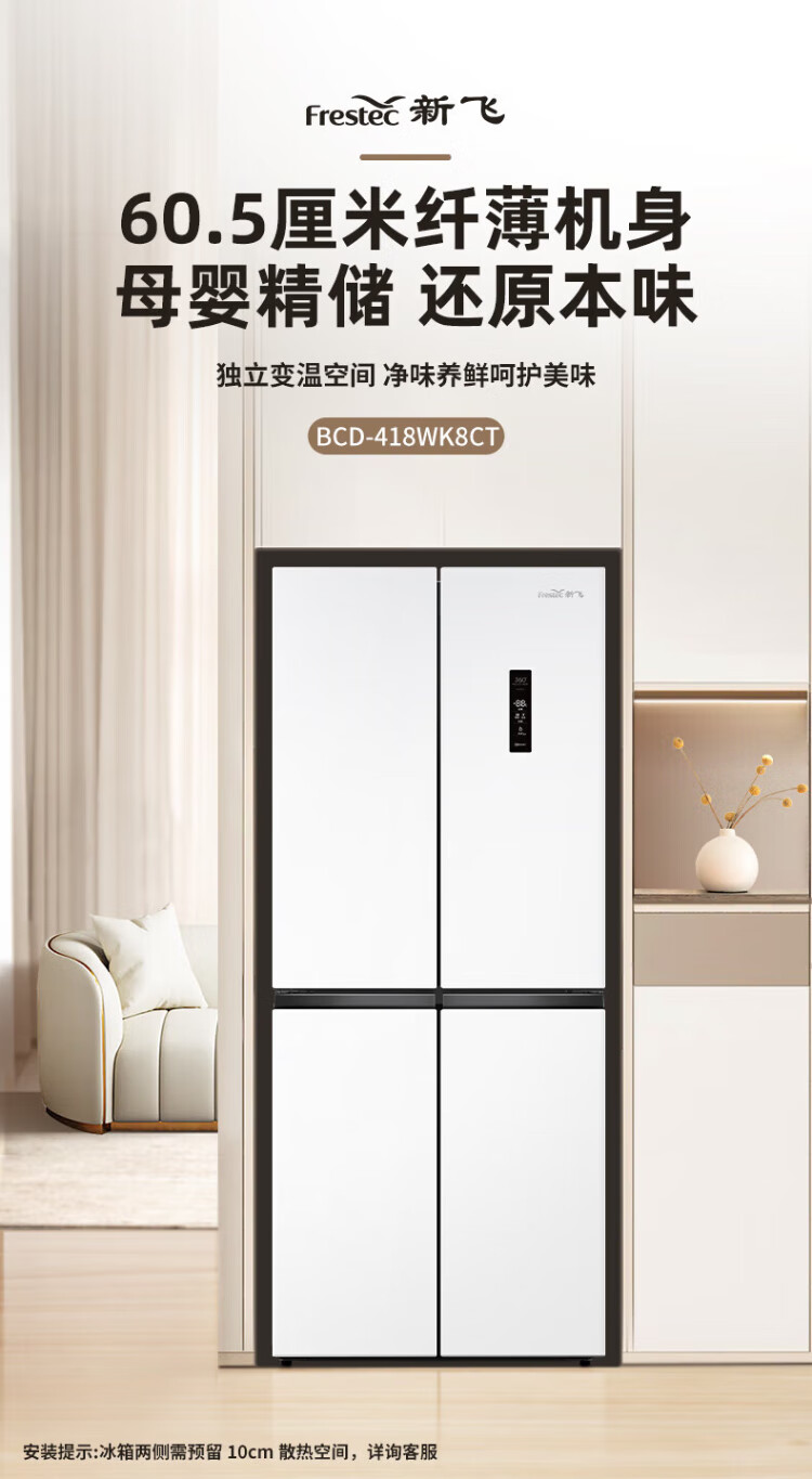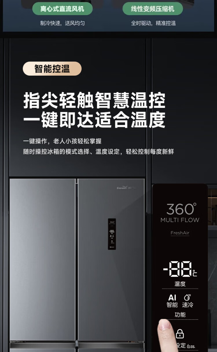 Xinfei refrigerator cross four-door 418 liter large capacity ultra-thin 60.5cm embedded inverter first-class energy efficiency energy-saving bass air-cooled frost-free LED display intelligent temperature control freshness gray | air-cooled frost-free | deodorization and odor