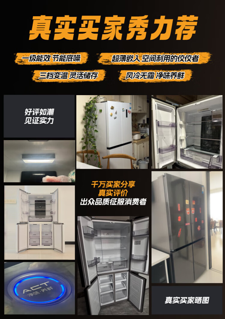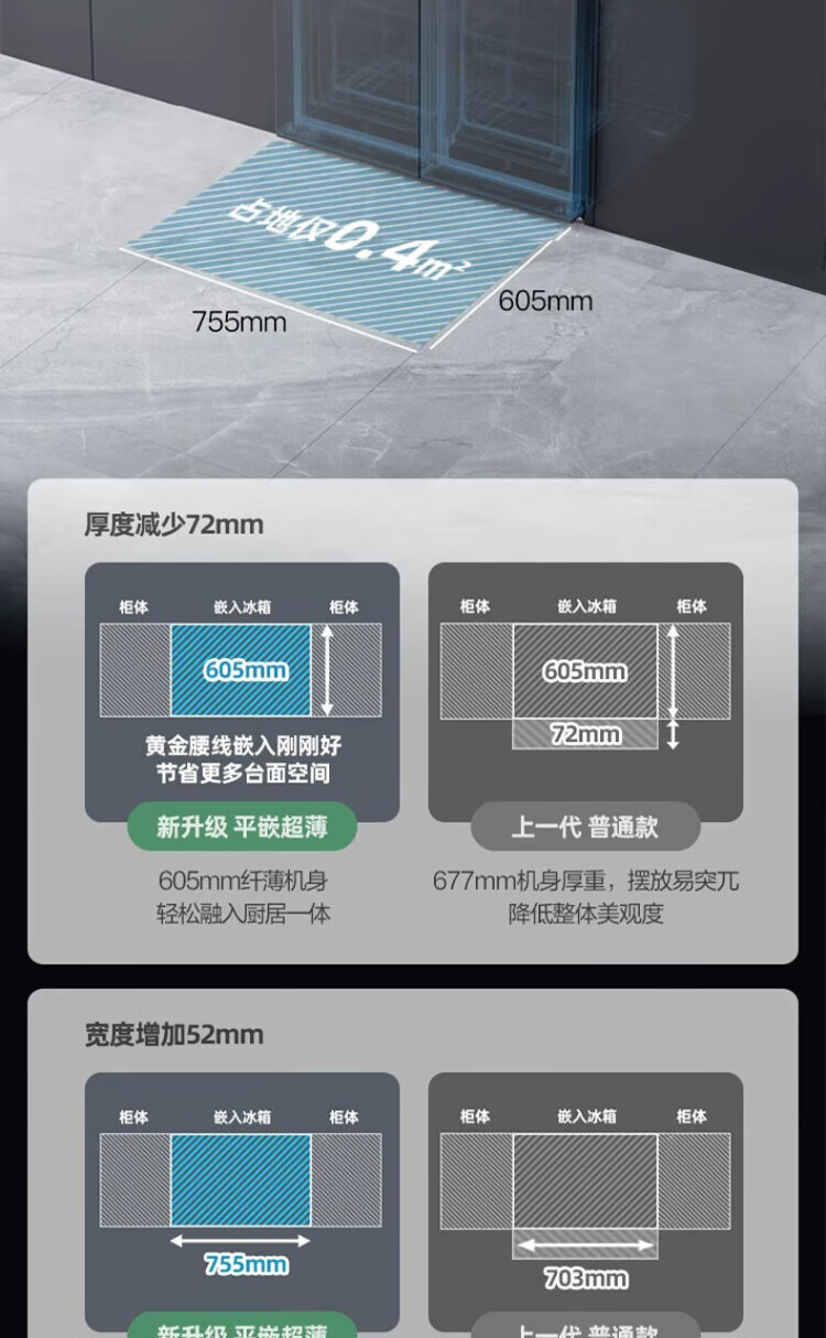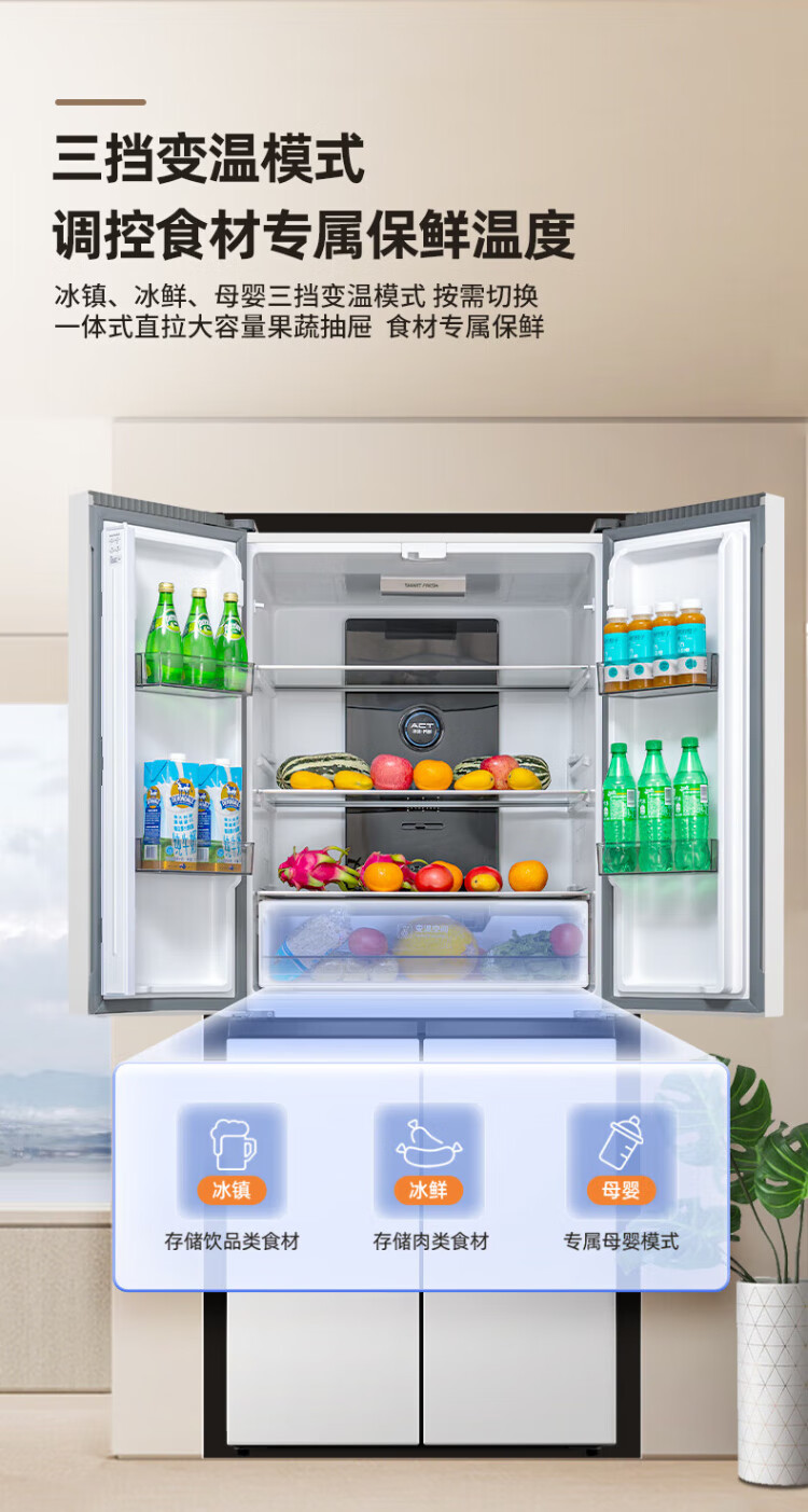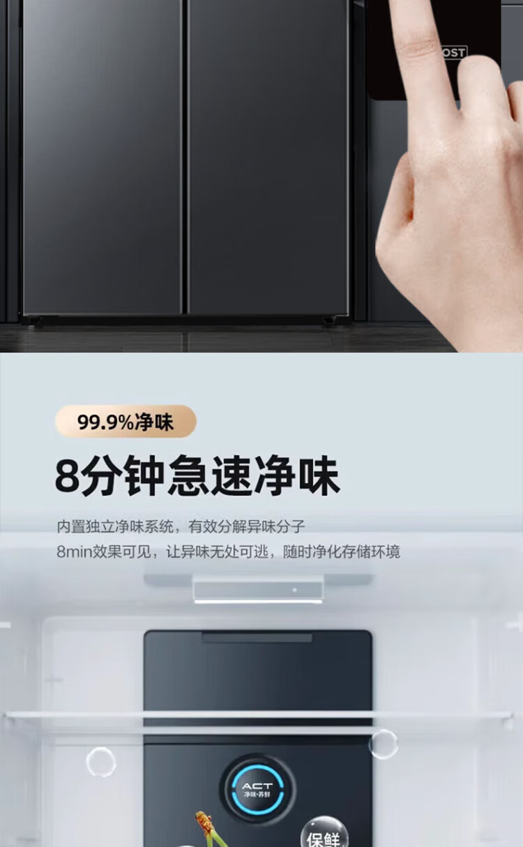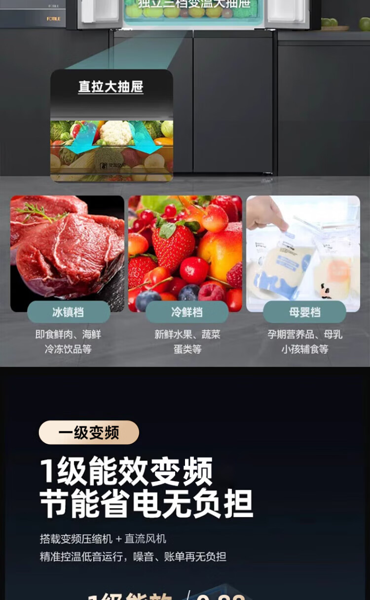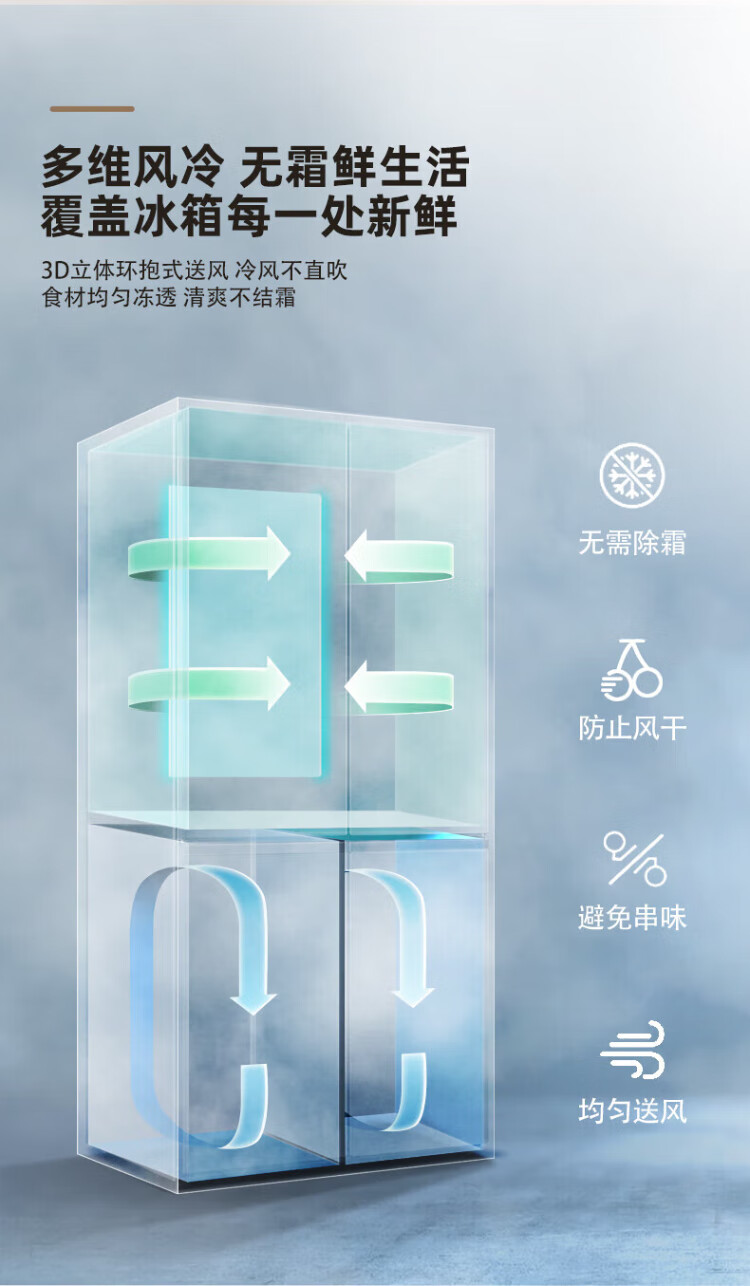 Xinfei refrigerator cross four-door 418 liter large capacity ultra-thin 60.5cm embedded inverter first-class energy efficiency energy-saving bass air-cooled frost-free LED display intelligent temperature control freshness gray | air-cooled frost-free | deodorization and odor