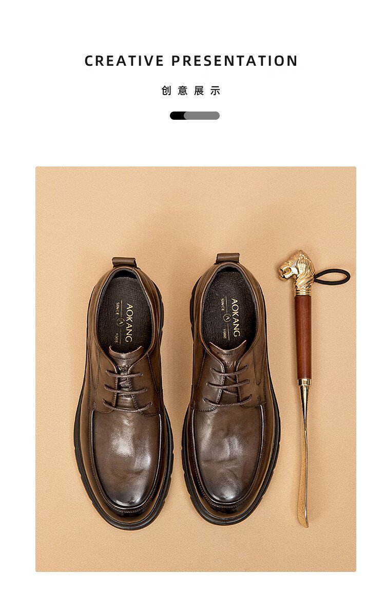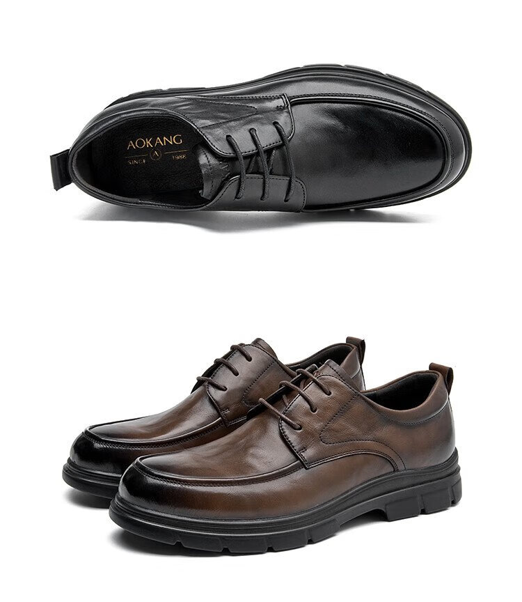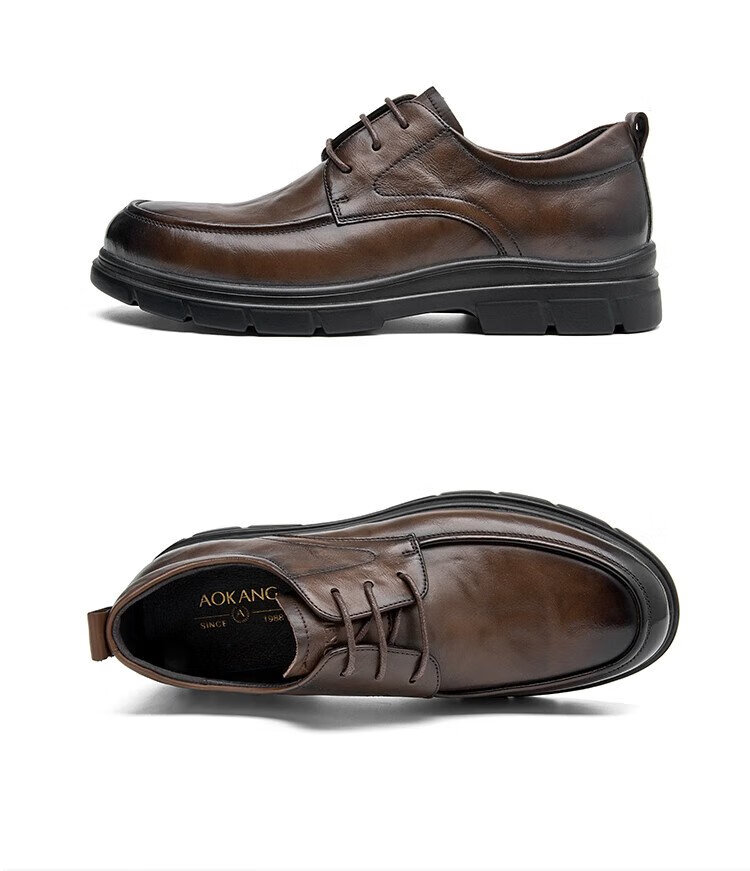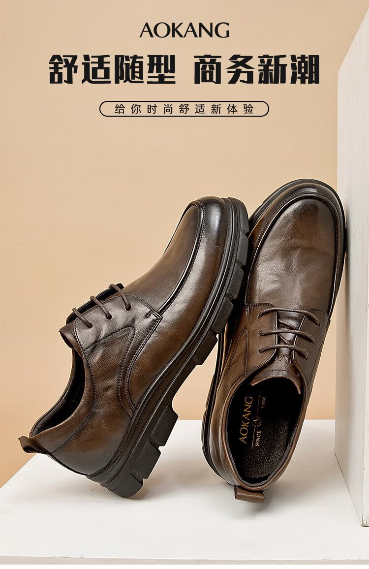 Aokang men's shoes 2025 new spring and autumn men's business casual leather shoes genuine leather thick-soled formal shoes non-slip commuter derby shoes brown 1245211038N 40