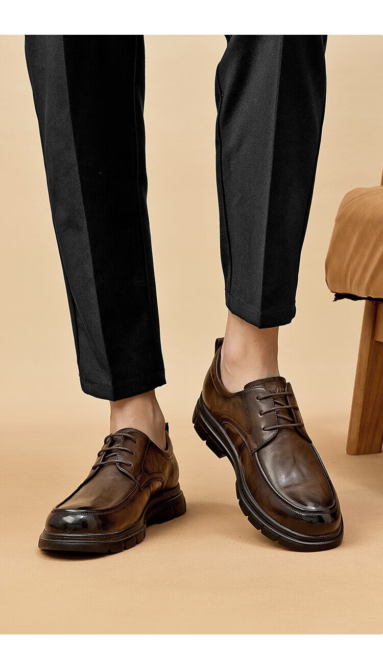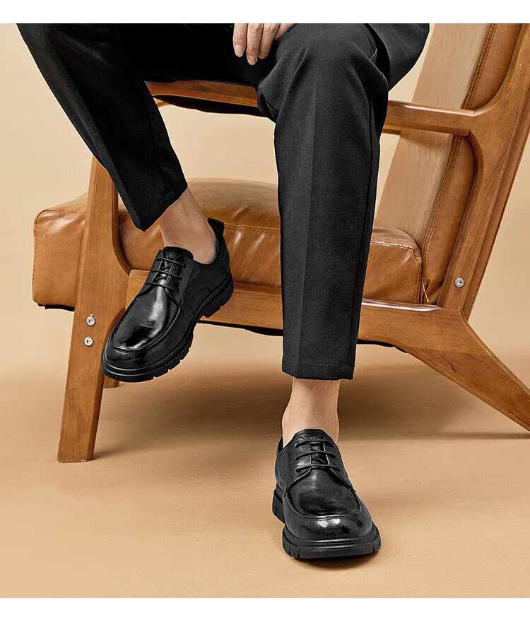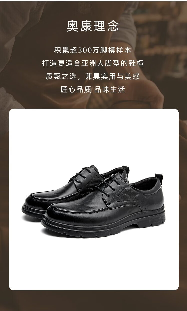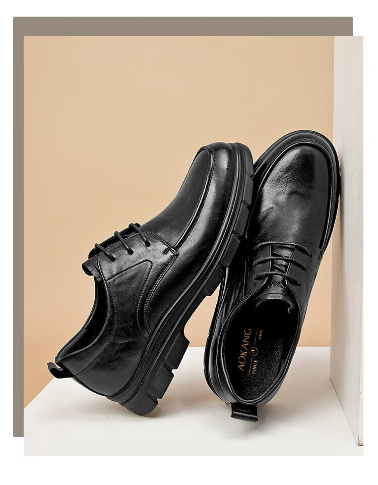Aokang men's shoes 2025 new spring and autumn men's business casual leather shoes genuine leather thick-soled formal shoes non-slip commuter derby shoes brown 1245211038N 40