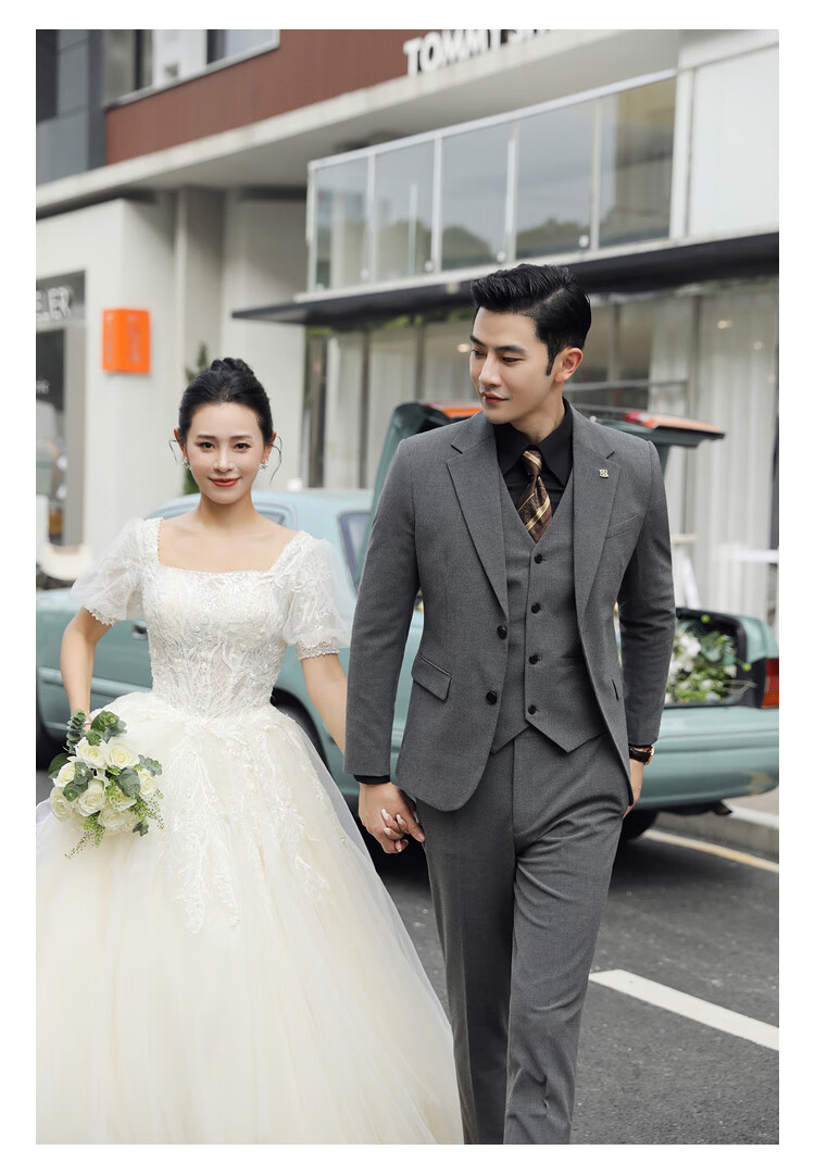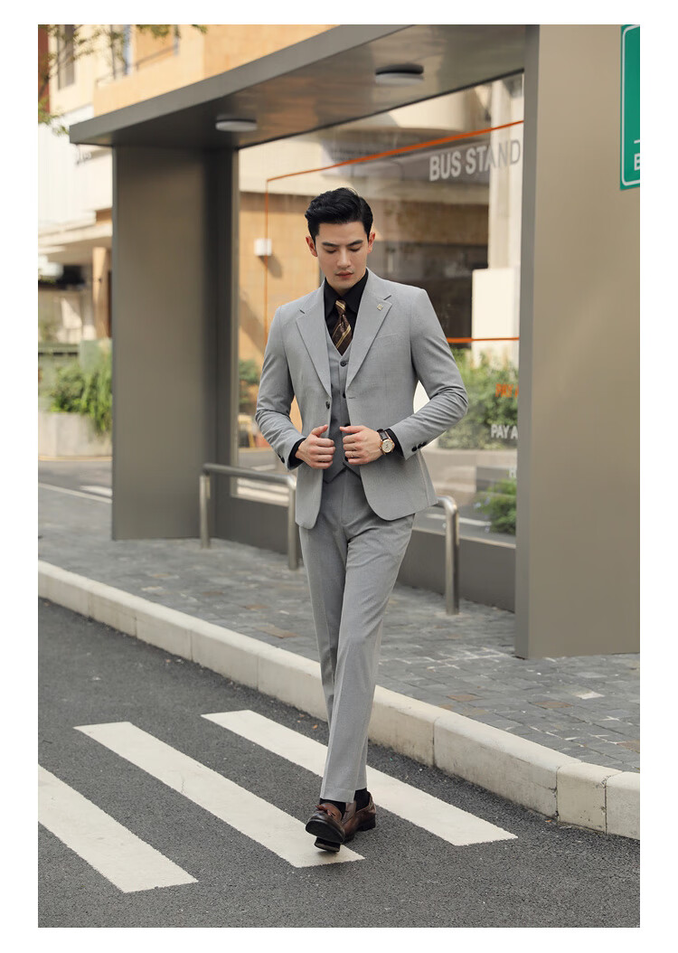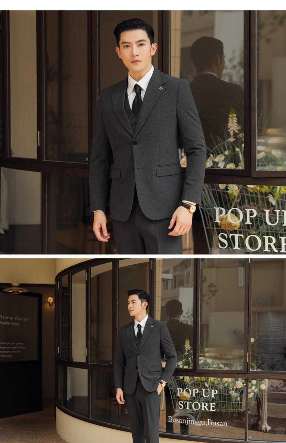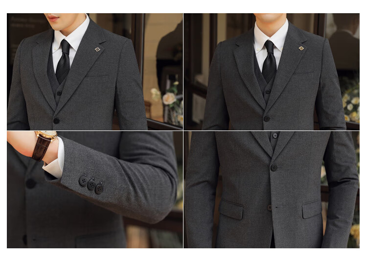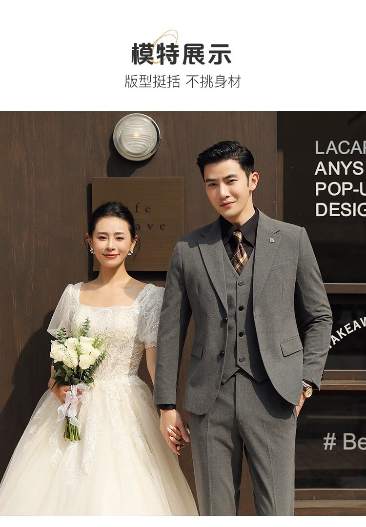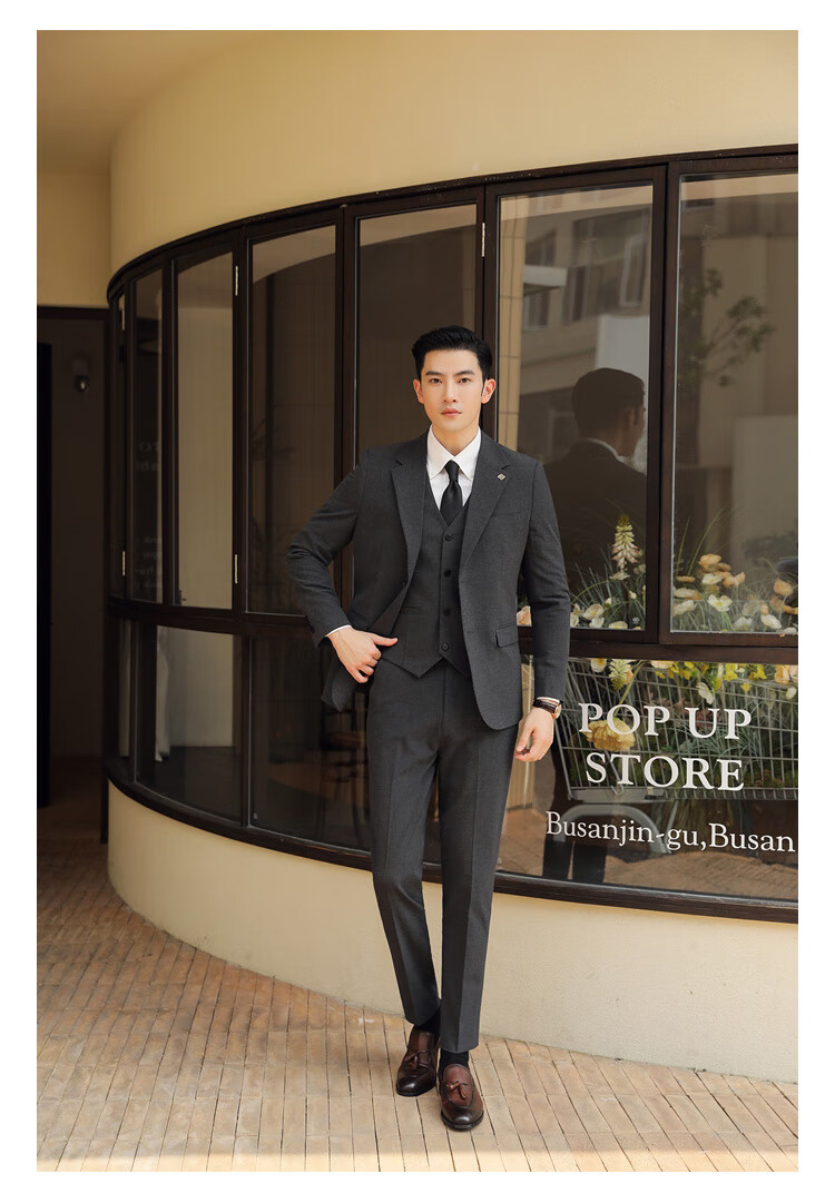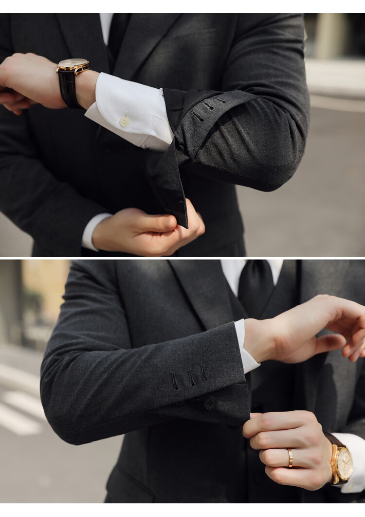 ROMON suit male groom wedding formal suit three-piece business casual dress British style stretch slim dark gray top + pants 46/S 85-95Jin Jin equals 0.5 kg to wear