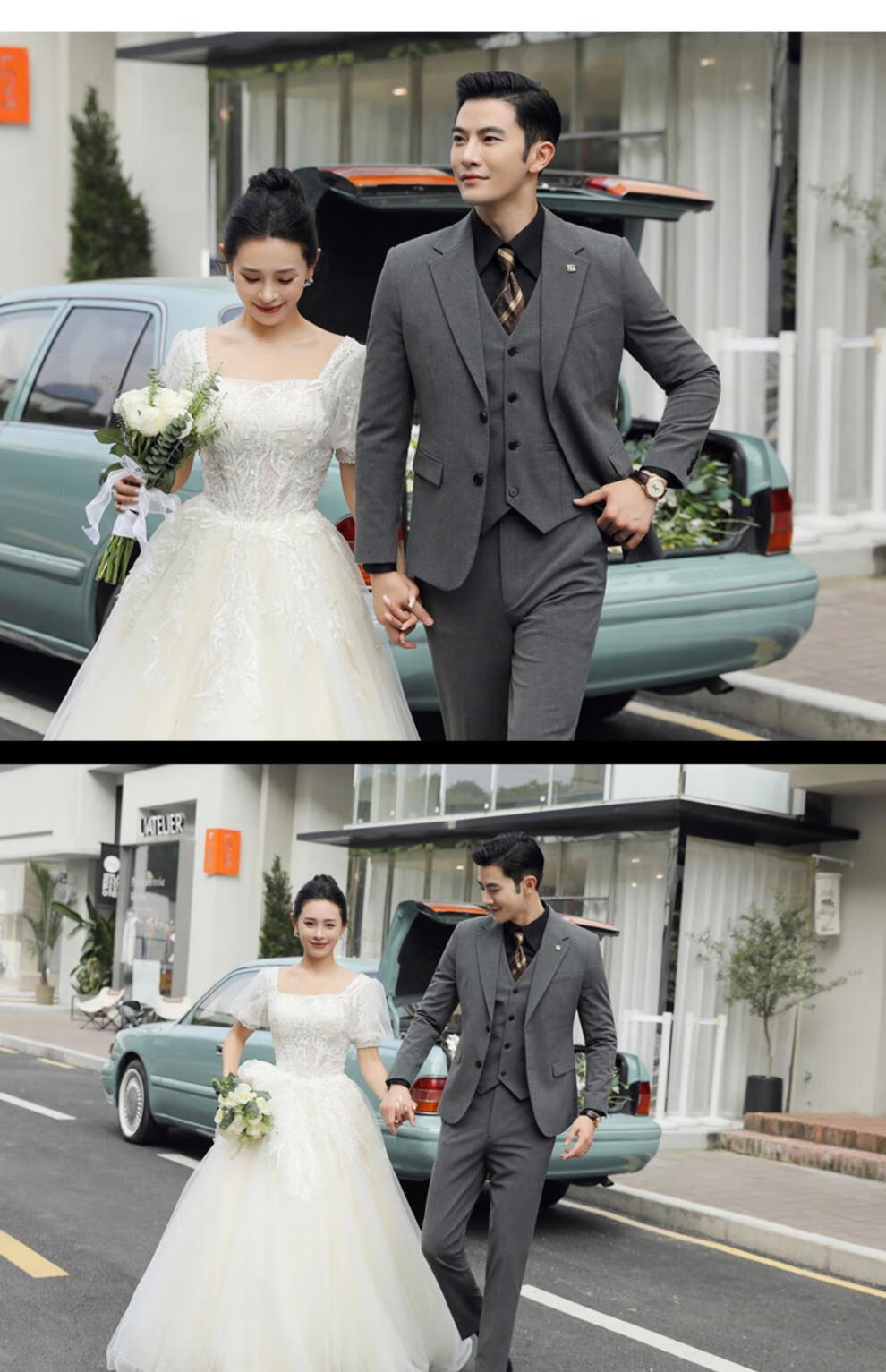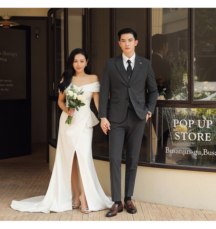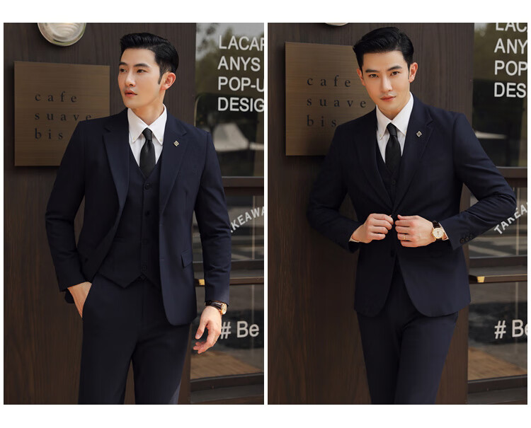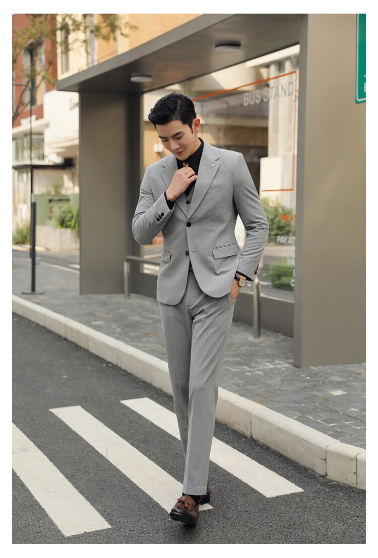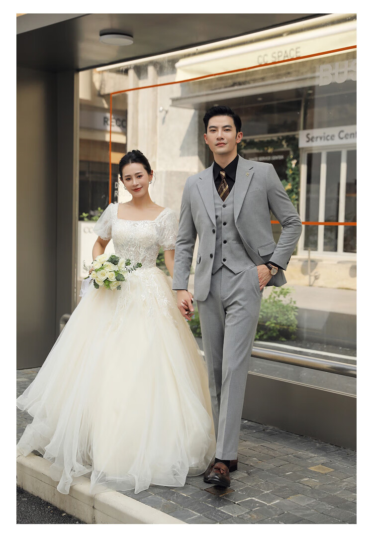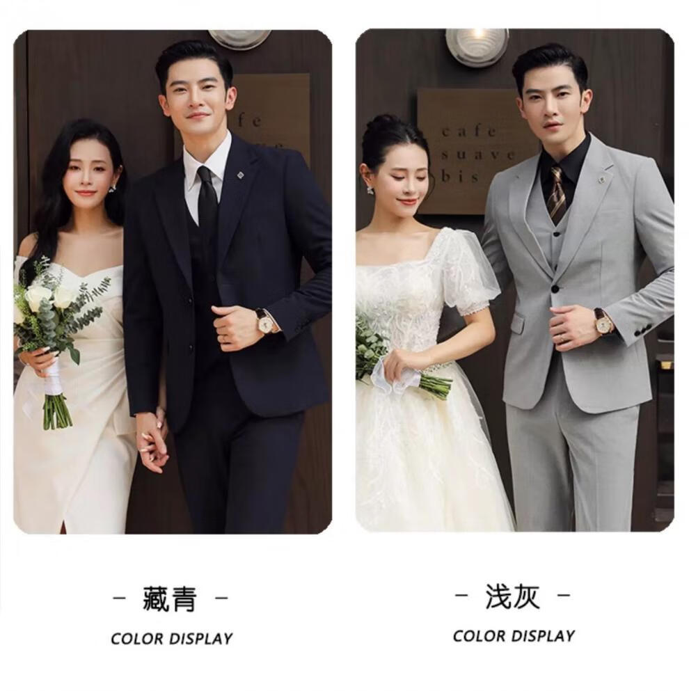 ROMON suit male groom wedding formal suit three-piece business casual dress British style stretch slim dark gray top + pants 46/S 85-95Jin Jin equals 0.5 kg to wear