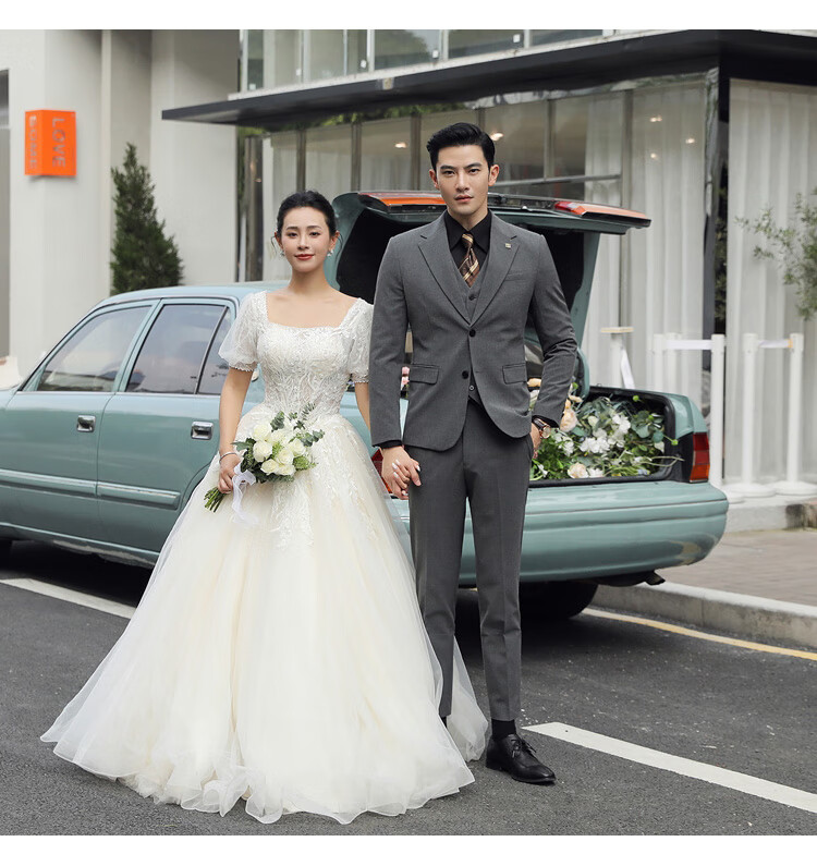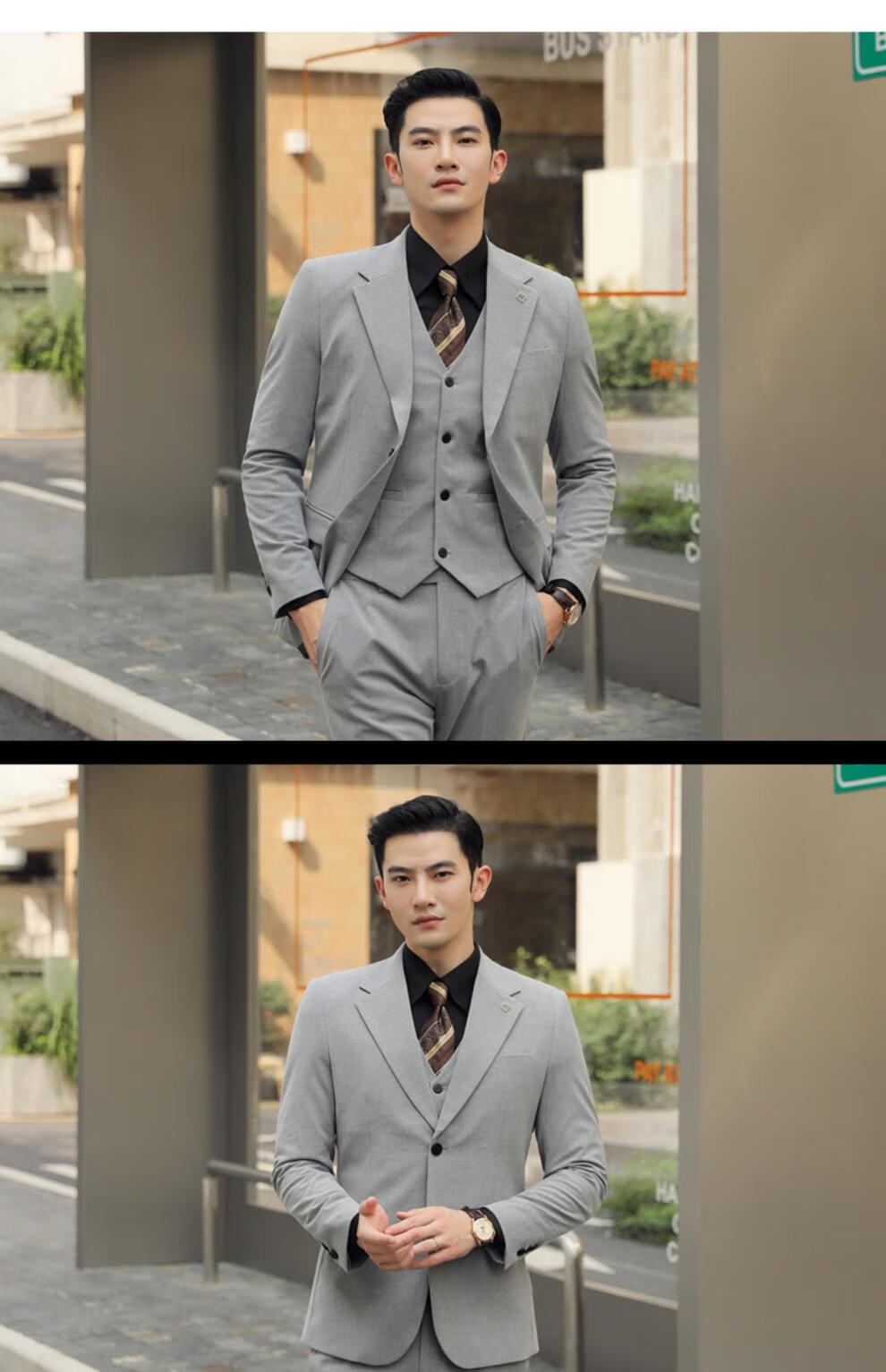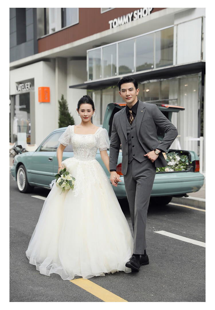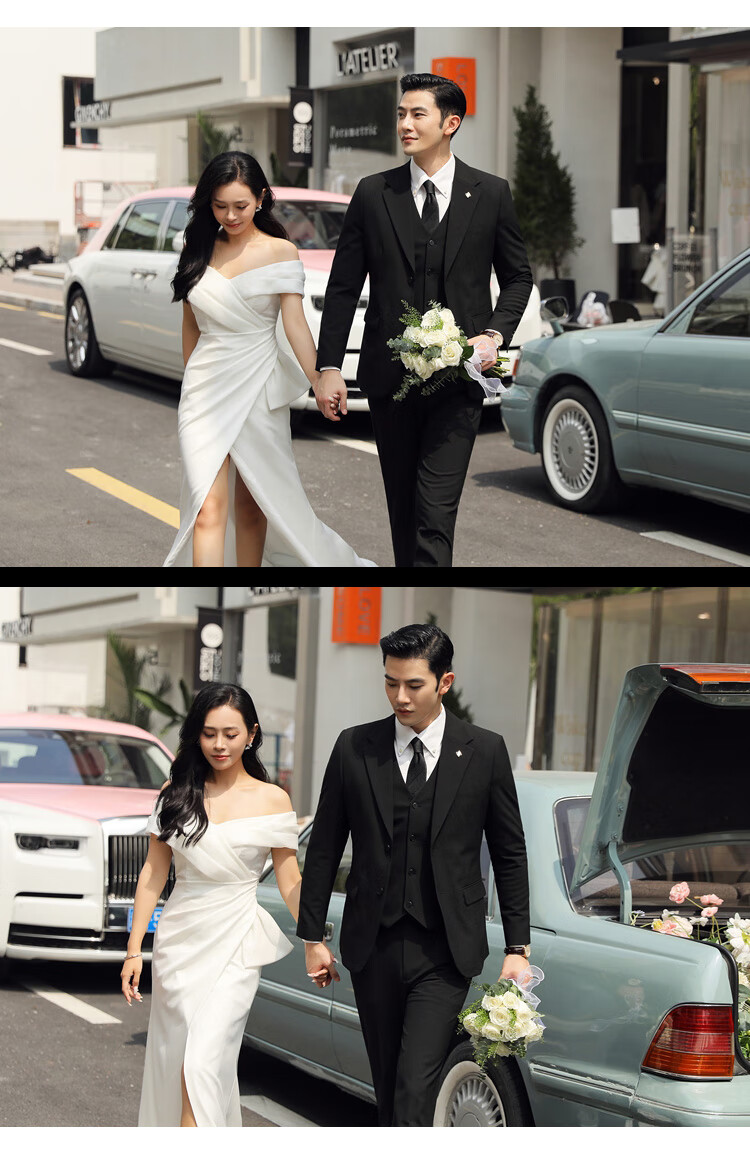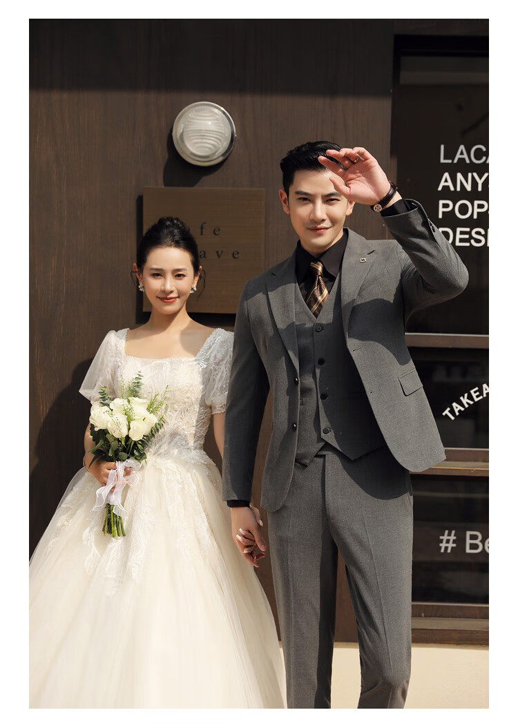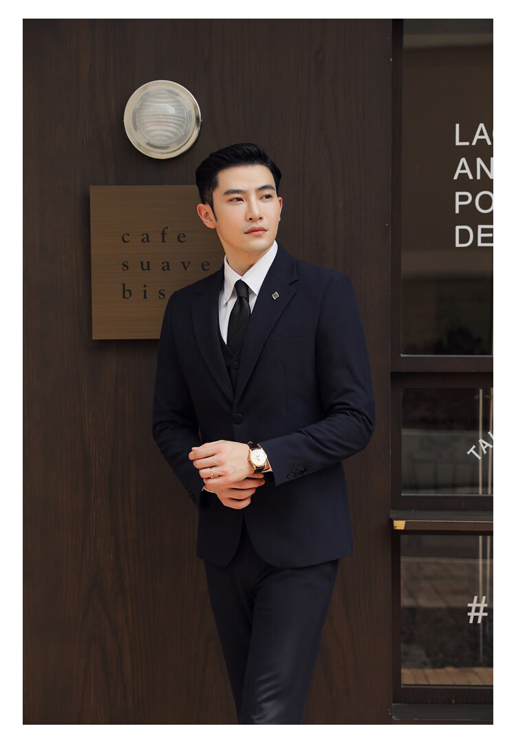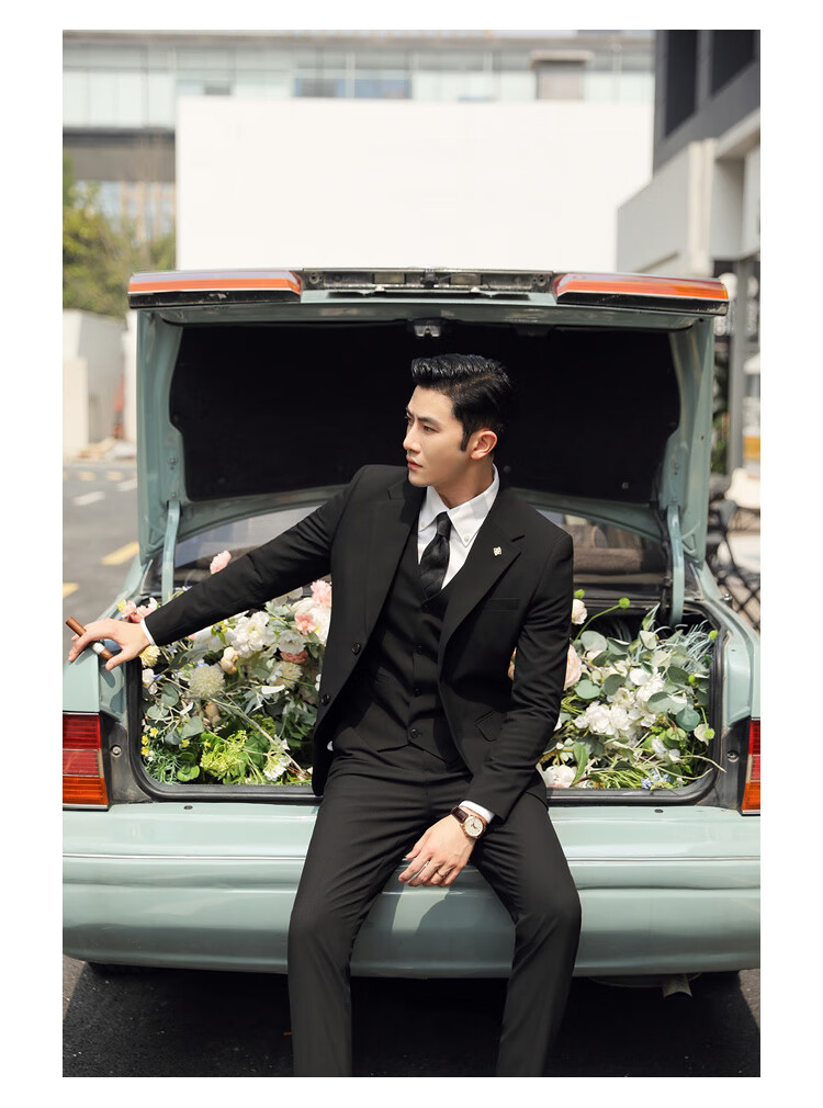 ROMON suit male groom wedding formal suit three-piece business casual dress British style stretch slim dark gray top + pants 46/S 85-95Jin Jin equals 0.5 kg to wear