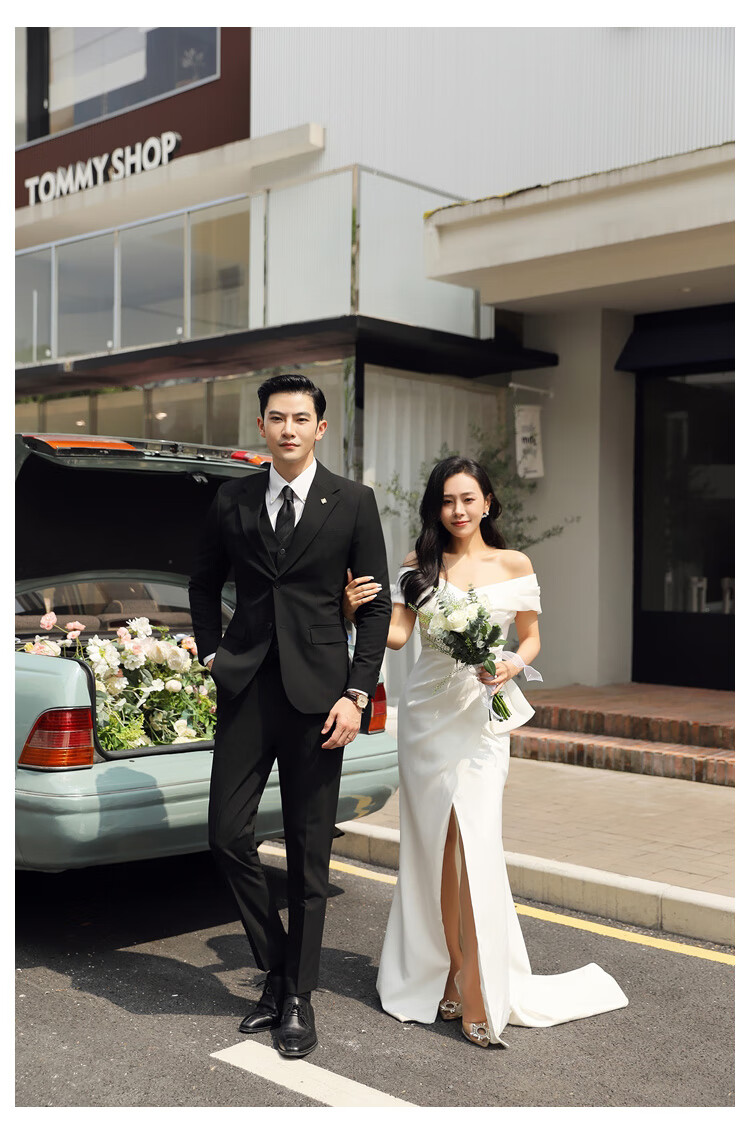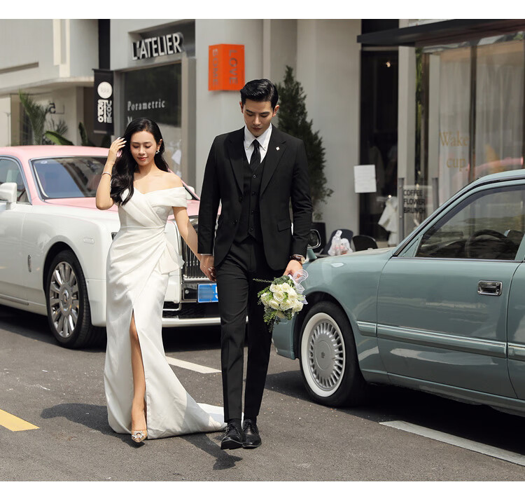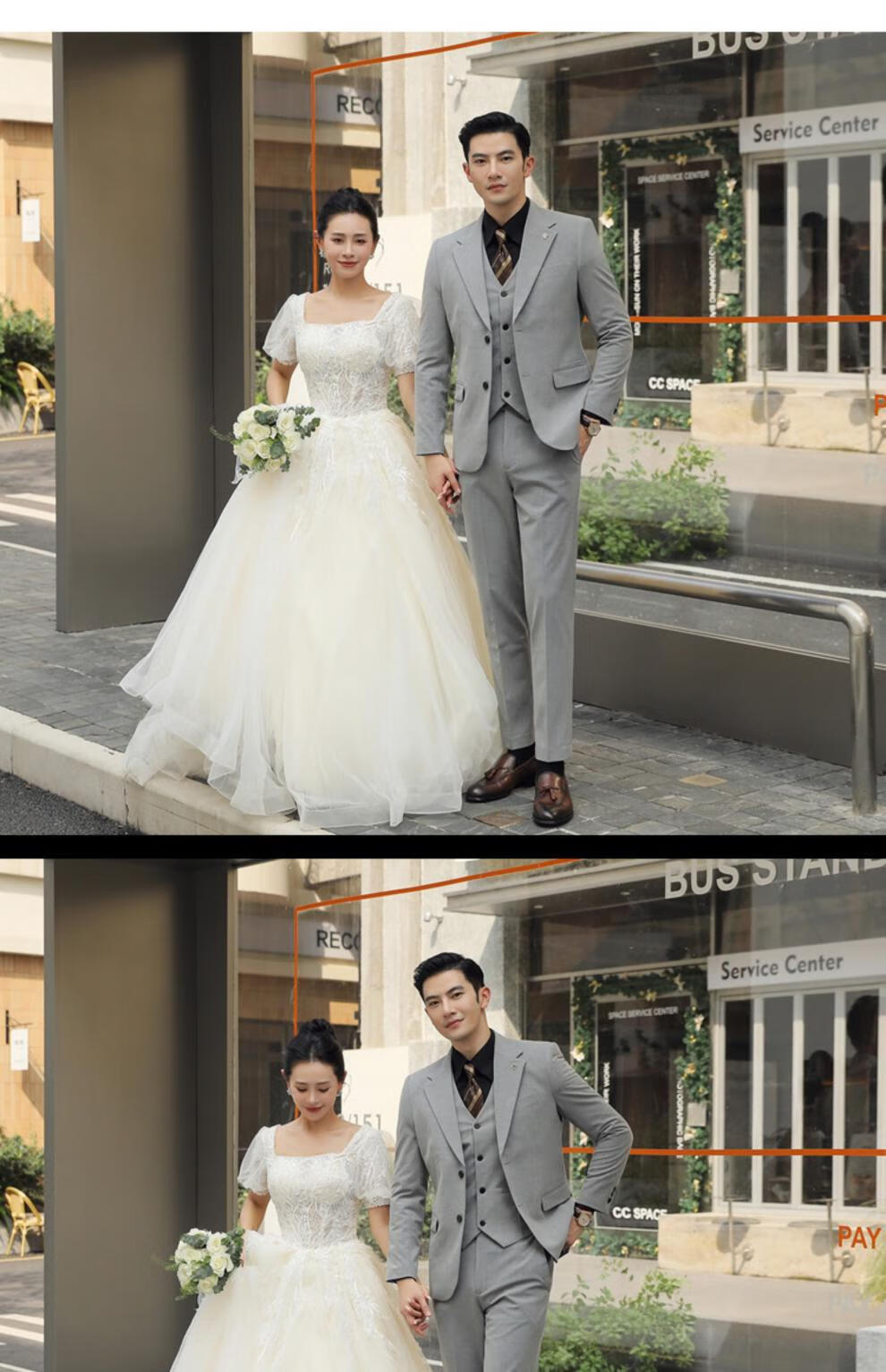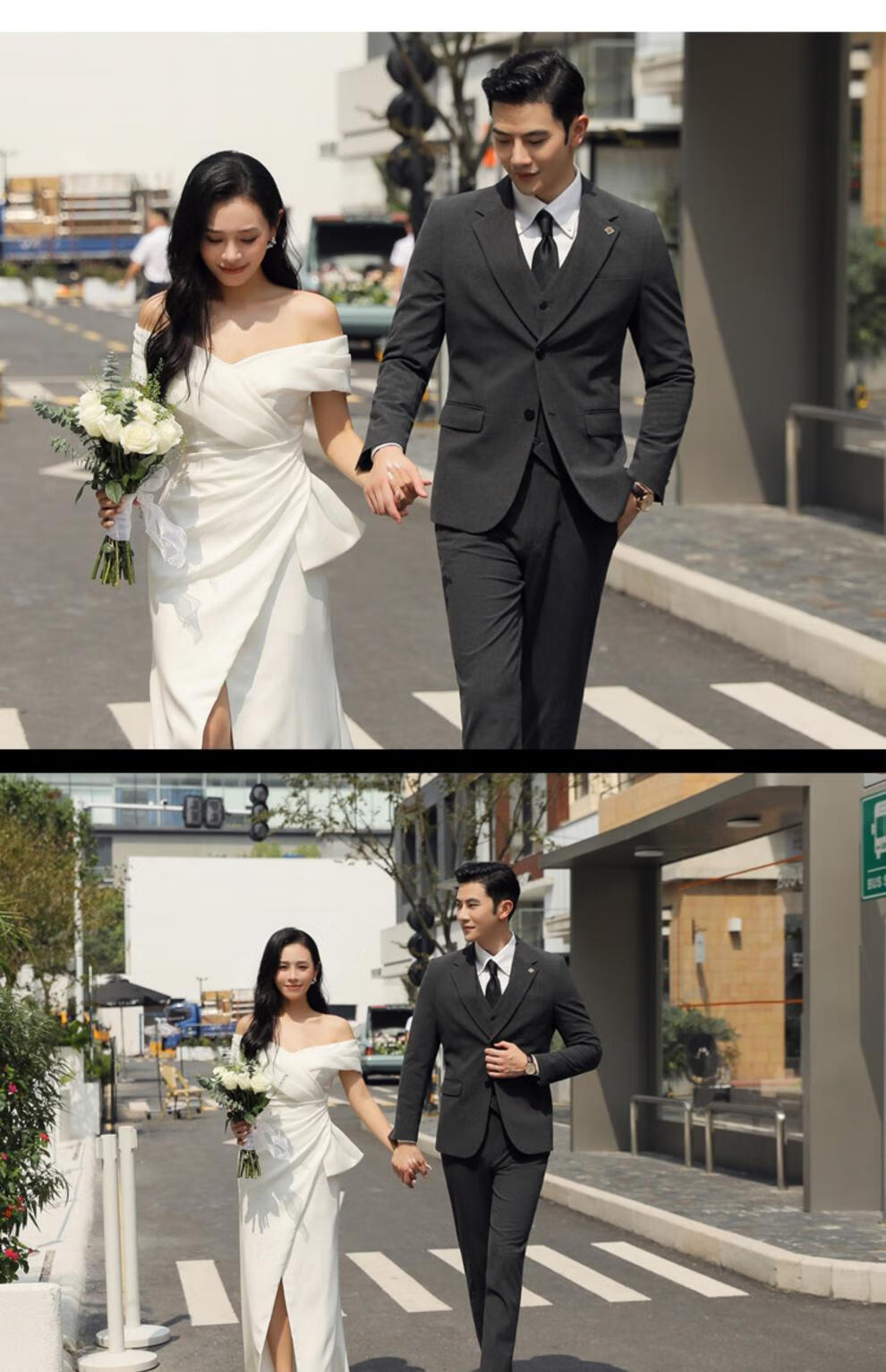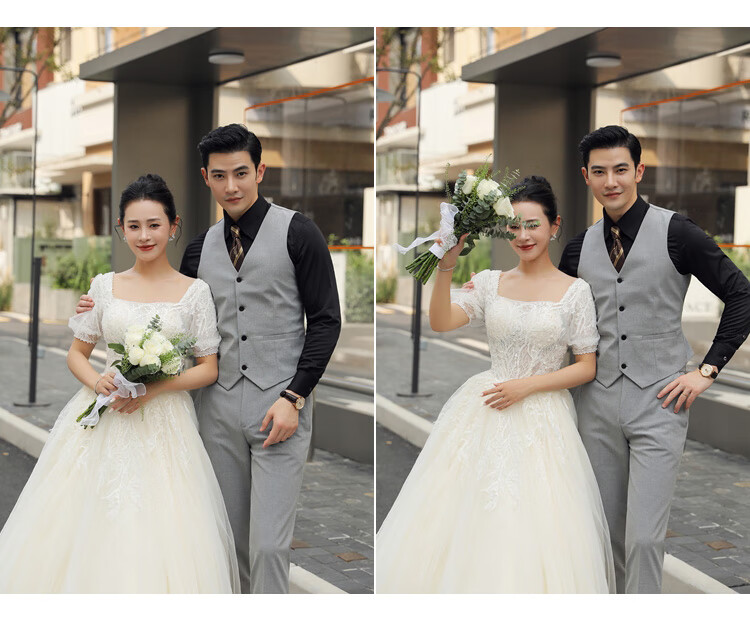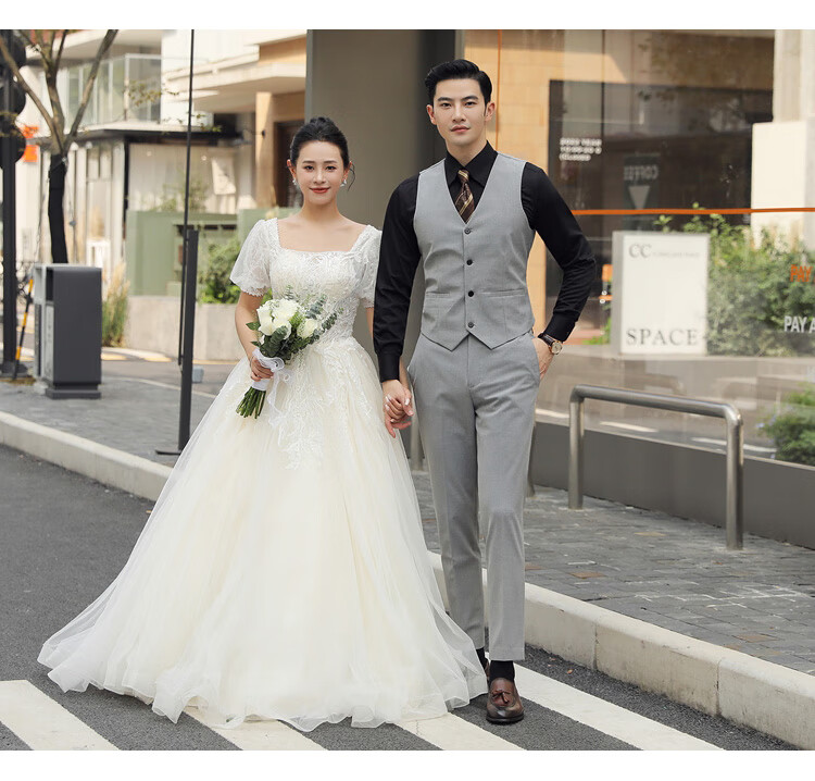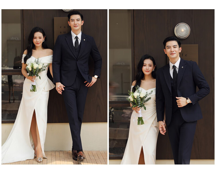 ROMON suit male groom wedding formal suit three-piece business casual dress British style stretch slim dark gray top + pants 46/S 85-95Jin Jin equals 0.5 kg to wear