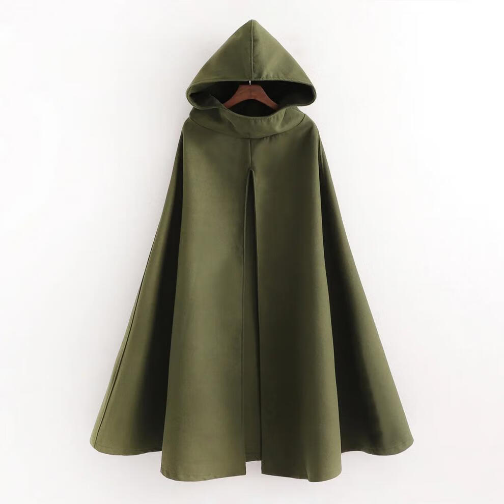 Wooden flute wizard black cloak niche loose slit dark windbreaker cloak personality mysterious smock robe with hood black L