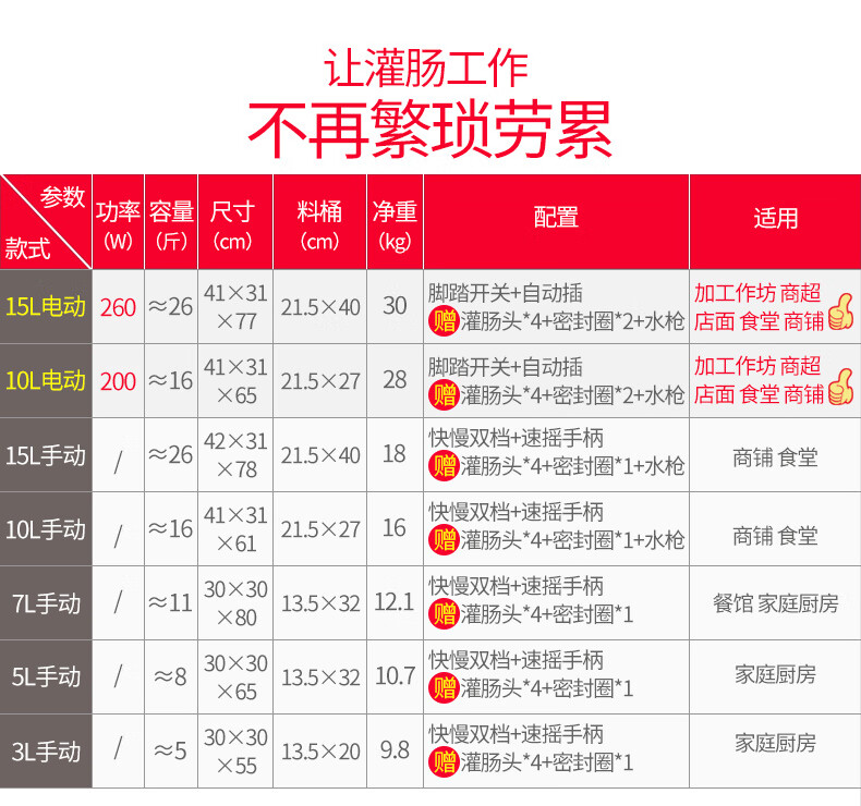 Huili De Sausage Stuffing Machine Commercial Fully Automatic Electric Sausage Stuffing Machine Can Sausage Machine Sausage Machine Household Ham Sausage Stuffing Machine 3L Vertical Manual - Fast and Slow Double Gear Home Use