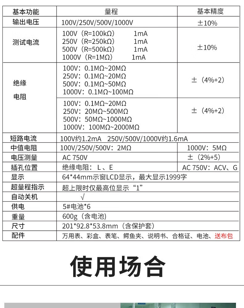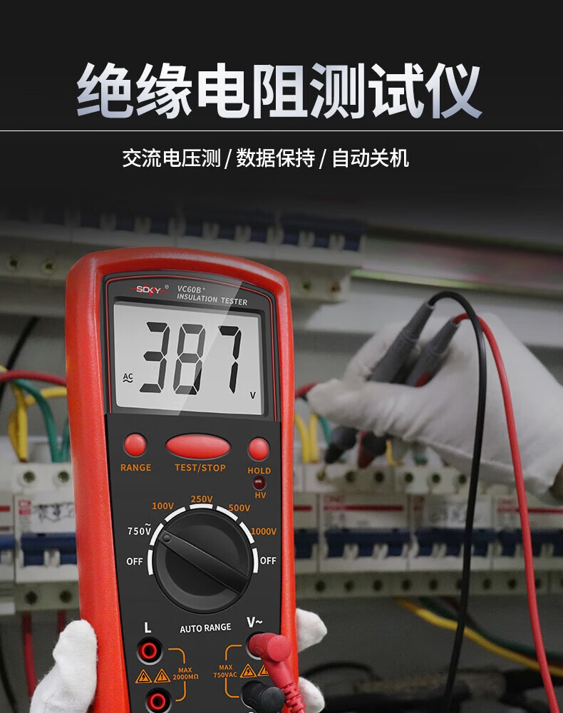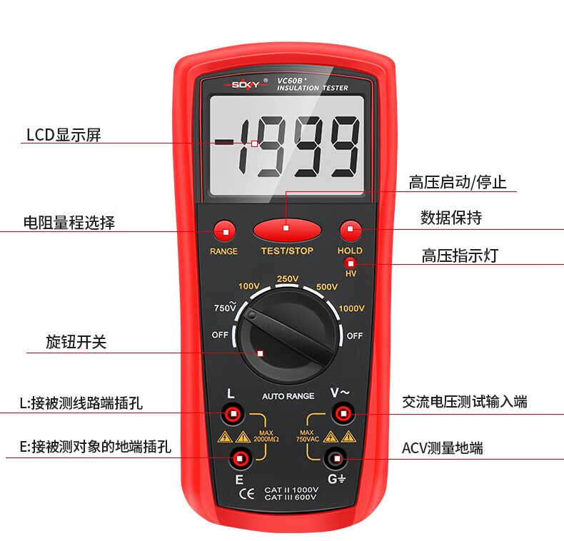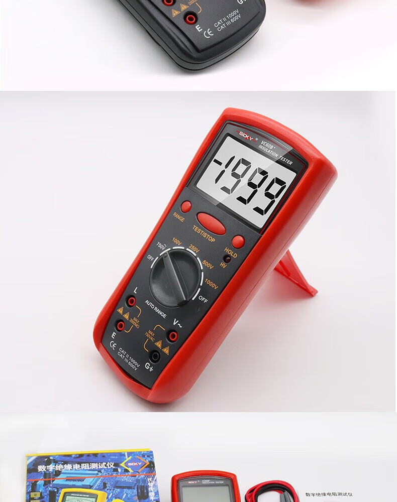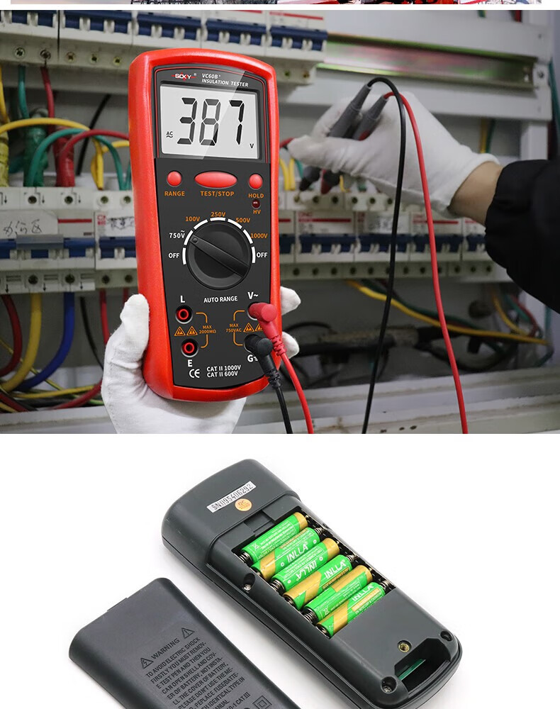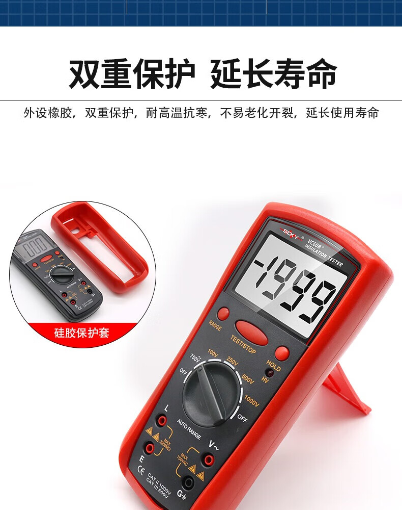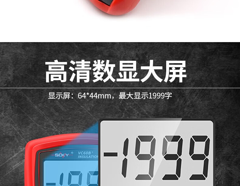 Shengde high-precision insulation resistance tester VC60B+ digital megohmmeter insulation tester electronic rocker VC60B+ standard + 6-piece No. 5 charging set, free pointer cloth bag