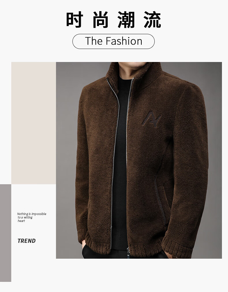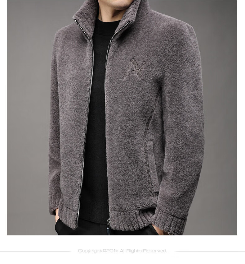 Hengyuanxiang 100% pure wool coat men's 2025 autumn and winter new stand-up collar jacket woolen coat men's gray XL