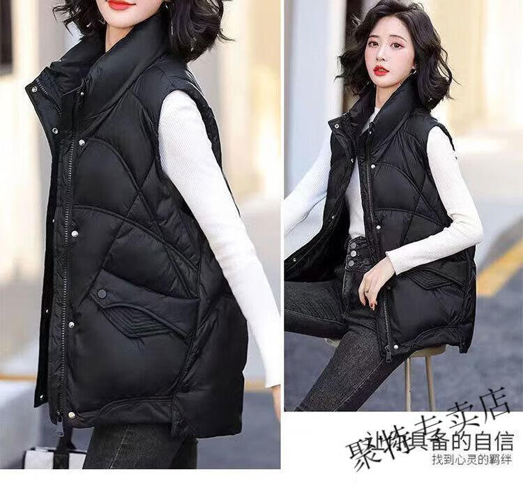 Pierre Cardin Cotton Vest Women's 2025 Autumn and Winter New Korean Style Loose and Versatile Thickened Warm Fashion Short Style Jacket Women's Black XL