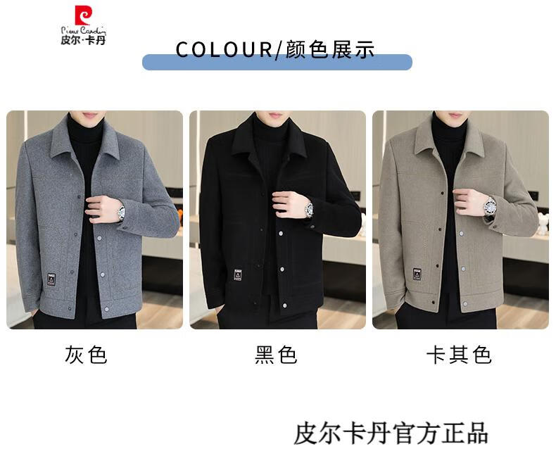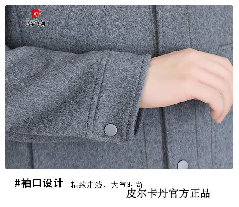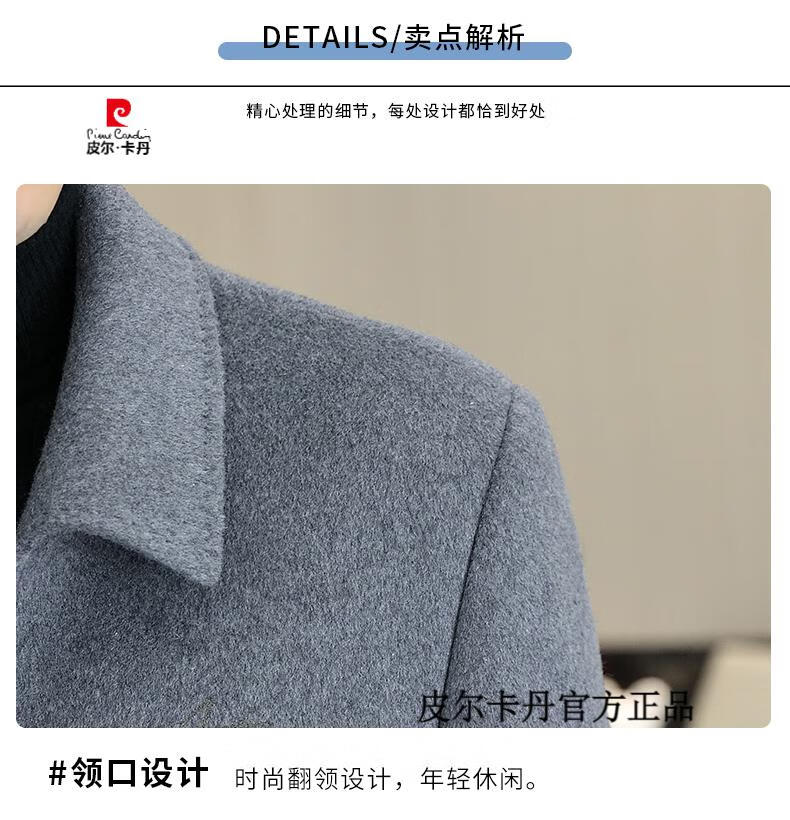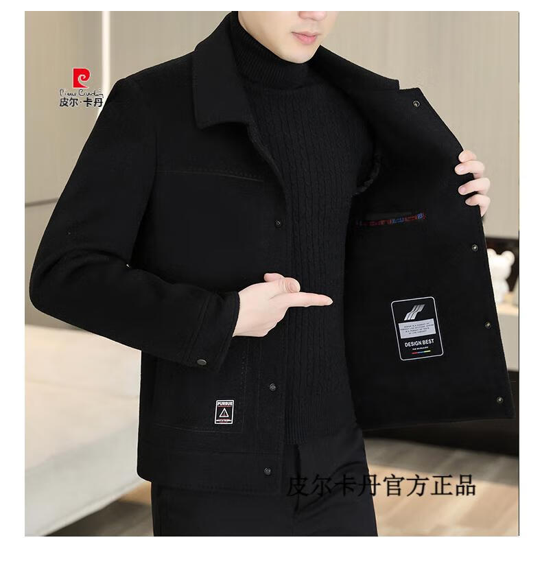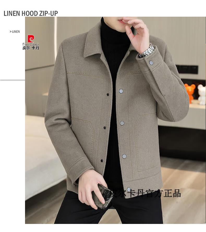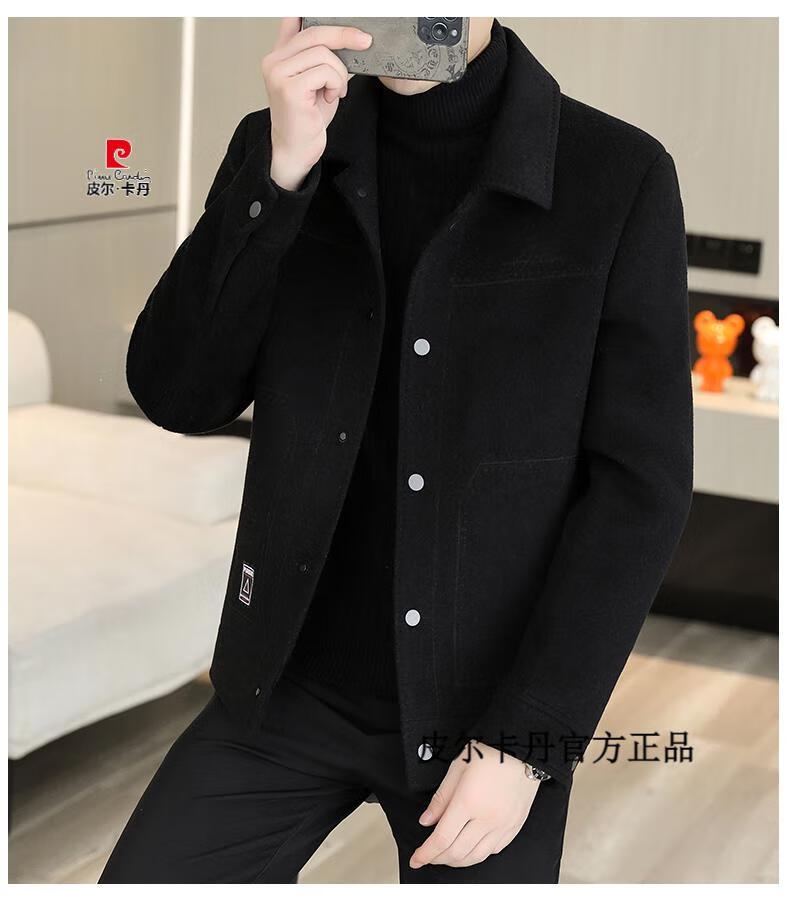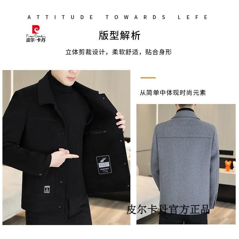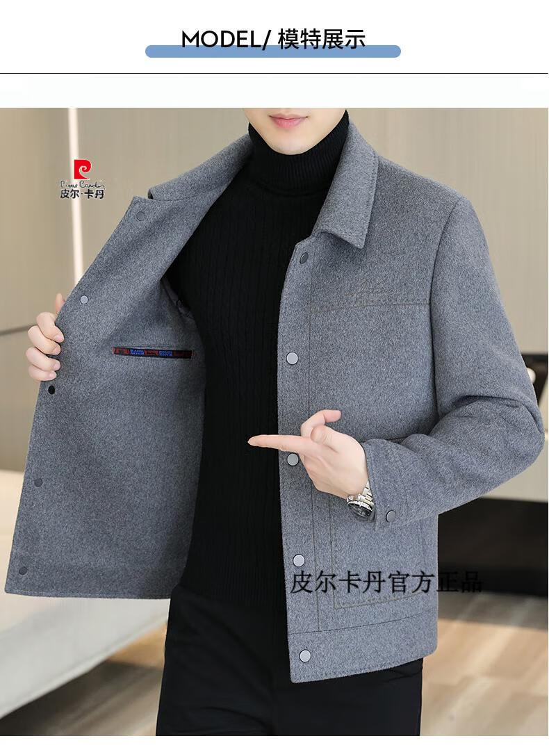 Pierre Cardin woolen coat men's double-sided woolen short coat 2024 winter new thickened warm lapel men's jacket 2308 Gray L (105-120Jin Jin equals 0.5kg)