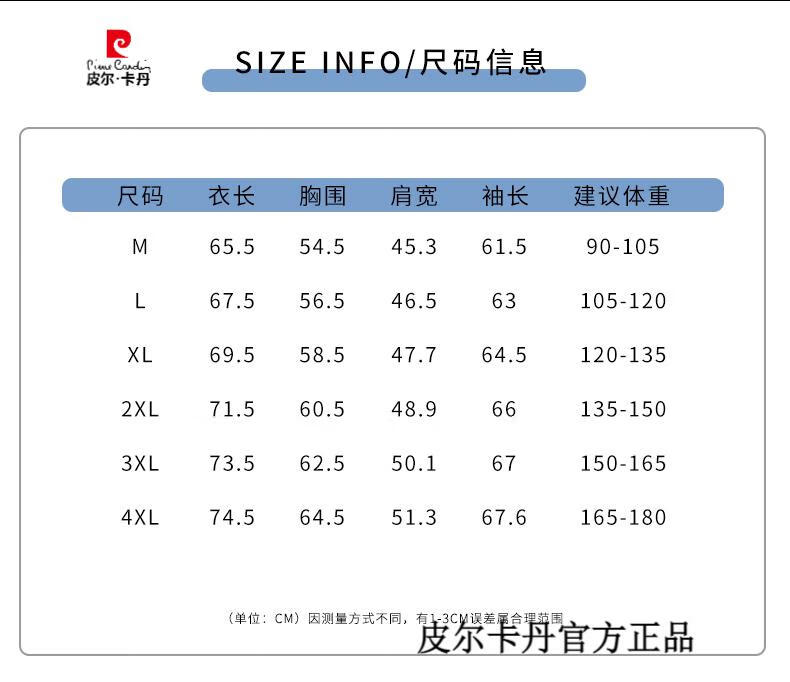 China (cm) 165 / 88-90 170 / 96-98 175 / 108-110 180 / 118-122 185 / 126-130