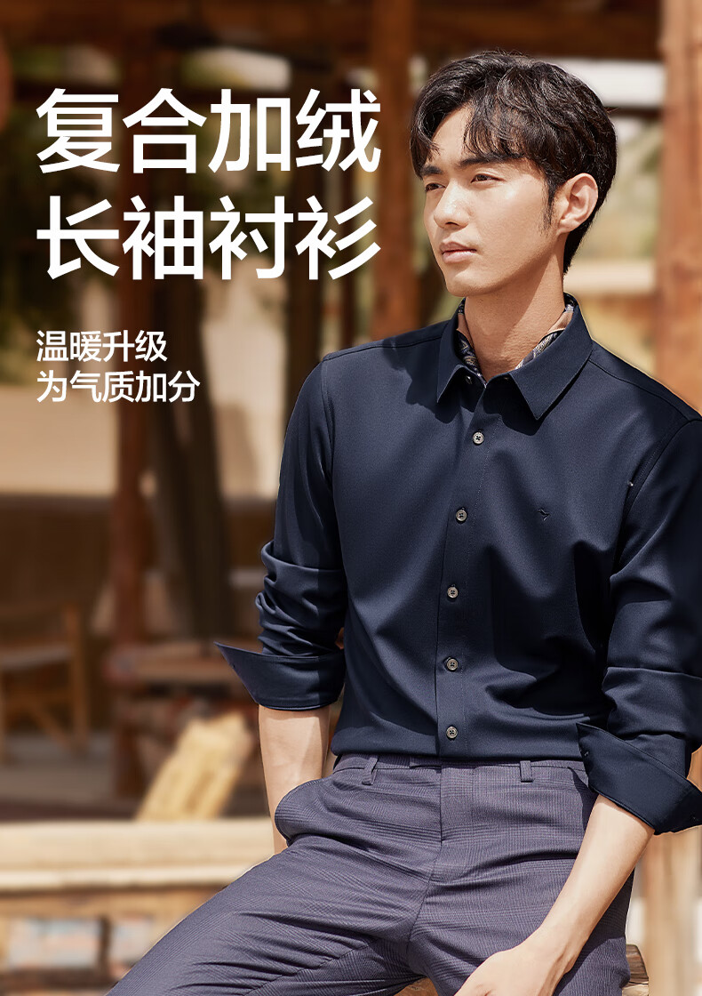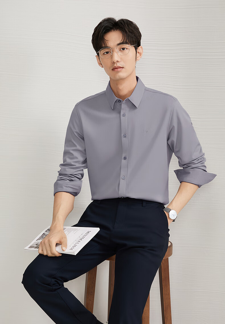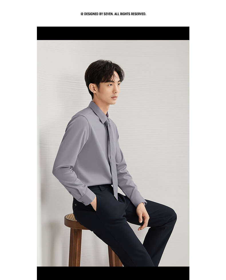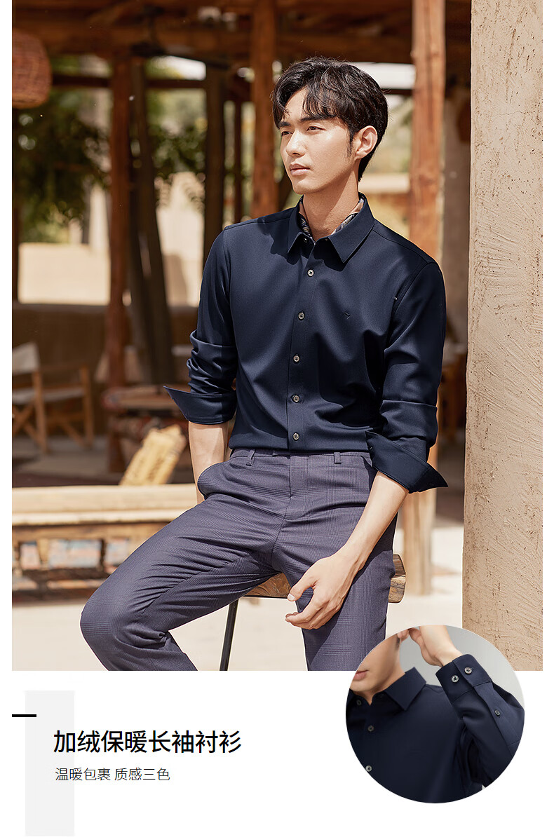 Qipai velvet long-sleeved shirt winter business casual comfortable warm thick lapel shirt light gray 40 (175) 92A