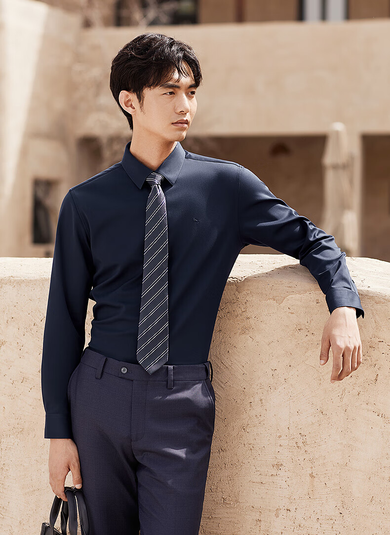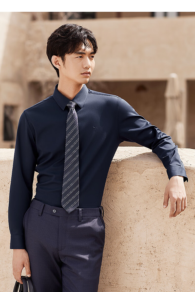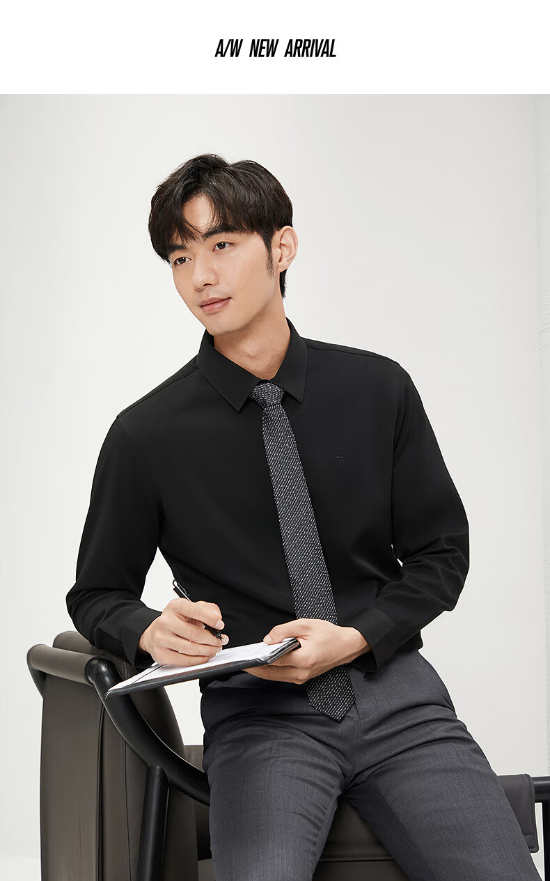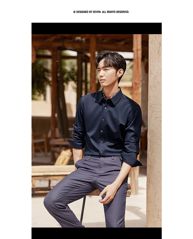 Qipai velvet long-sleeved shirt winter business casual comfortable warm thick lapel shirt light gray 40 (175) 92A